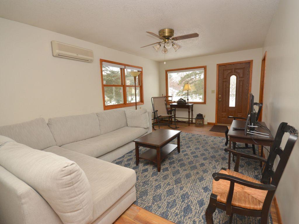 Cute and move-in ready! This hard to come by corner lot offering is located just 1 block from Fish Hook River, Heartland Park and the Heartland Trail. Classic rambler construction featuring 3 bedrooms, 2 baths (full & 1/2), large kitchen, floor to ceiling cabinetry, stainless appliances, natural gas heat and mini split A/C. The main floor has a great display of windows that take full advantage of the sunshine and natural light. The basement is about 1/3rd finished with a 3rd full egress bedroom and a bonus room. The balance provides excellent potential to increase your living space and equity position if ever finished. Also includes a 32x36 triple garage for all of your vehicle and storage needs. 2 of the stalls are heated. The yard is ideally framed in by the home and garage giving it a private feel ideal for outdoor enjoyment.
