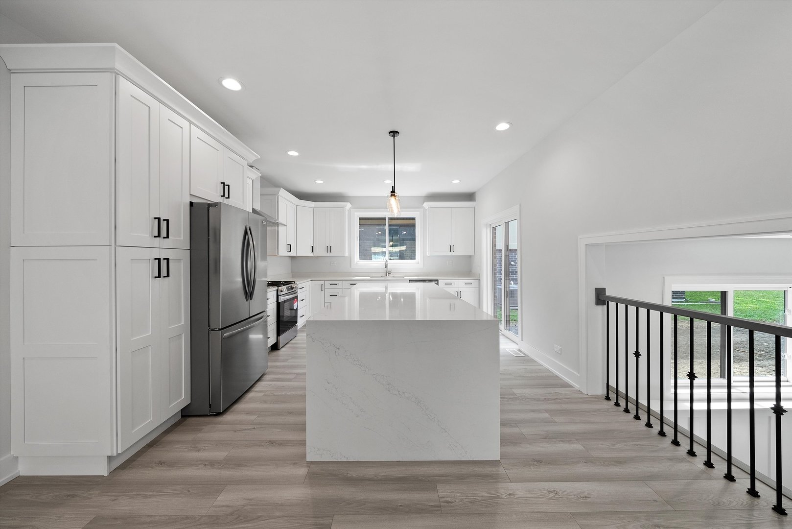 *New Construction* Introducing a stunning brand new modern single-family home with high ceilings that is filled with elegance and charm. The high ceiling in the entrance will amaze you. This beautiful residence boasts four spacious bedrooms and three modern bathrooms, providing ample space for comfortable living. As you enter, you'll be greeted by the high ceilings and the timeless appeal of wainscoting panels on the walls, adding a touch of sophistication to the interior. The heart of this home is the expansive kitchen, featuring a generous 10-foot granite counter top kitchen island, perfect for meal preparation and entertaining guests. The stylish designed kitchen also showcases a large counter top, providing ample space for culinary delights. The elegant engineered wood flooring throughout adds warmth and character to the living spaces. Natural light floods the home through the large windows, creating a bright and inviting ambiance. Whether it's enjoying a cozy evening inside or hosting gatherings with loved ones, this home offers the perfect setting for making cherished memories. This single family home offers the convenience of nearby amenities, schools, and recreational facilities. With it's impeccable design and attention to detail, this home is a true gem that is ready to welcome its new owners. Don't miss the opportunity to make this beautiful single family home your own.
