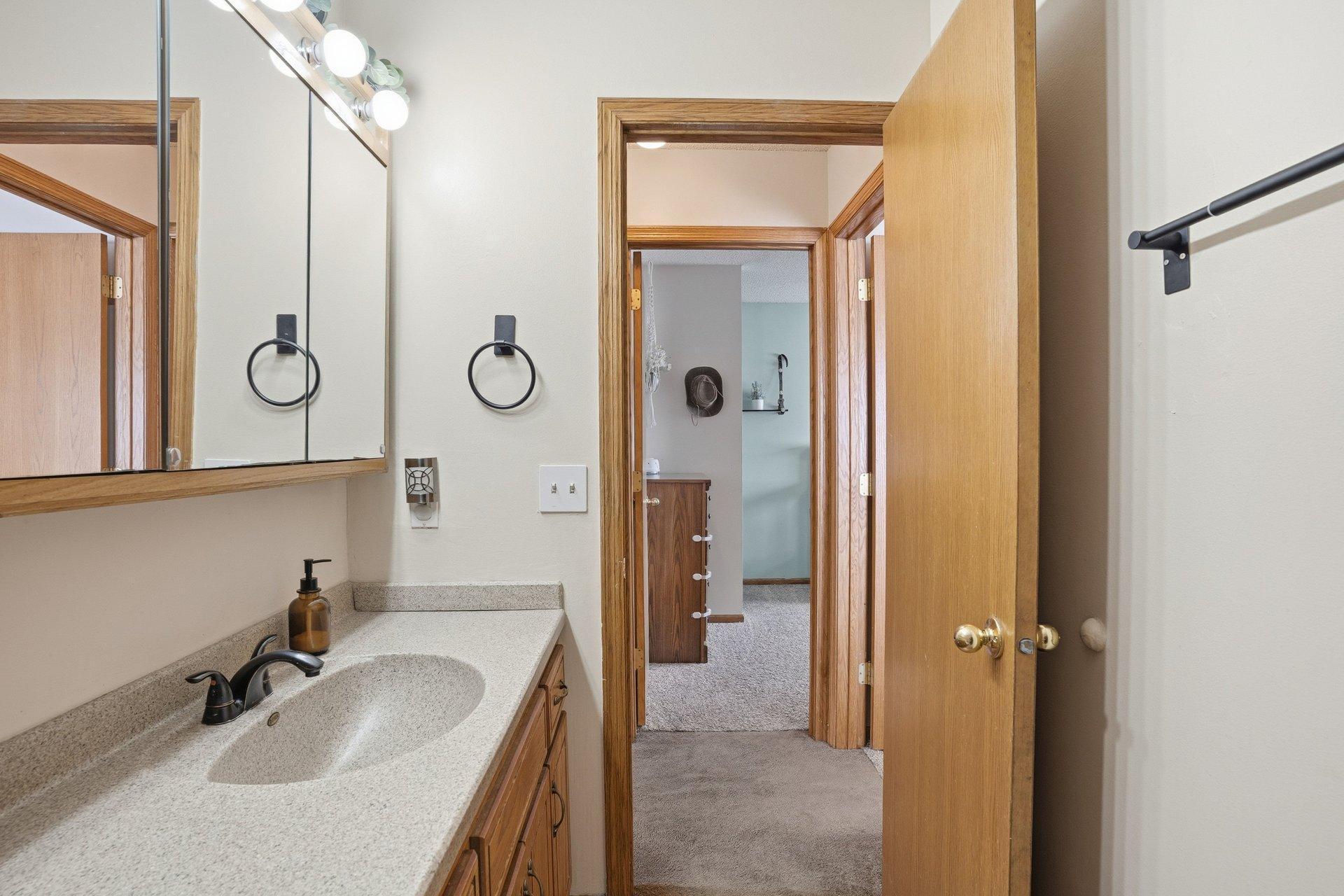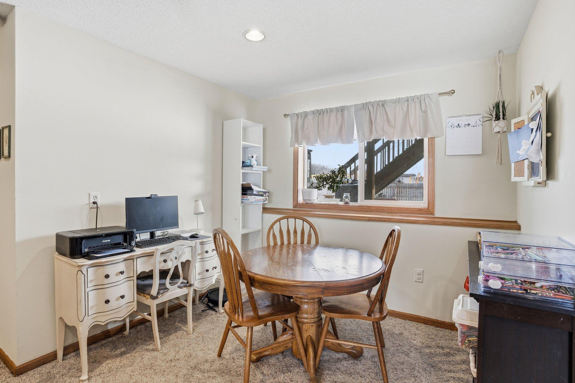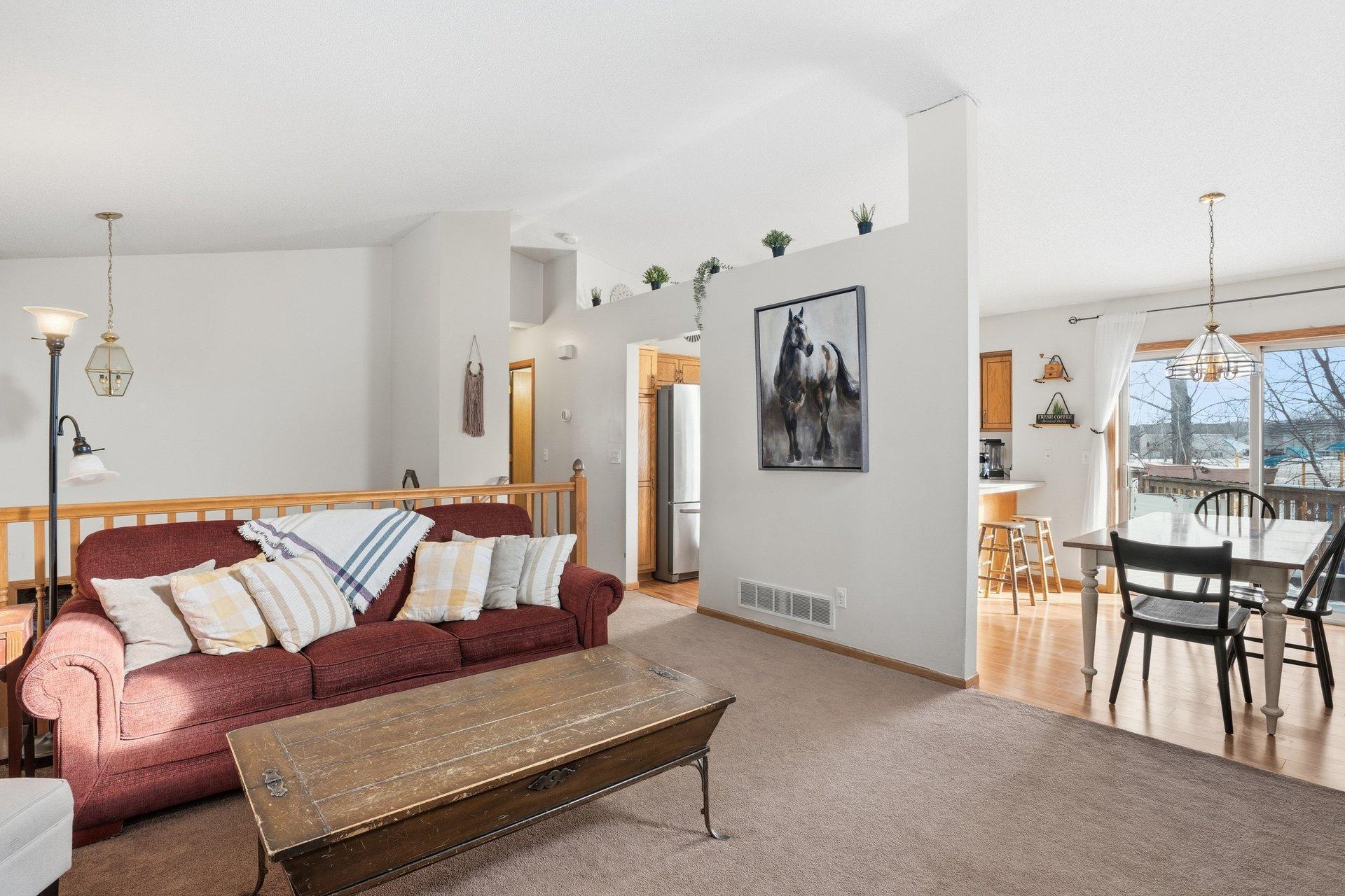 This inviting 3-bedroom, 2-bath split-entry home is located in a well-established Cologne neighborhood. The kitchen and dining area feature attractive updated wood flooring, stainless steel refrigerator and microwave, and a convenient snack bar that connects the two spaces. Sliding glass doors from both the owners bedroom and the dining area open to a deck that spans the entire length of the home. The main level also offers a comfortable living room, two additional bedrooms, and a full bathroom. Downstairs, youll find another bedroom and bath, a spacious family room, an exercise area, and ample space for a home office. The backyard backs up to Marion Fields Park, with a public playground and ball fields just beyond the property, making this a truly special place to call home.
