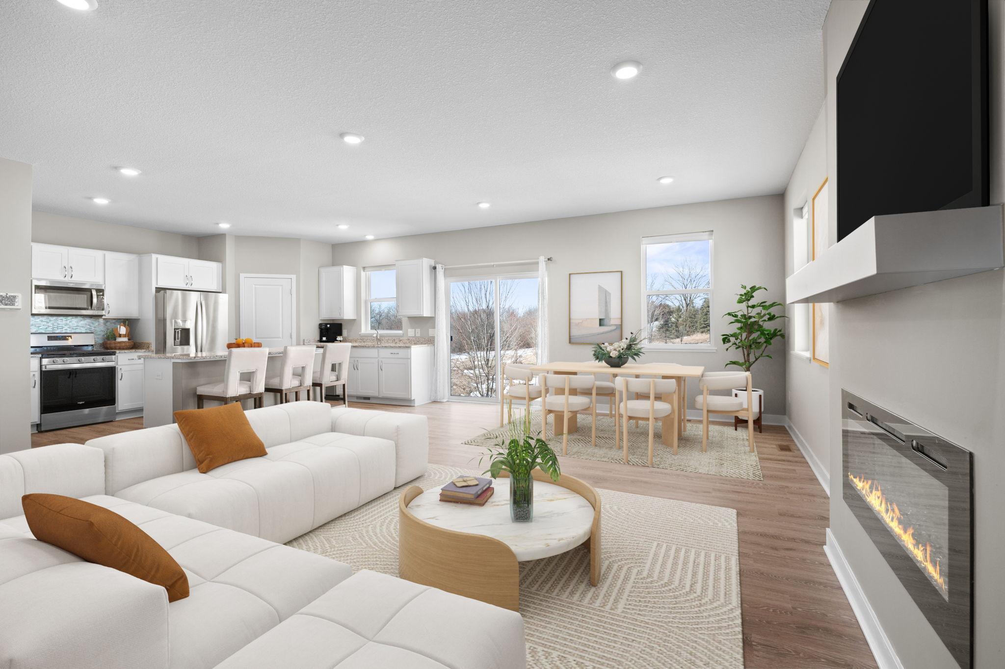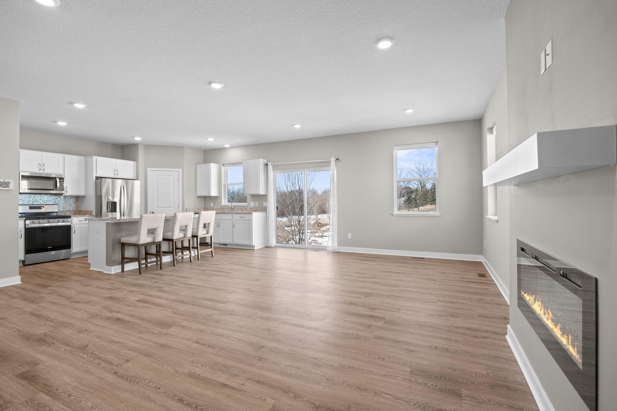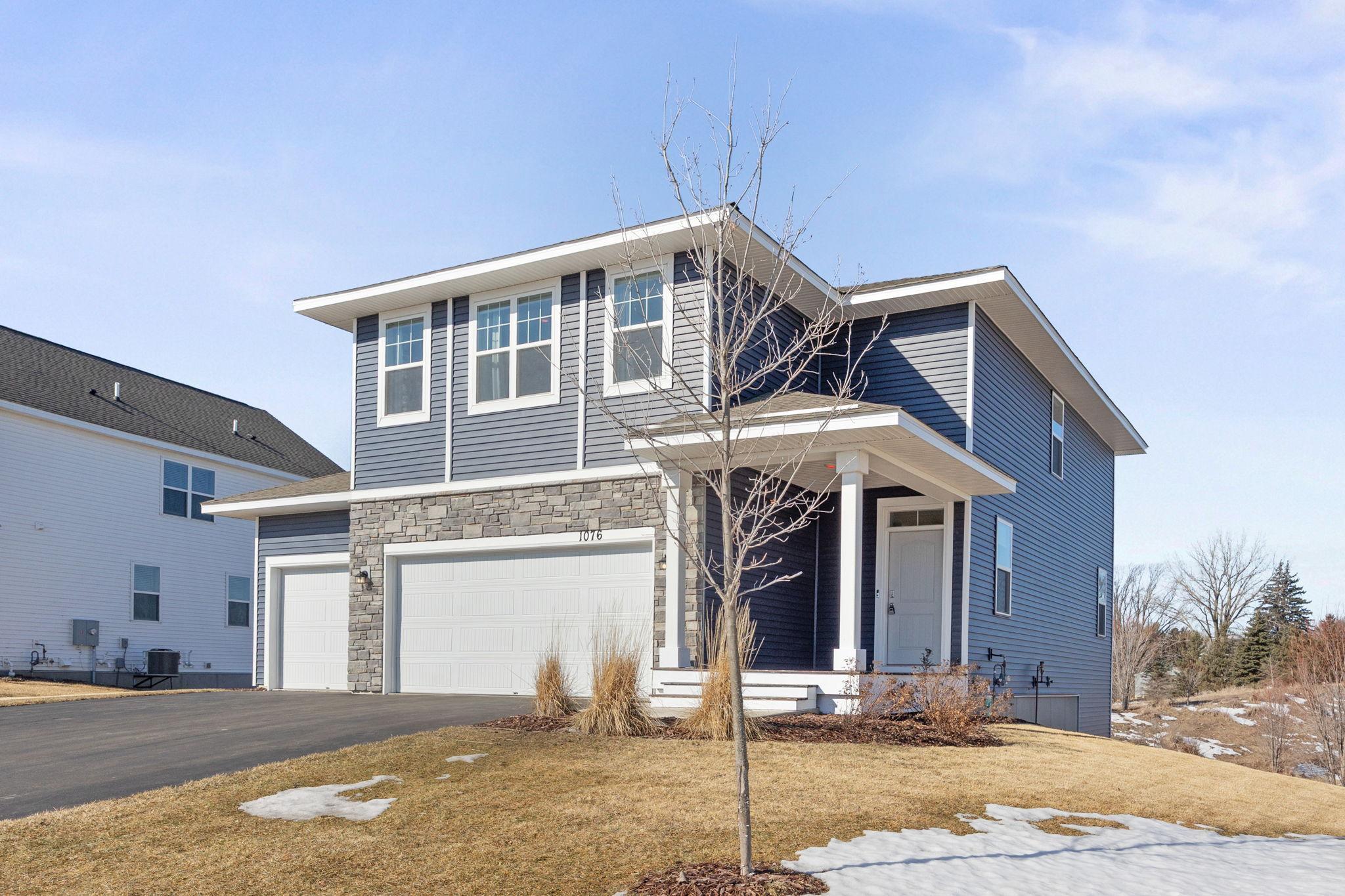 Beautiful 2 story built in 2022 on one of the nicest walkout lots in newer development. Open main level floor plan with 9 ft ceiling. Kitchen with white shaker style cabinets, quartz counter tops, SS appliances, center island with seating + pantry area. Spacious dining/family rm with fireplace & patio door to future deck overlooking pond and open space. Convenient powder rm and closet off front entry. Mud rm off 3 car garage with closet and is just steps to kitchen. 2nd floor features large primary bedroom and bath with 2 walk-in closets. Additional 3 Brs and bath on this level along with spacious loft for family rm/office/play area. Sunny walkout lower level setup with patio door lookout windows, rough-in bath and future bedroom & family room for additional finished square footage. All located on large walkout lot with gorgeous pond setting and sunset views! Community park with heated pool, tot area, basketball court and gazebo!!! Close to trails, schools and highway 169. Just move in & start enjoying your new home on this premium nature viewing lot and skip the wait of the building process!
