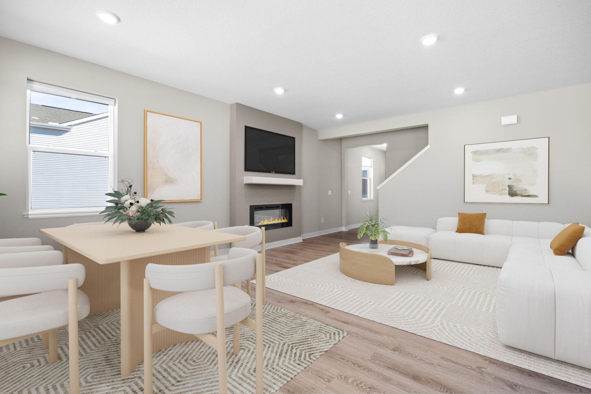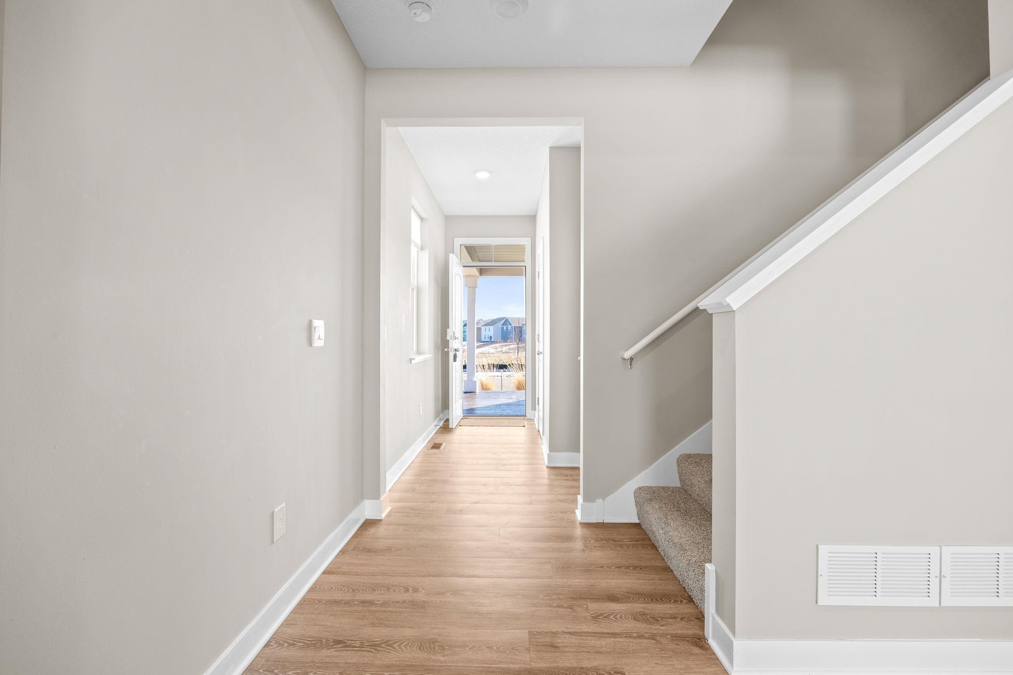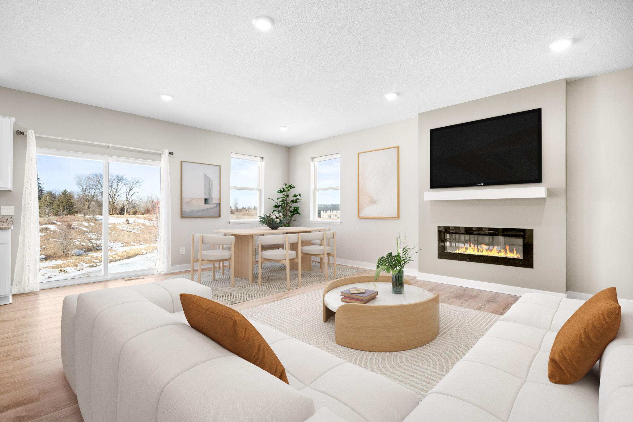 Beautiful 2 story built in 2022 on one of the nicest walkout lots in newer development. Open main level floor plan with 9 ft ceiling. Kitchen with white shaker style cabinets, quartz counter tops, SS appliances, center island with seating + pantry area. Spacious dining/family rm with fireplace & patio door to future deck overlooking pond and open space. Convenient powder rm and closet off front entry. Mud rm off 3 car garage with closet and is just steps to kitchen. 2nd floor features large primary bedroom and bath with 2 walk-in closets. Additional 3 Brs and bath on this level along with spacious loft for family rm/office/play area. Sunny walkout lower level setup with patio door lookout windows, rough-in bath and future bedroom & family room for additional finished square footage. All located on large walkout lot with gorgeous pond setting and sunset views! Community park with heated pool, tot area, basketball court and gazebo!!! Close to trails, schools and highway 169. Just move in & start enjoying your new home on this premium nature viewing lot and skip the wait of the building process!