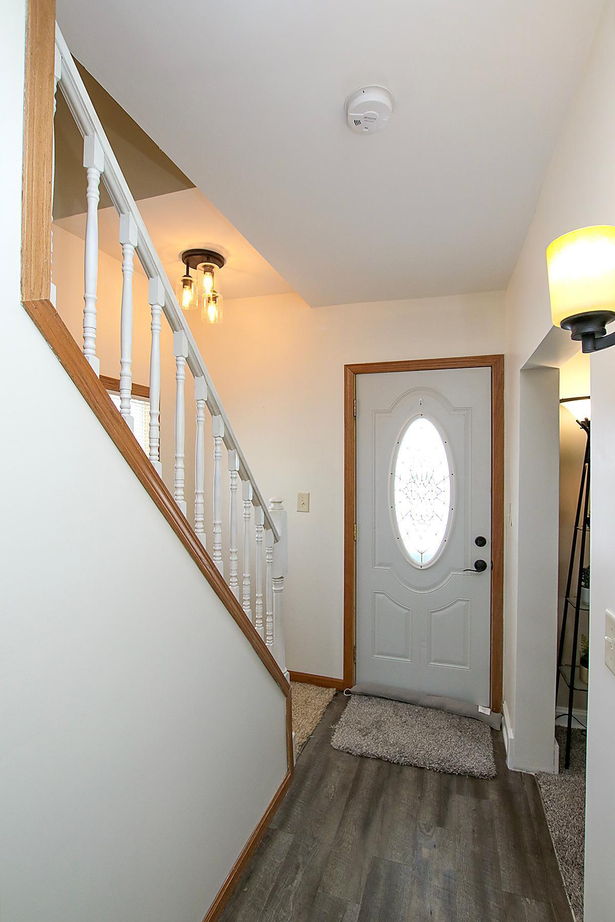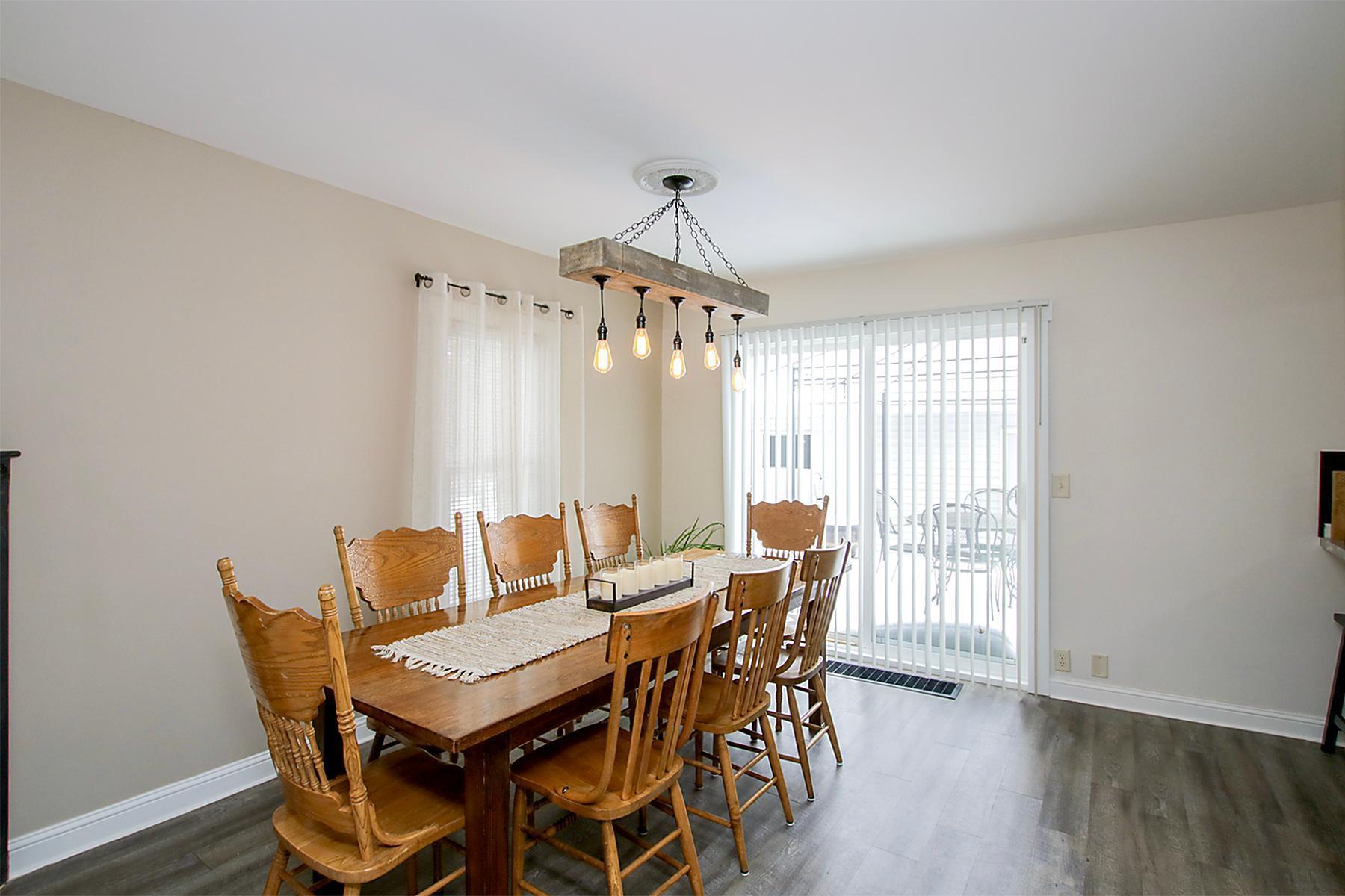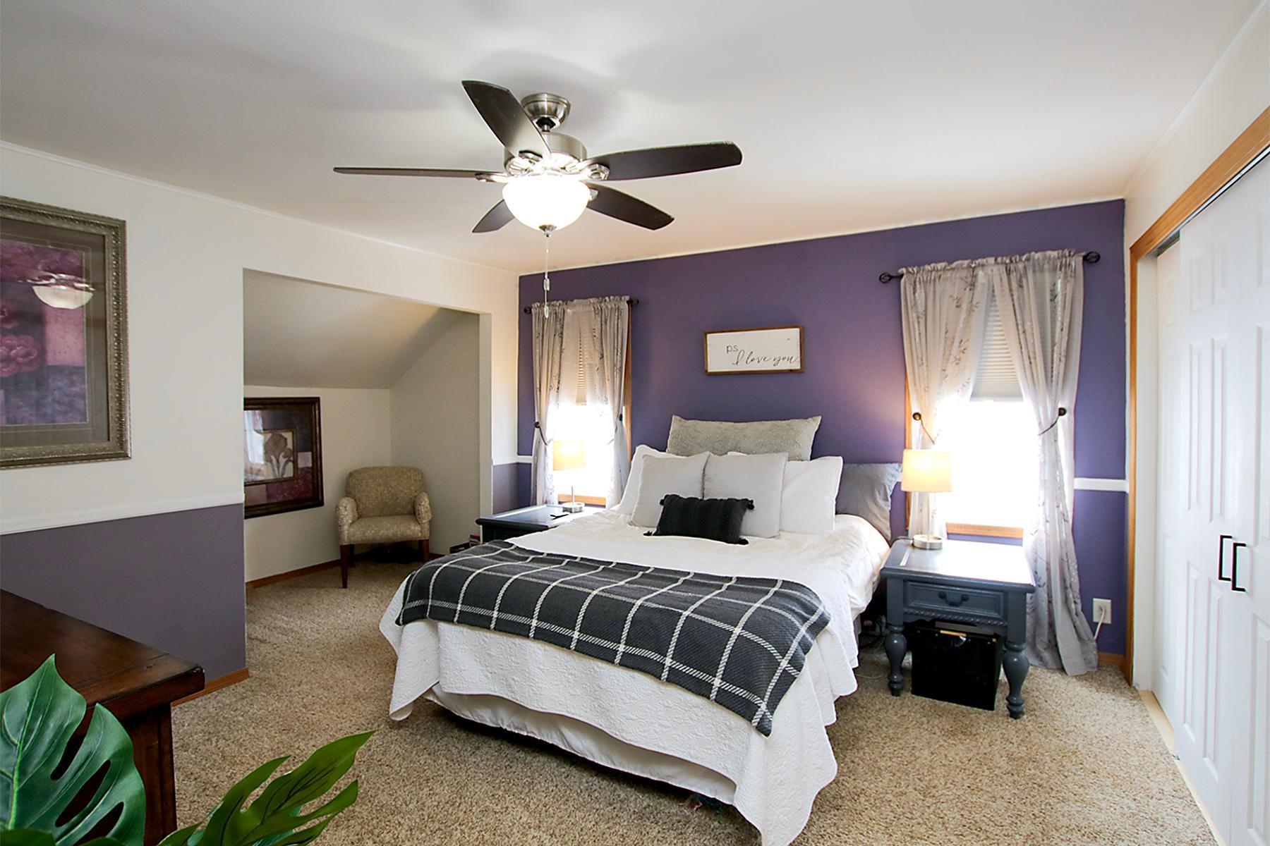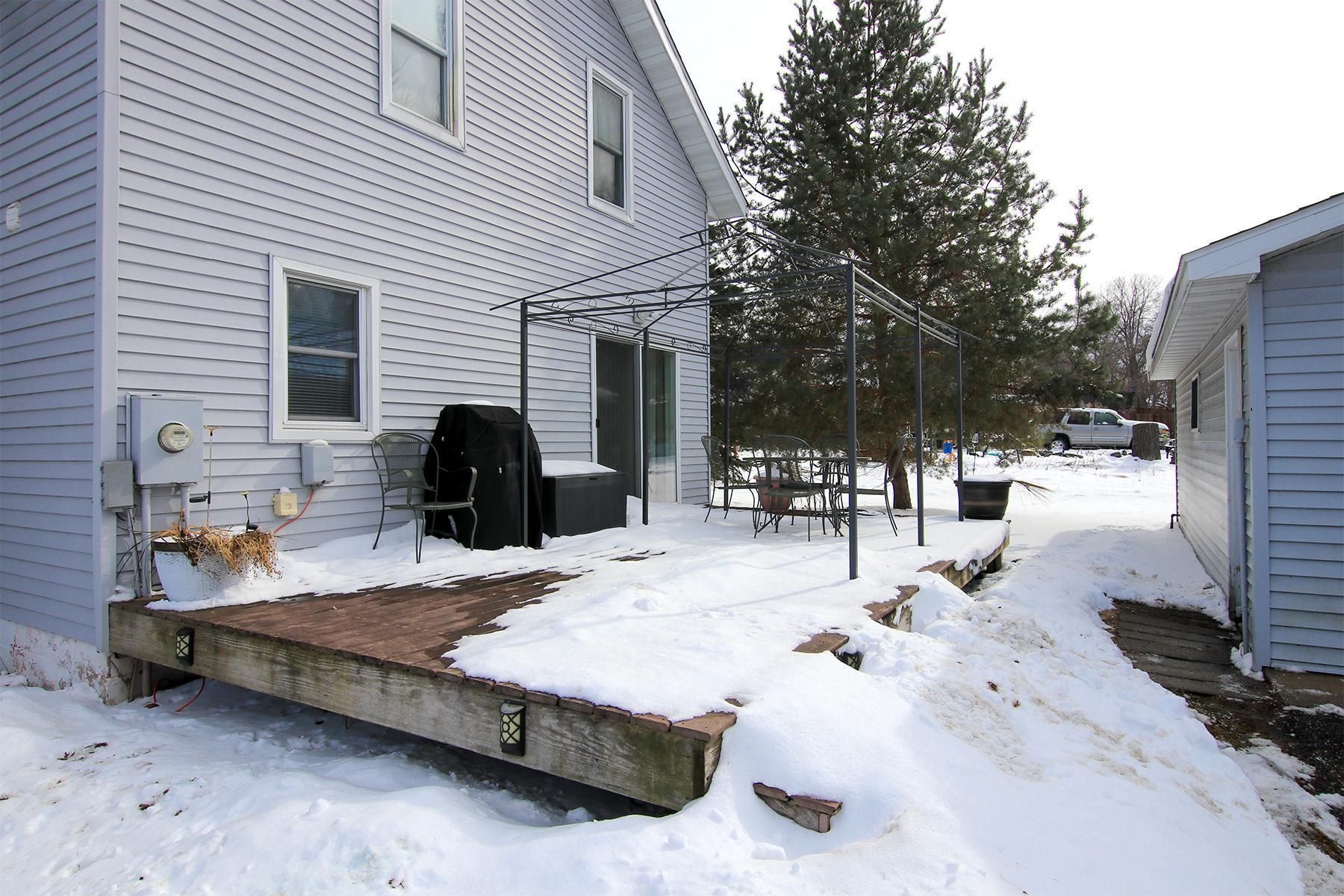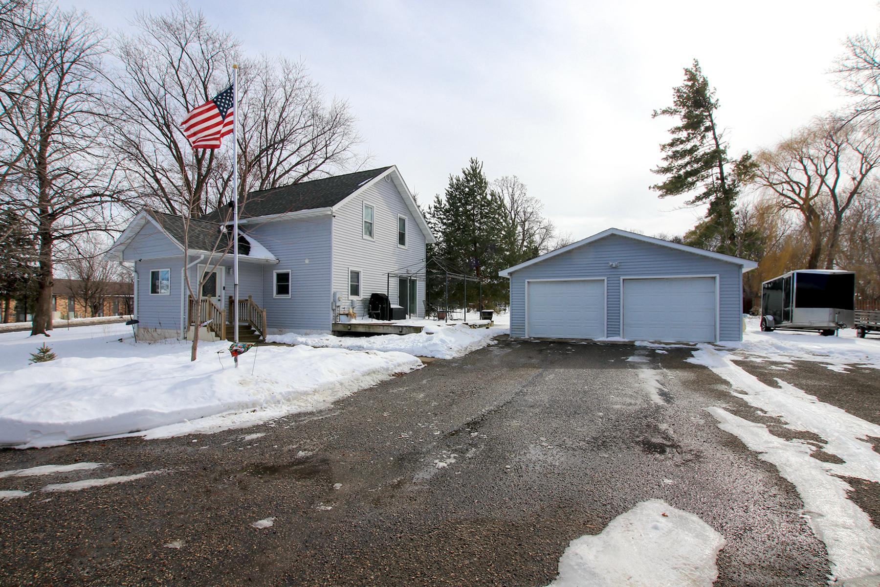 Welcome to this thoughtfully updated twostory home set on a private, oversized half acre lot with mature trees and a generous setback from the road. This low maintenance 2-bedroom, 1.5 bath property offers a large asphalt driveway with parking for 4+ vehicles, an oversized 2428 garage, and a 1010 storage shed. Enjoy your morning coffee on the large maintenance-free composite deck.Inside, the home blends fresh updates with preserved original character. Many of the original plaster walls remain intact, and care has been taken to maintain the homes charm wherever possible. Smooth ceilings add an airy, open feel to the living spaces, complemented by fresh paint and new flooring on the main floor. The updated kitchen with new appliances opens to a spacious dining room, while the living room offers a beautiful electric fireplace that adds warmth and ambiance.The expansive primary bedroom includes an oversized walk in closet and a comfortable sitting area. The updated full bath provides plenty of space as well. At the staircase, a preserved section of original wallpaper offers a tasteful nod to the homes history. The second bedroom offers a comfortable and inviting space, complete with a walk-in closet for ample storage. The unfinished basement is ready for future expansion, complete with an egress window already installed. Additional updates include a new roof and furnace (2018) and professionally installed drain tile with a transferable warranty.