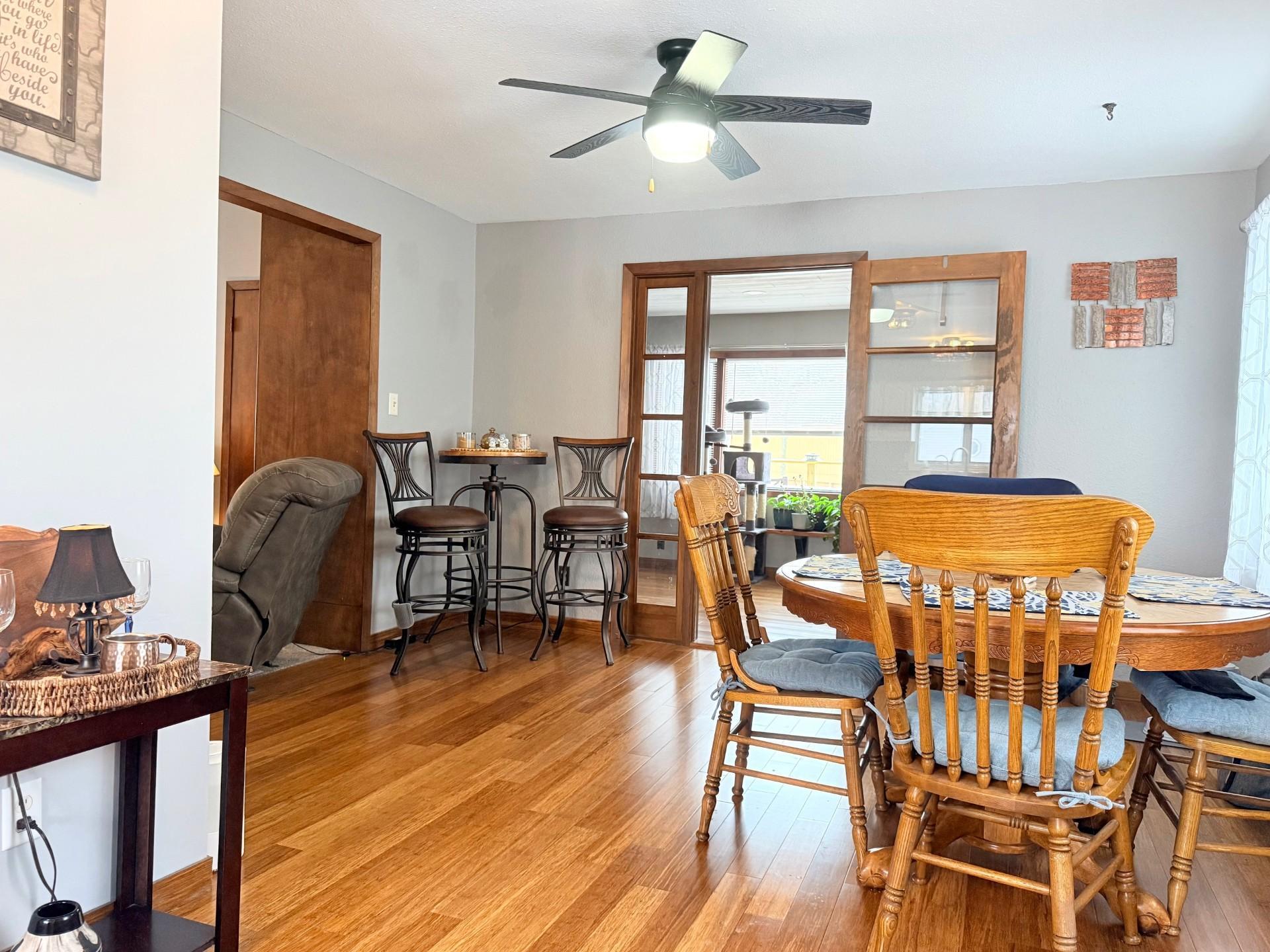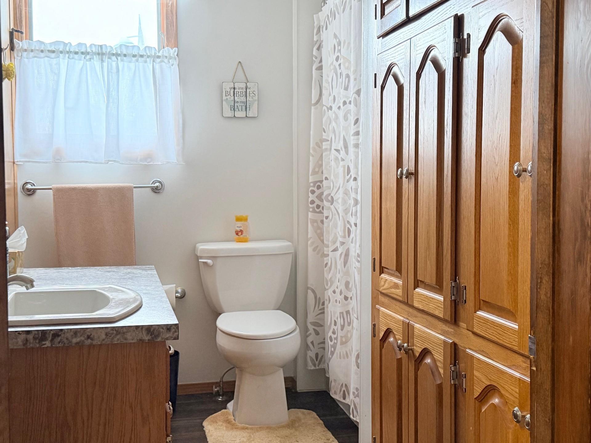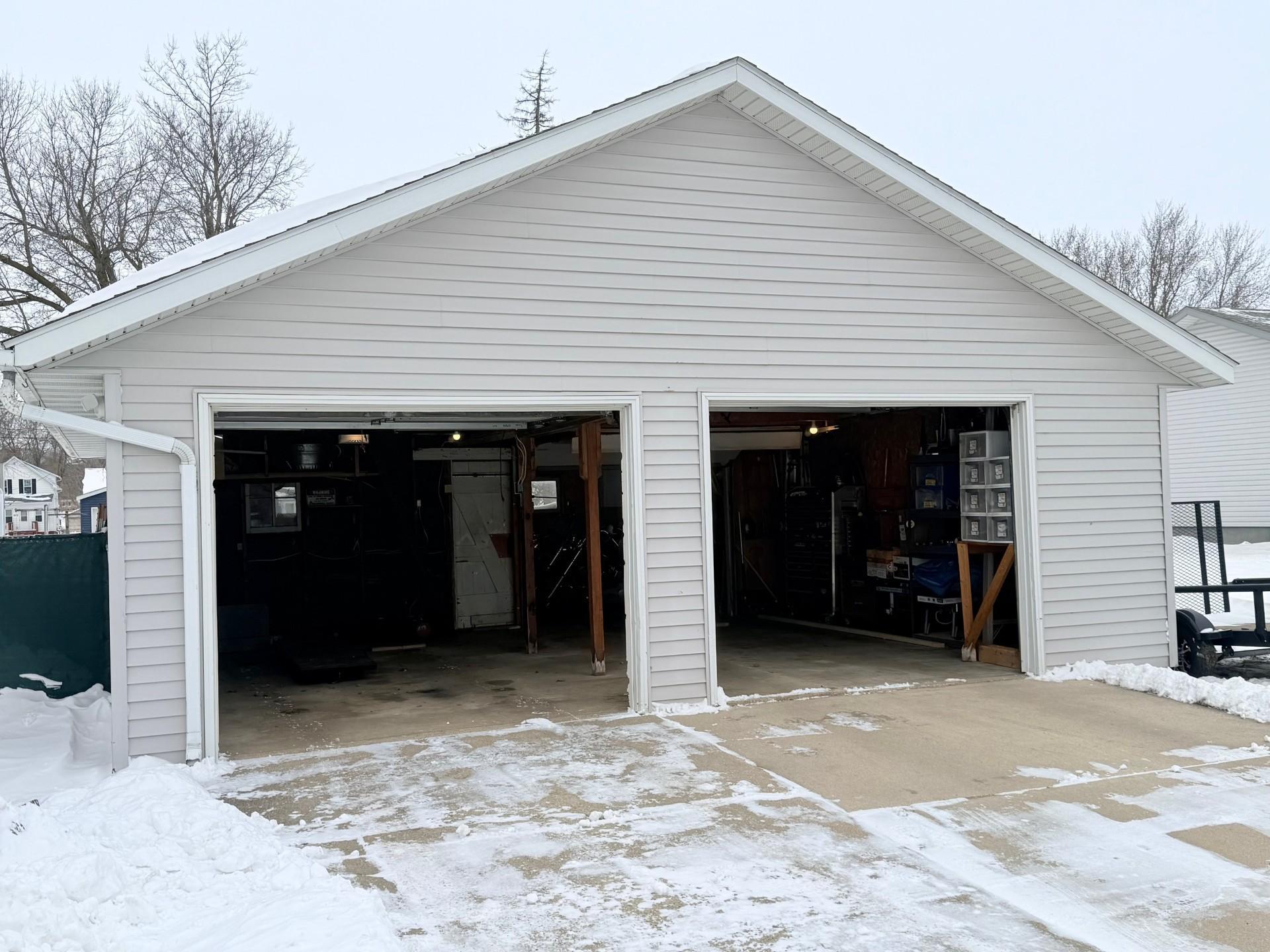 Spacious 3-bedroom home with potential for a 4th bedroom, offering 2 bathrooms and main floor laundry. Two bedrooms on the main level provide easy living and/or potential for a main floor office. Outside, enjoy a rear concrete patio and a large 2-stall detached garage featuring a heated shop.Appliances stay with the home.