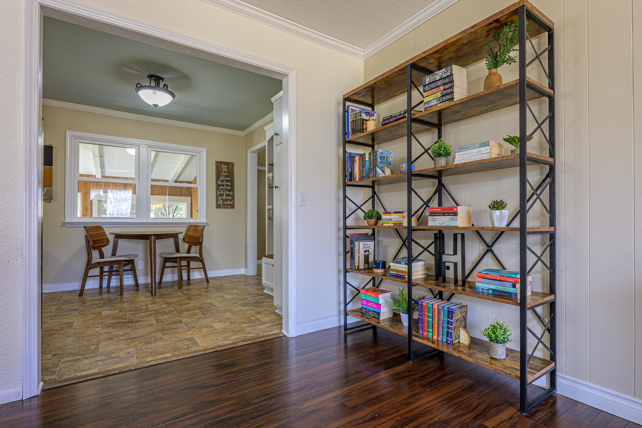 Nestled in a peaceful NE Hutchinson neighborhood, this beautifully updated 4-bedroom, 2-bathroom residence offers the perfect blend of comfort and style. The heart of the home is the updated kitchen, featuring stainless steel appliances, a trendy farmhouse sink, and a practical pantry. Gleaming wood floors flow through the main level, which conveniently hosts three bedrooms on the same floor. Enjoy your morning coffee in the charming three-season porch overlooking a fully fenced-in backyard, complete with an 8x10 garden shed. The finished lower level expands your living space with a spacious family room, a dedicated home office, and a fourth bedroom. Move right in and enjoy the serenity of this prime location!