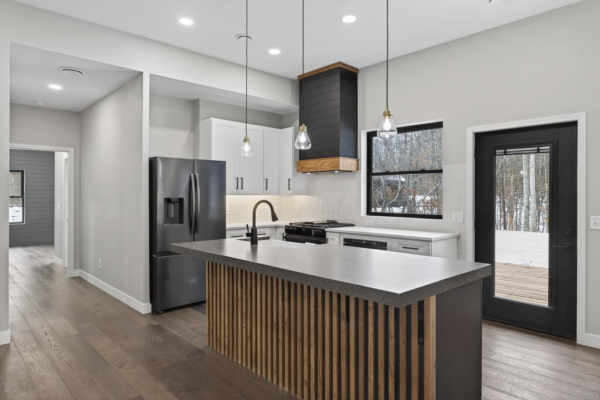 Experience modern luxury and serene Northwoods living in this stunning new-construction, single-level slab-on-grade home, perfectly positioned on a beautifully wooded 1-acre lot between Breezy Point and Crosslake. Just minutes from both Pelican and Ossawinnamakee Lake, this home blends high-end finishes with peaceful natural surroundings.Step inside to an open-concept layout filled with abundant natural light, elevated by LP SmartSiding exterior, and SMART home features controlling the thermostat, lighting, appliances, and more. A formal dining room with custom built-ins and a striking two-toned quartz design anchors the main living space, while the living room offers a cozy fireplace and views of the private backyard.The luxury primary suite is a true retreat, showcasing a spa-inspired wet room with double shower, rainfall fixtures, and custom tile work. Two additional bedrooms and full bathroomeach equipped with Bluetooth speakersprovide comfort and convenience for family or guests.The gourmet kitchen features soft-close solid wood cabinetry with dovetail drawers, premium appliances (including washer and dryer), and a stylish wet bar perfect for entertaining.Outdoor living shines with a 1610 covered front porch and a 3012 back deck overlooking mature trees and local wildlife. The fully finished and trimmed 3-stall garage includes an epoxy floor and ample space for vehicles, storage, or recreational gear.