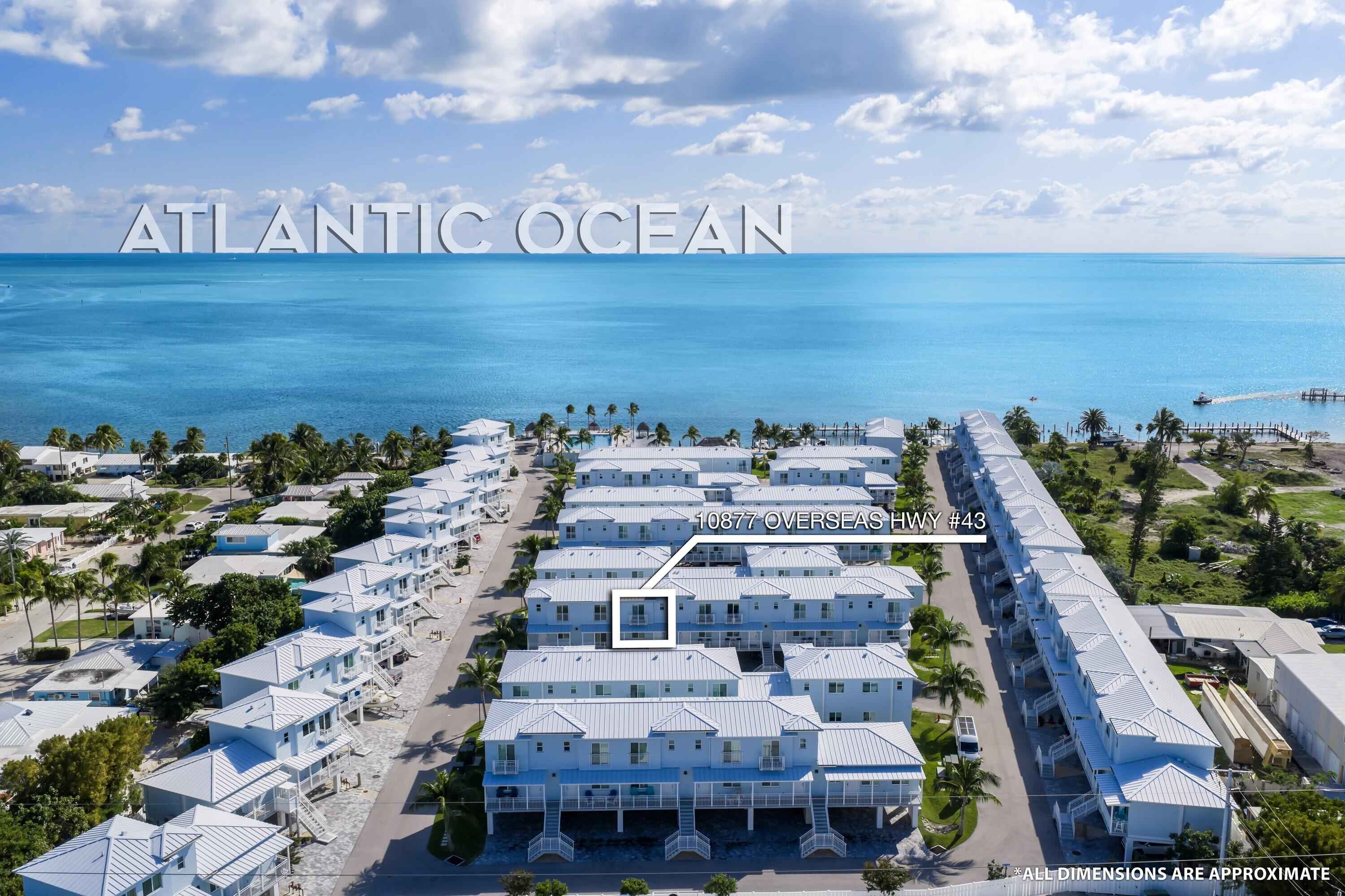 Welcome to Ocean Isles Fishing Village, a gated, seven-acre oceanfront community perfectly positioned in the heart of Marathon. This development features entirely new construction--a hurricane-hardened CBS build, fully engineered for today's strict coastal standards and elevated above the flood zone for added security and peace of mind. With approval for seven-day rentals and HOA fees that include internet, Ocean Isles offers both modern island living and exceptional investment opportunity.Residence #43 is a newly completed two-story unit offering approximately 800 sq. ft. of thoughtfully designed living space with 1 bedroom and 2 bathrooms. The main level showcases an open living and dining layout with bright, coastal finishes. Upstairs, the private primary bedroom features direct access to one of two balconies, creating a tranquil spot to enjoy warm sea breezes and water views. A second balcony off the main level extends your outdoor living space and enhances the home's effortless indoor-outdoor flow. The unit also includes a dedicated hookup for a stackable washer and dryer, adding everyday convenience.This residence was pre-wired for an elevator, providing future flexibility for owners who desire added ease and accessibility.Ocean Isles delivers a true resort-style lifestyle. Enjoy an impressive oversized oceanfront pool, clubhouse, tiki huts, and fish-cleaning stations for the avid angler. The newly updated marina--protected by Jack Tar Flats--features a seawall, bulkhead, and docks designed for smooth access to world-class fishing and diving. Owners benefit from a private boat ramp and reserved dockage, making it easy to get on the water at any time.Just minutes from Marathon's private airport, the community also offers quick access to Islamorada, Key West, and all of Marathon's best dining and attractions.