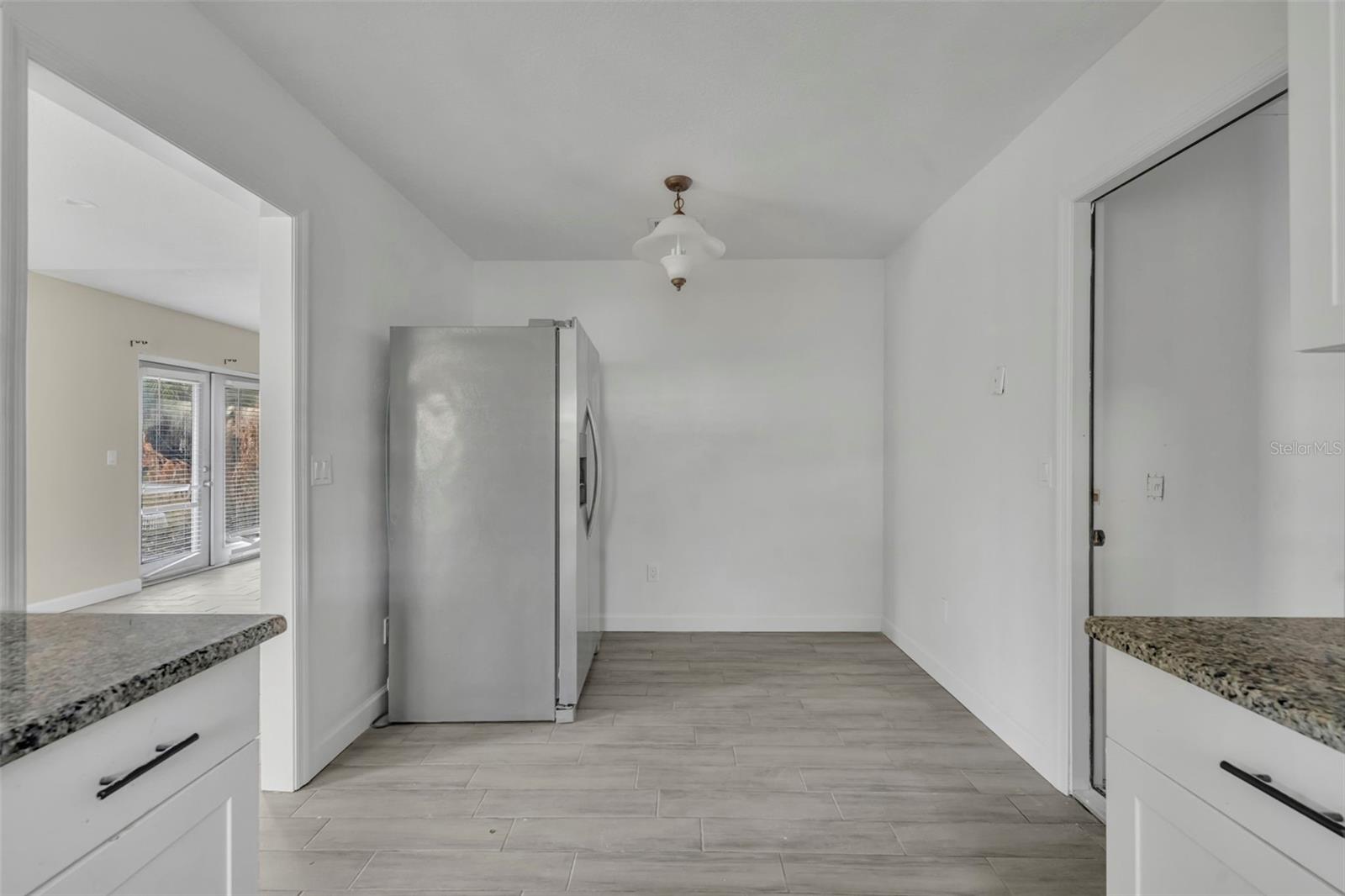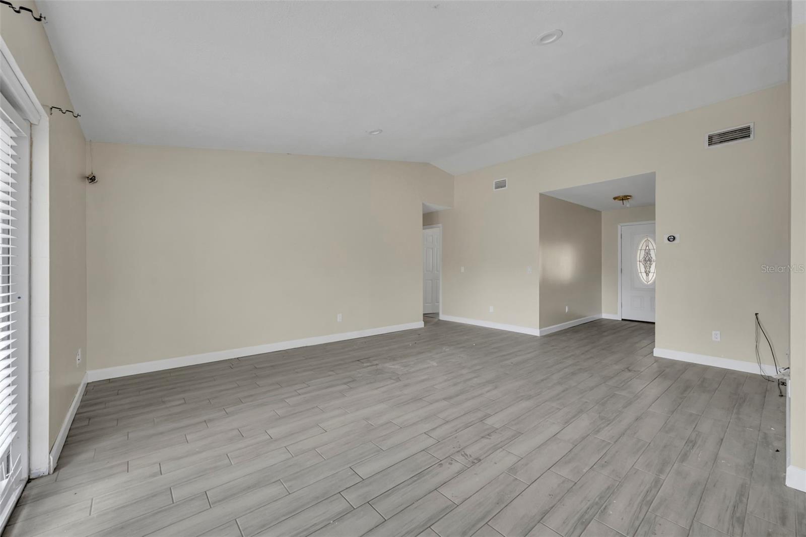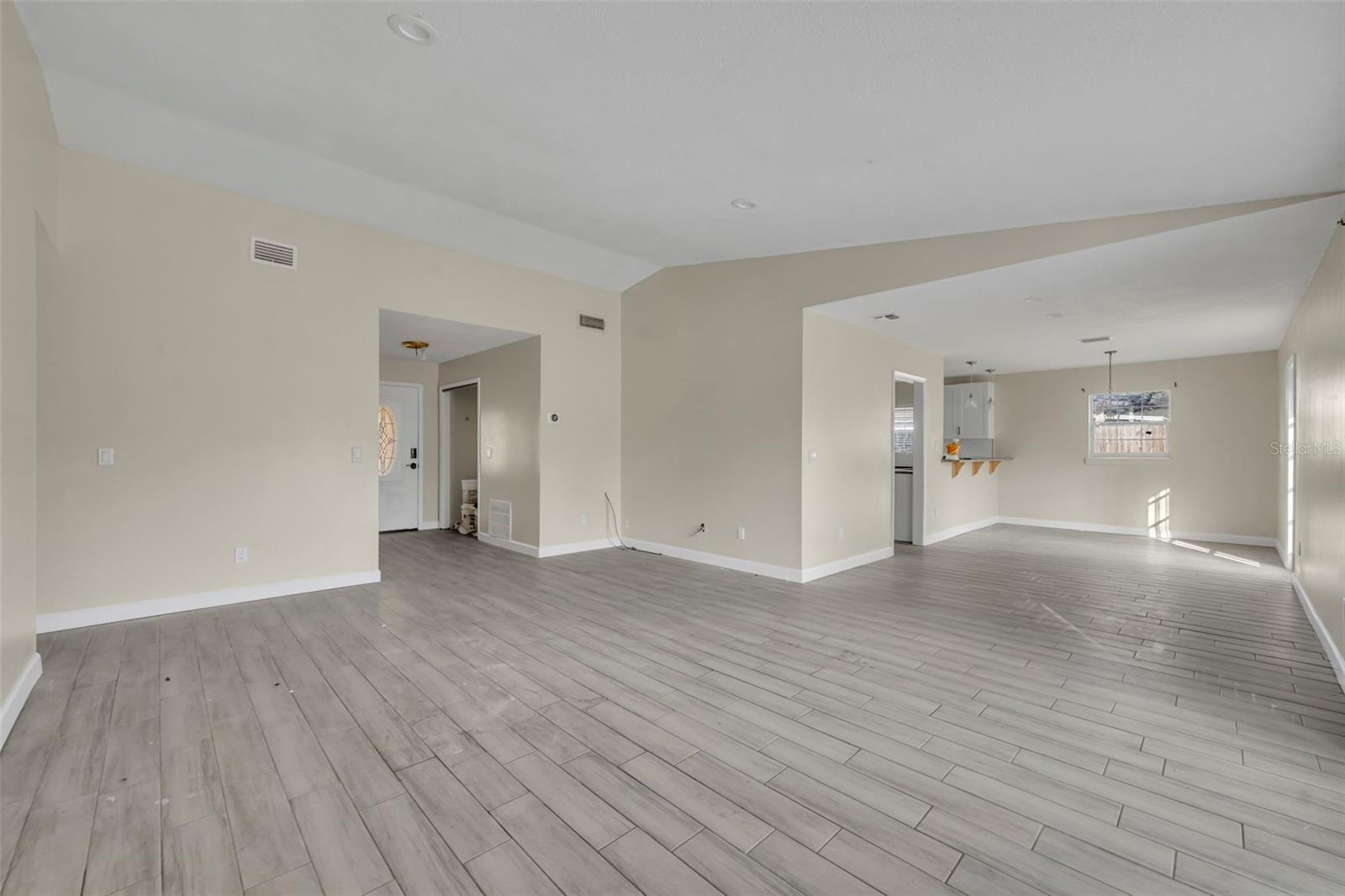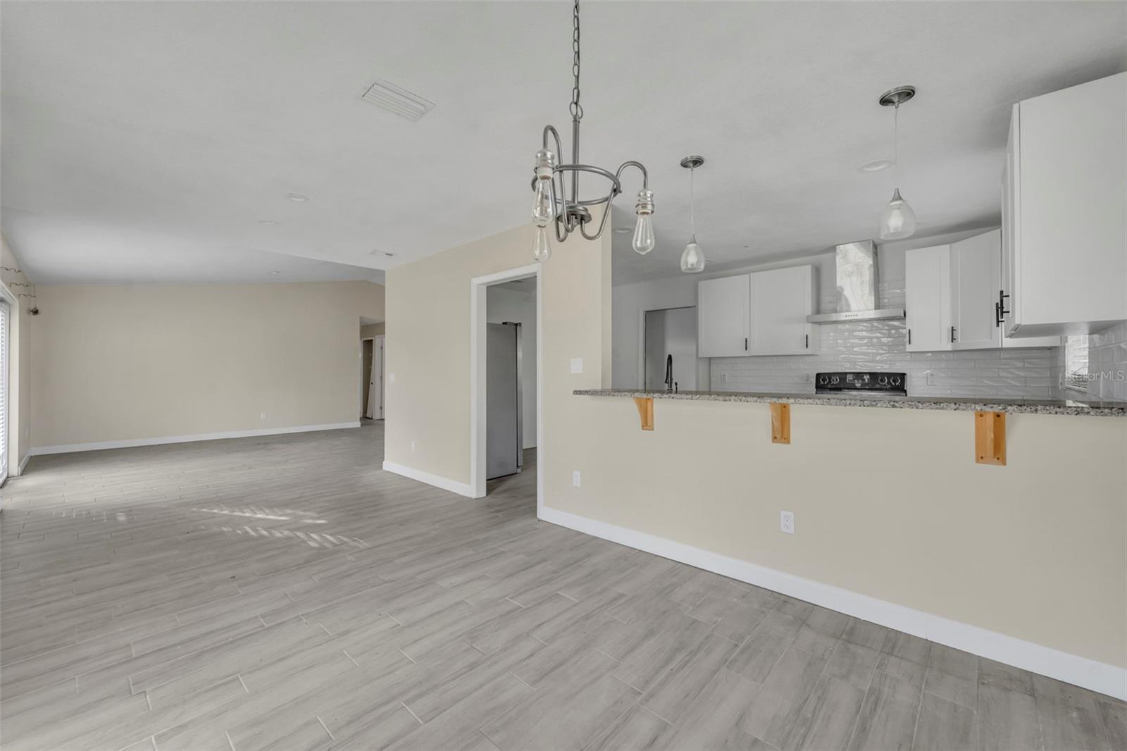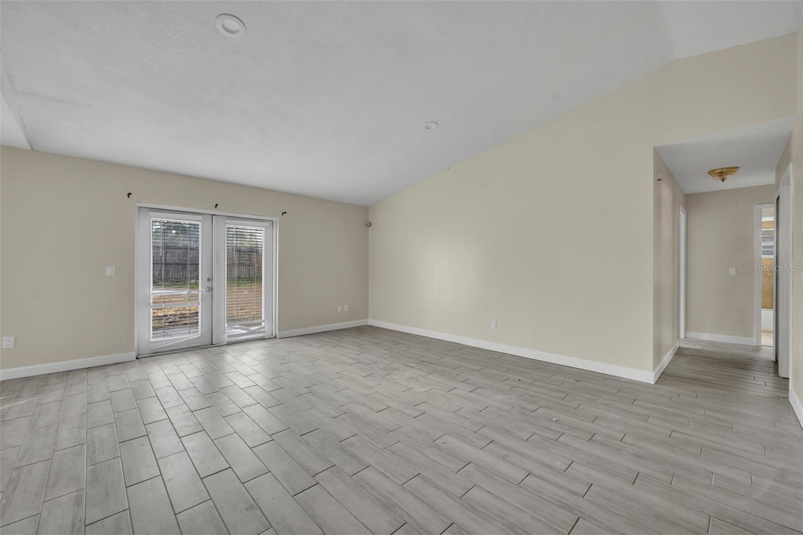 Opportunity awaits in this 3 bedroom, 2 bath home offering 1,399 SF home. Featuring an open layout with neutral tile flooring throughout the main living areas, this home provides a solid foundation for buyers looking to personalize and add value. The kitchen offers white cabinetry, new countertops, subway tile backsplash, and a functional layout overlooking the main living space a great starting point for your finishing touches. The spacious living and dining areas flow to French doors leading to the backyard, allowing for natural light and indoor-outdoor potential. The primary bedroom offers a comfortable retreat with natural light and a private en suite bath. The bathroom features a nice size walk-in closet, walk-in shower with clean white tile surround, updated vanity, and a window that allows for beautiful natural light. The garage has been converted into additional living space and includes a designated laundry area; however, this conversion is not fully complete and will require finishing work. This property still needs cosmetic updates and finishing touches, making it ideal for investors, renovators, or buyers with the right vision to make it their prefect home!