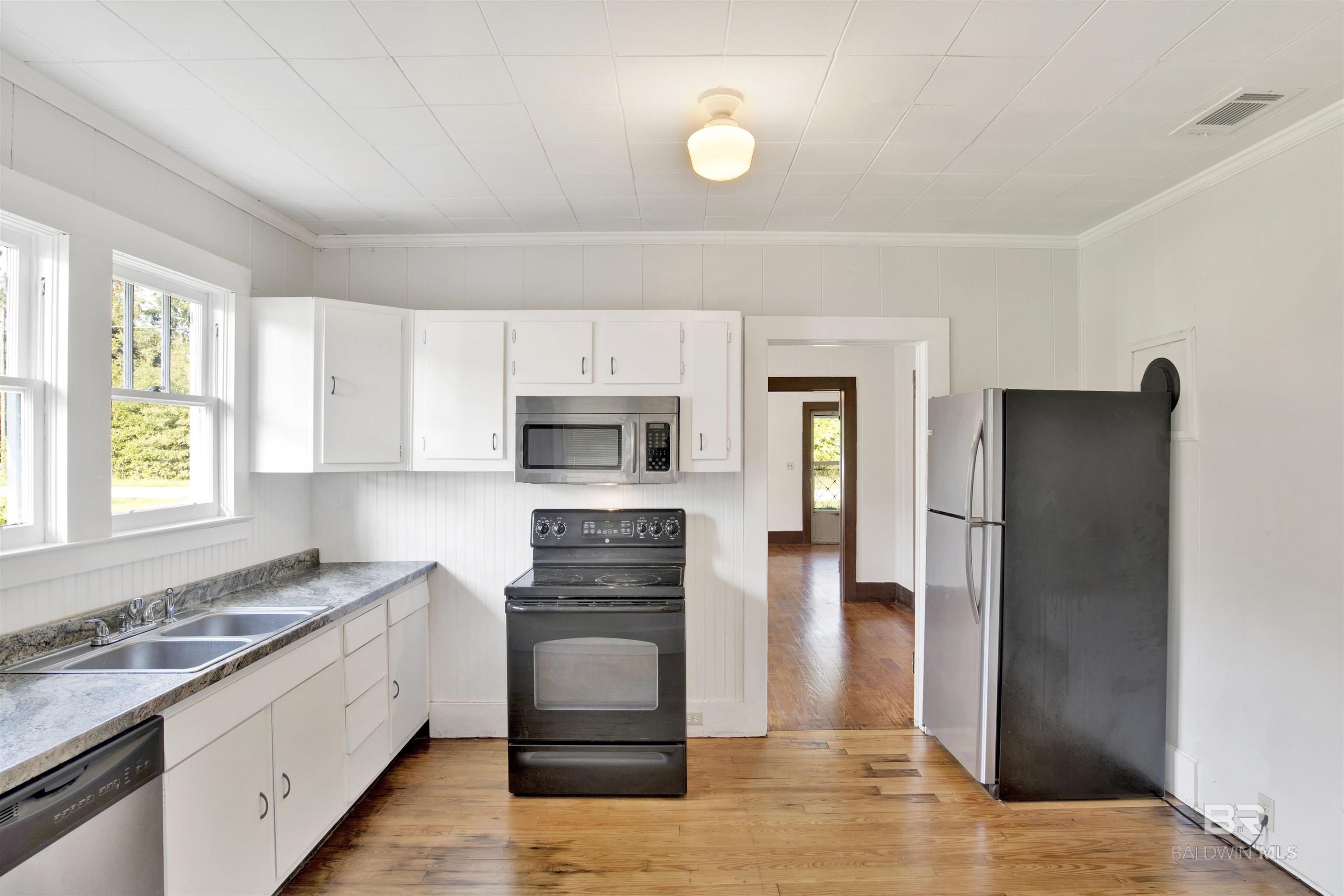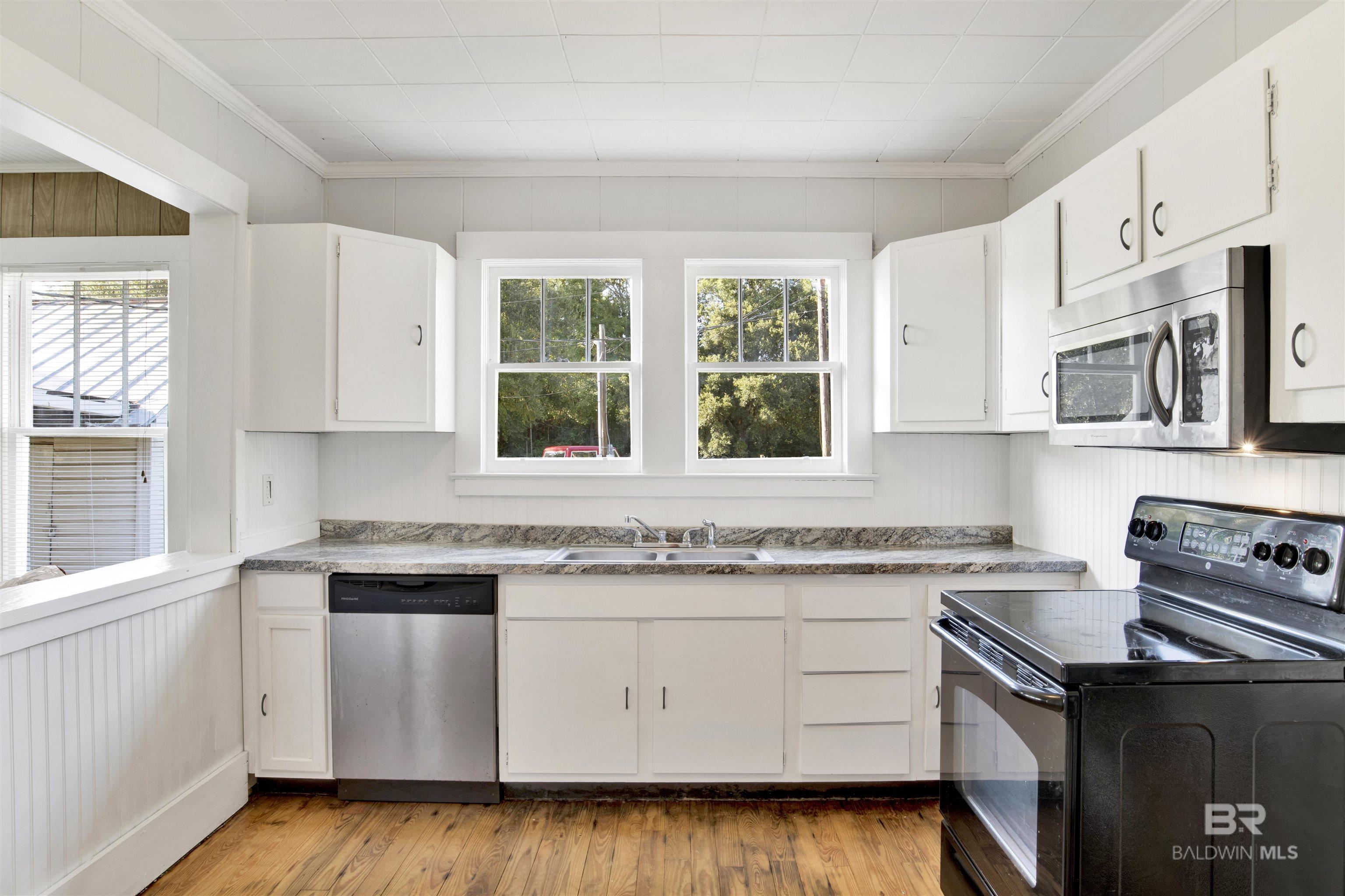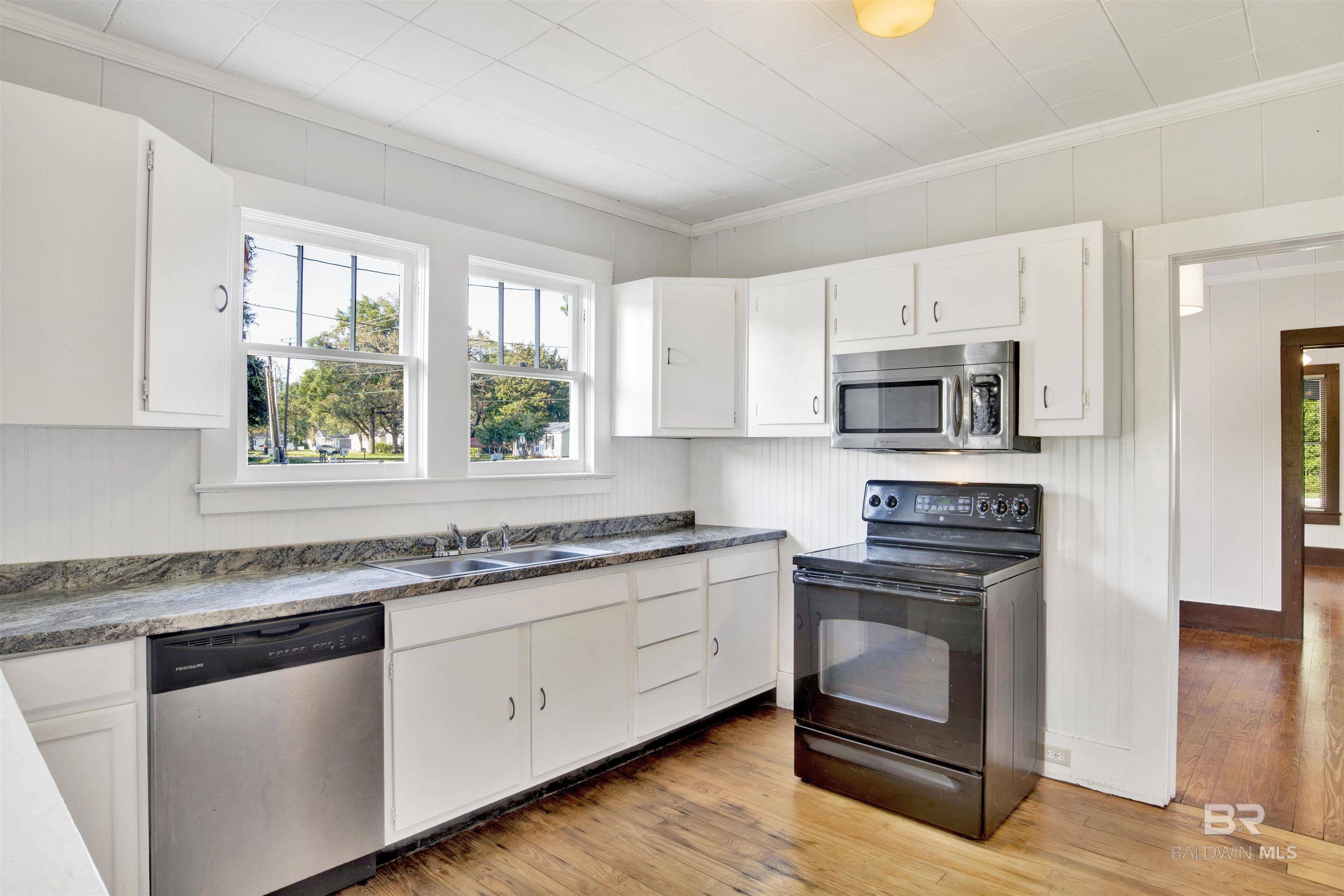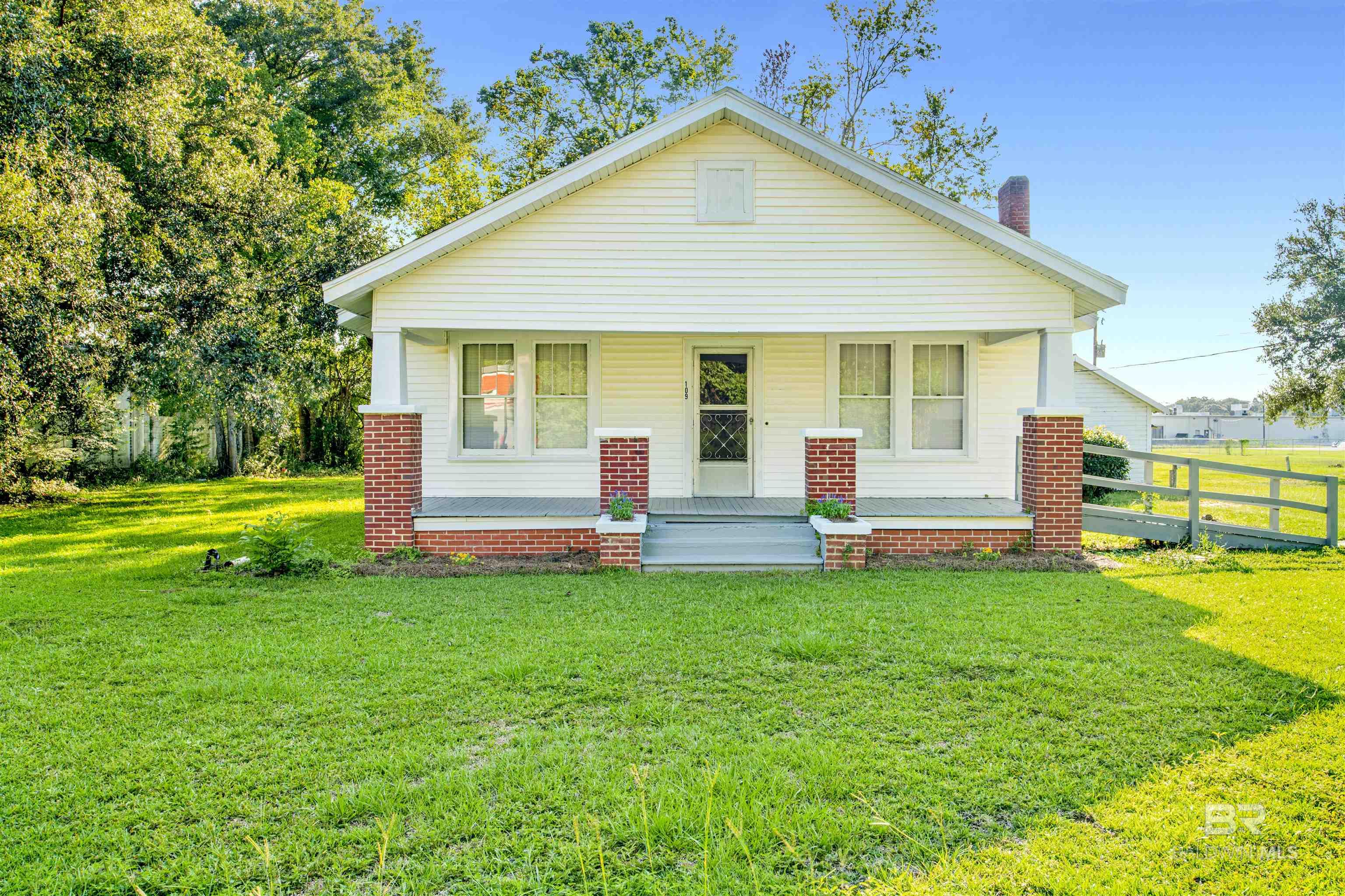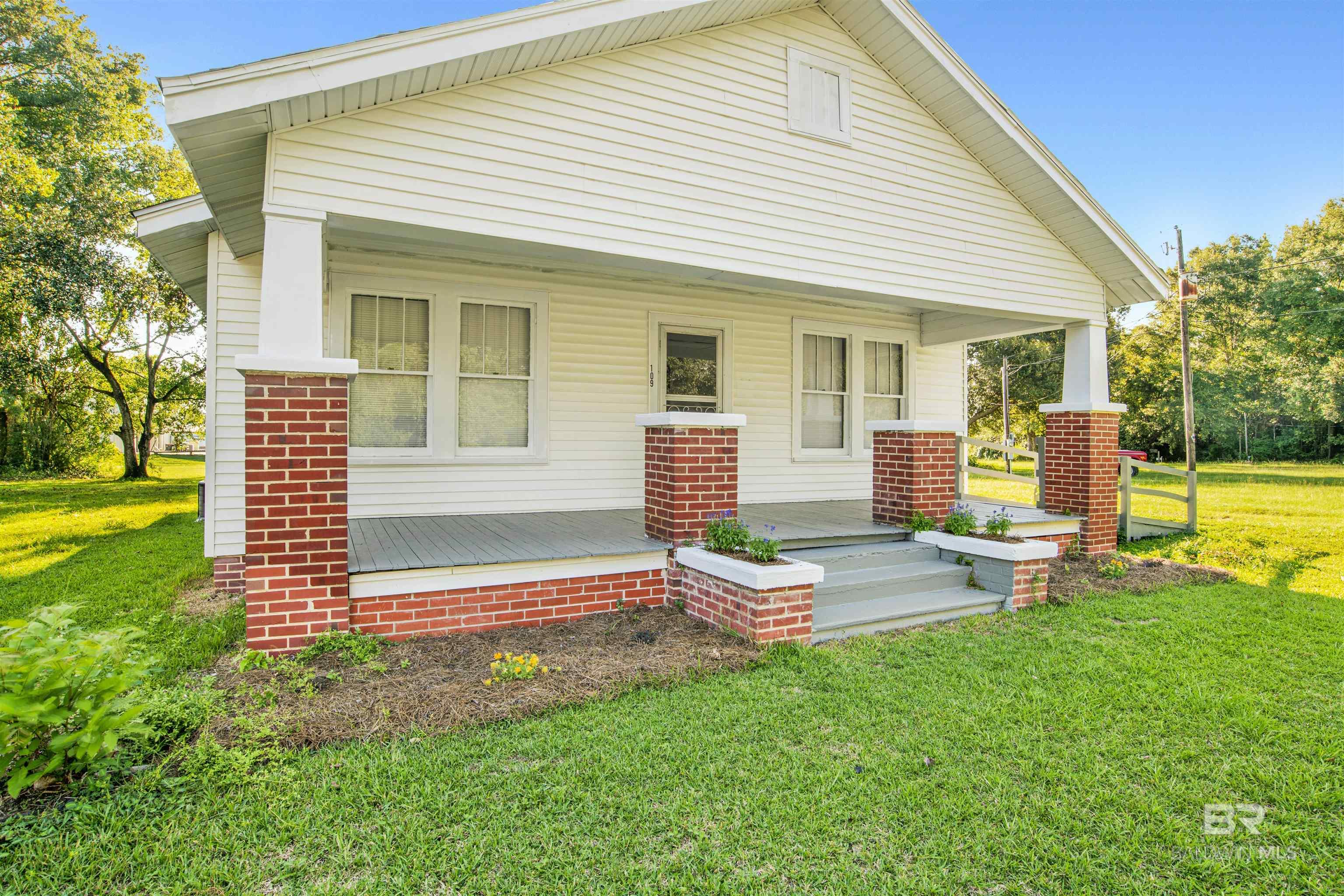 Cute craftsman style cottage conveniently located to shopping, major highways, and parks in the heart of Bay Minette. Three bedrooms, 1 bath home on spacious lot. Brand new HVAC system installed July 2023. Bathroom renovated. Kitchen with dishwasher and electric range. Over the range microwave included as well. Closets in every bedroom. Comfortable sitting room of the kitchen lined with windows. Welcoming, wide southern-style front porch just waiting for rockers and sweet tea! Close proximity to shops downtown or New Novelis site.