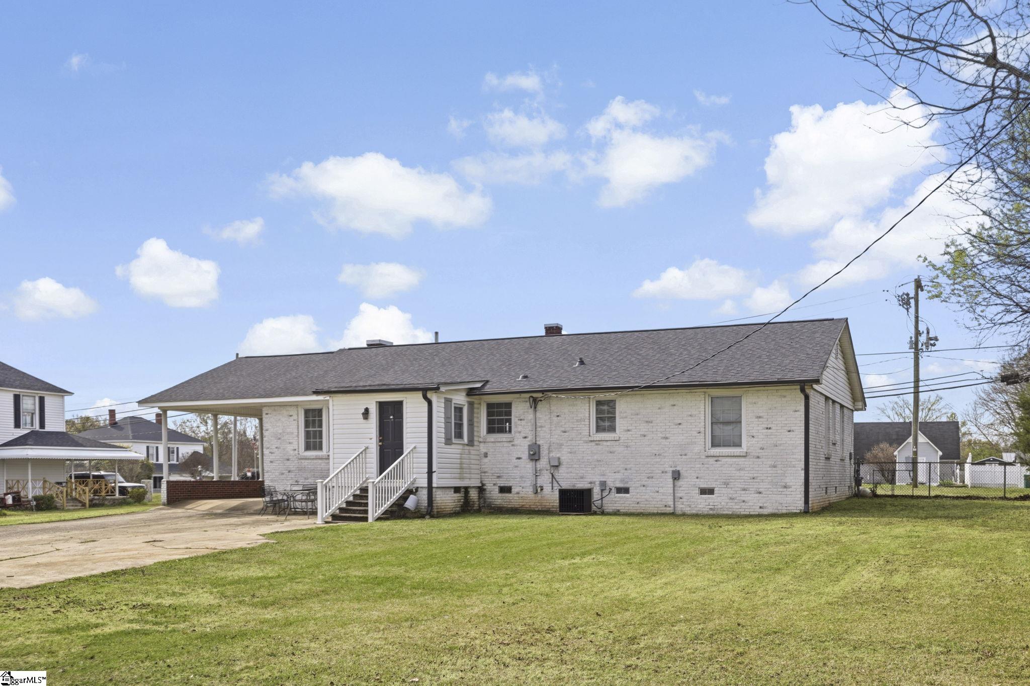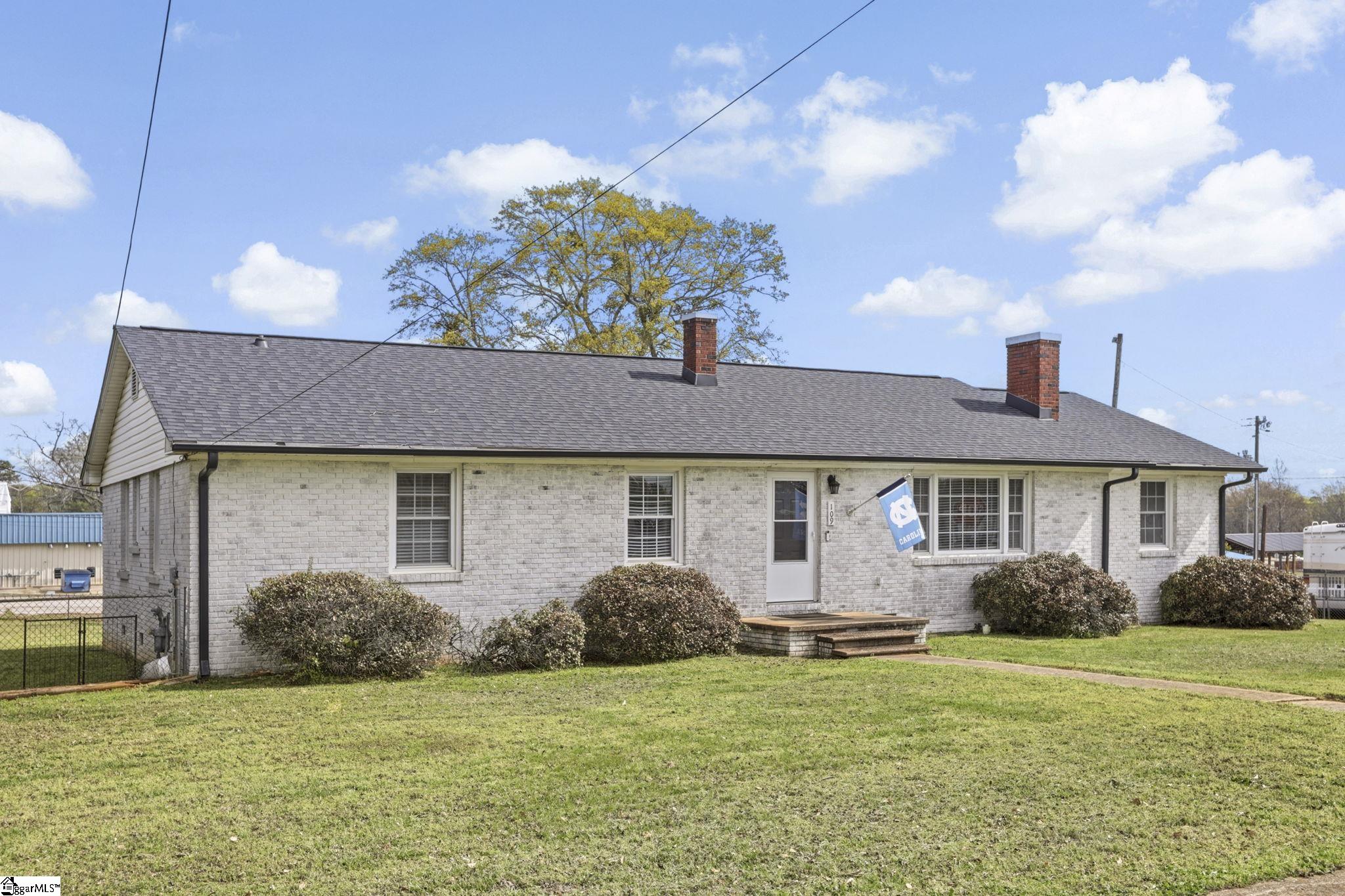 Charming Limewashed Brick Home in the Heart of Cowpens! Beautifully renovated 3-bedroom, 2-bath all-brick home offering 1,649 sq ft of living space, perfectly situated on a spacious 0.44-acre lot with NO HOA. This limewashed exterior adds timeless character and curb appeal, while the interior blends classic charm with modern updates. Step inside to find original hardwood floors throughout, a large kitchen with ample space for cooking and entertaining, and a generous dining area. The inviting living room features a cozy fireplace, creating the perfect gathering space. Outside, enjoy a large fenced backyard, attached carport, and additional parking pads for added convenience. Located in the quaint town of Cowpens, this home is within walking distance to local shopping and dining, and just a short 10-minute drive to downtown Spartanburg. Move-in ready and full of charmschedule your showing today!