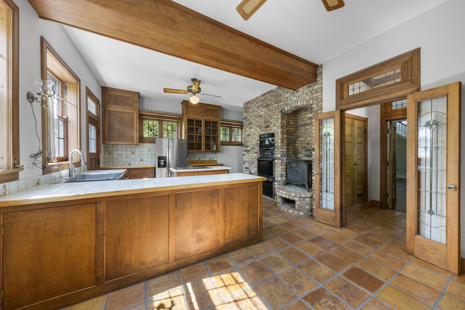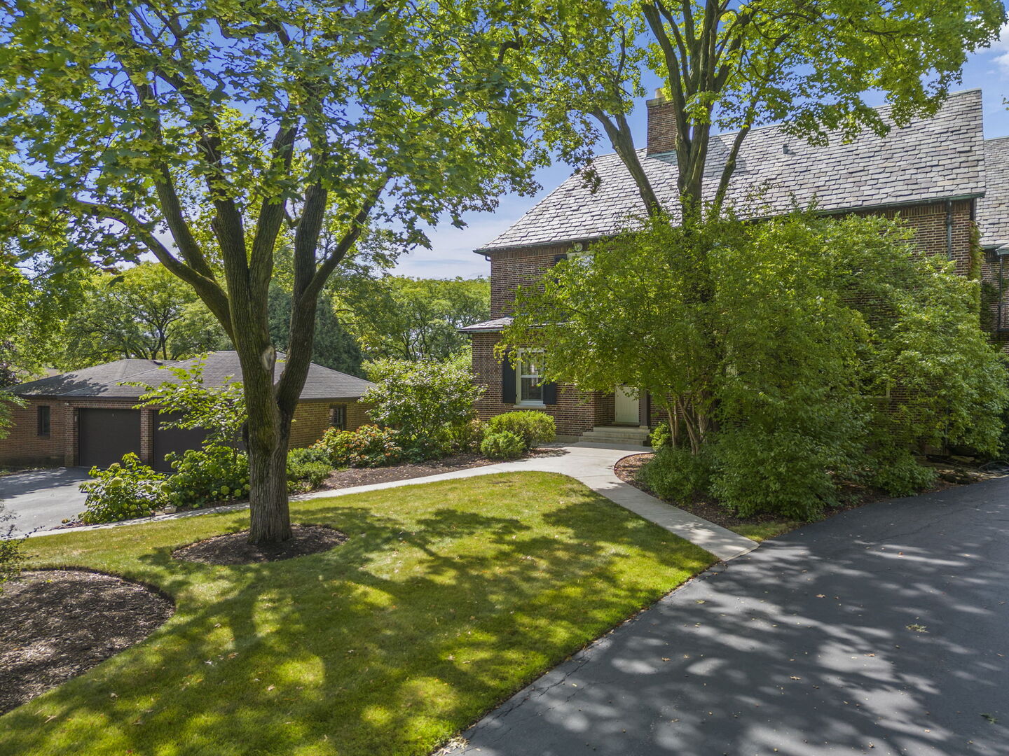 Enjoy maintenance free living in this charming, vintage townhouse on the renowned Hurley estate located in coveted Adare Farm. This charming home is nestled among matures trees on a gorgeous, landscaped lot. Highlights include original refinished hardwood flooring throughout most of the home, 10' ceilings on the 1st floor, crown moldings, exposed brick walls, built-ins, leaded glass doors and transoms, and more! Sun-filled living room with cozy fireplace and built-in shelving/cabinets. Spacious kitchen with breakfast area, abundant cabinetry, center island, cast iron fireplace, original refurbished windows, and hot water radiant heated tile flooring. Second level includes 2 bedrooms, 2 full baths, and laundry. Unfinished attic is heated/cooled and offers plenty of additional storage space. Unfinished basement includes half bath, storage, and wine cellar. Additional features include 4-zone hot water heat, 2 zone a/c, convenient 2nd floor laundry room, detached 2 car garage, and private courtyard with lush landscaping and paver brick patio. Close to Hurley Gardens, parks, tennis courts, grade school, shopping, dining, and Metra train. Rent includes landscape maintenance, snow removal, and garbage service. No pets or smoking.