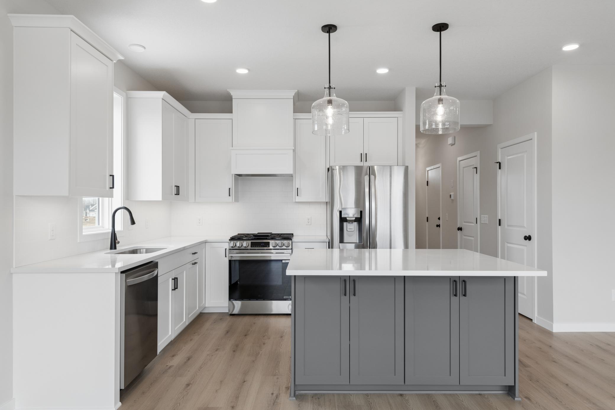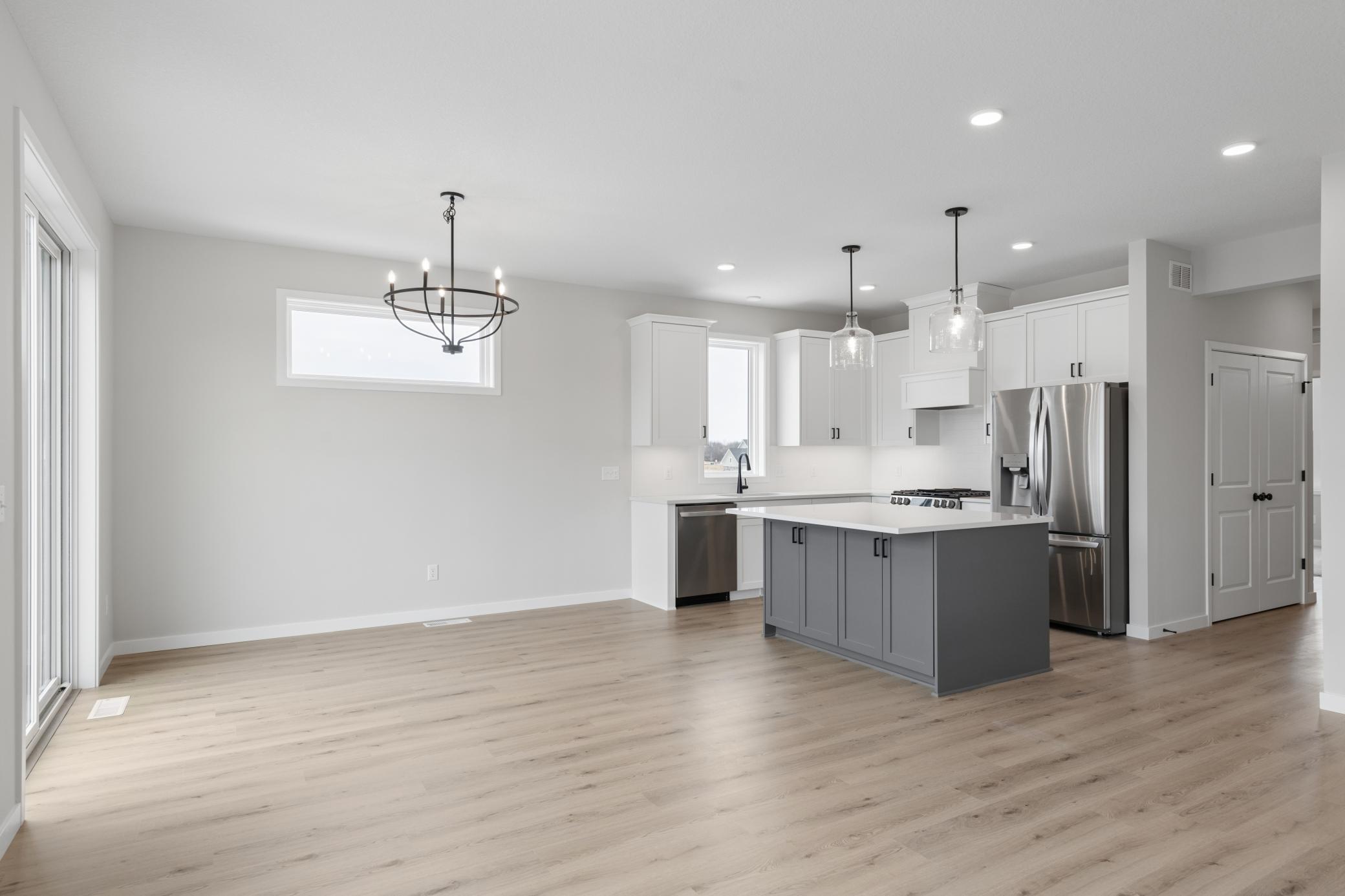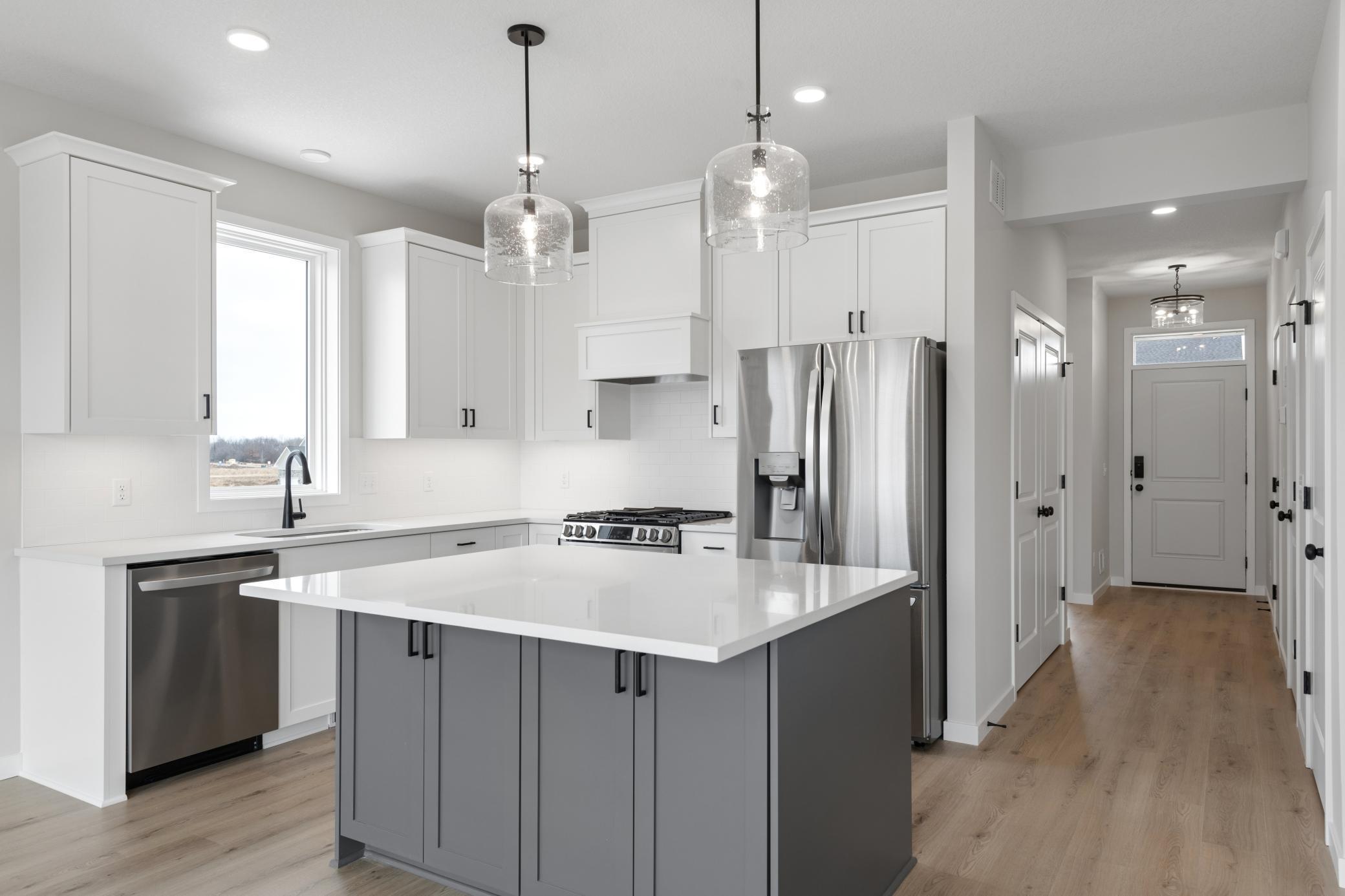 This to-be-built Fraser patio home by Robert Thomas Homes in North Star of Lake Elmo offers a streamlined way to build new with a clear price that includes many popular optionsplus the ability to personalize finishes, colors, and layout details. With an estimated 6-month timeline from purchase to completion, you can plan ahead while watching your home come to life. The open main level features 9 ceilings and a spacious kitchen with custom frameless shaker cabinetry, soft-close doors and drawers, 42 uppers, quartz countertops, tile backsplash, and upgraded appliances including a gas range, refrigerator, washer, and dryer, with durable upgraded SPC flooring extending throughout. The Gathering Room includes an electric fireplace and pre-wired media setup, while the primary bath offers double sinks for added comfort. Built for efficiency and durability, the home includes MN-made Vector windows, tankless water heater, water softener, radon system, and 200-amp service. Exterior highlights include LP SmartSide front, CertainTeed shingles, insulated garage door, and a 12x12 patio. Full landscaping, sod, and irrigation are HOA-maintained for easy living. Located in scenic Lake Elmo, North Star offers natural beauty, nearby parks and trails, plus a future neighborhood pool and clubhouse. Includes Design Studio allowance and $10K closing cost incentive with preferred lender. Photos are of a similar model and may show optional features.
