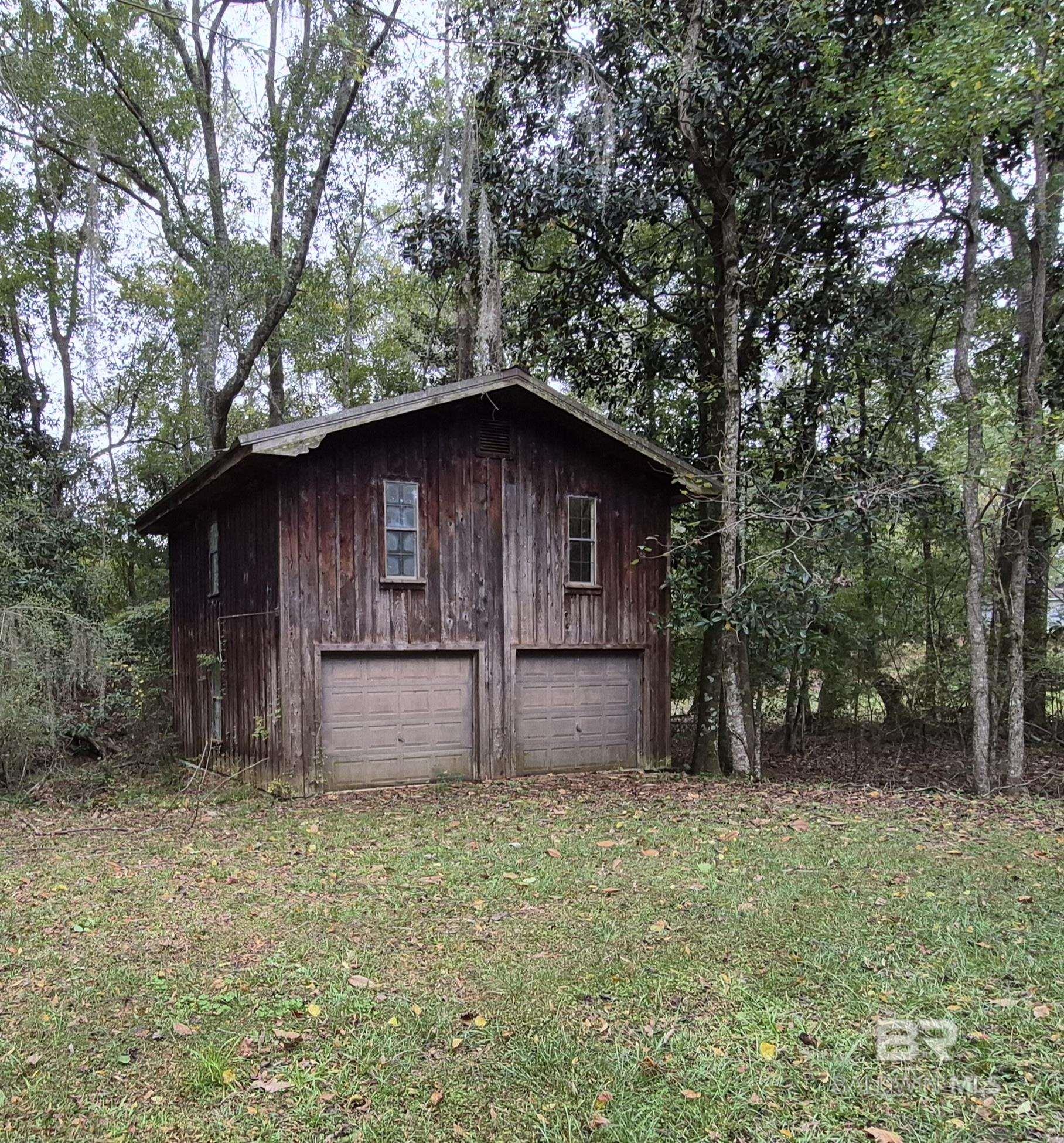 This two-story rustic cabin-style home is situated on approximately 1.72 wooded acres within the city limits of Evergreen, offering a blend of convenience and natural surroundings. Designed with warmth and character, the main level welcomes you with vaulted ceilings, a fireplace, and built-in bookshelves in the family room. Brick flooring downstairs enhances the cabin-inspired appeal while offering durability and easy maintenance. The kitchen provides ample cabinetry and counter space and flows seamlessly into the dining area. A bonus room filled with flowing natural light opens onto the back deck, creating a peaceful space to enjoy the wooded setting. The primary suite is located on the main floor and includes a spacious bath with double vanity, garden tub, separate shower, and walk-in closet. Upstairs, you will find two additional bedrooms and a full bathroom, complementing the homes functional two-story layout. Additional interior features include a laundry room and attached garage for convenience. Surrounded by mature trees, the 1.72 acre wooded lot enhances the homes rustic charm while remaining within city limits. The property also includes a 26x50 three-bay garage/workshop suitable for vehicles, equipment, hobbies, or storage. A separate storage building features an upstairs apartment space, offering potential for rental income, guest accommodations, or a private workspace providing added versatility and investment opportunity. This property offers the rare combination of cabin-style character, wooded surroundings, and income-producing potential all within the convenience of town. Buyer to verify all information during due diligence.