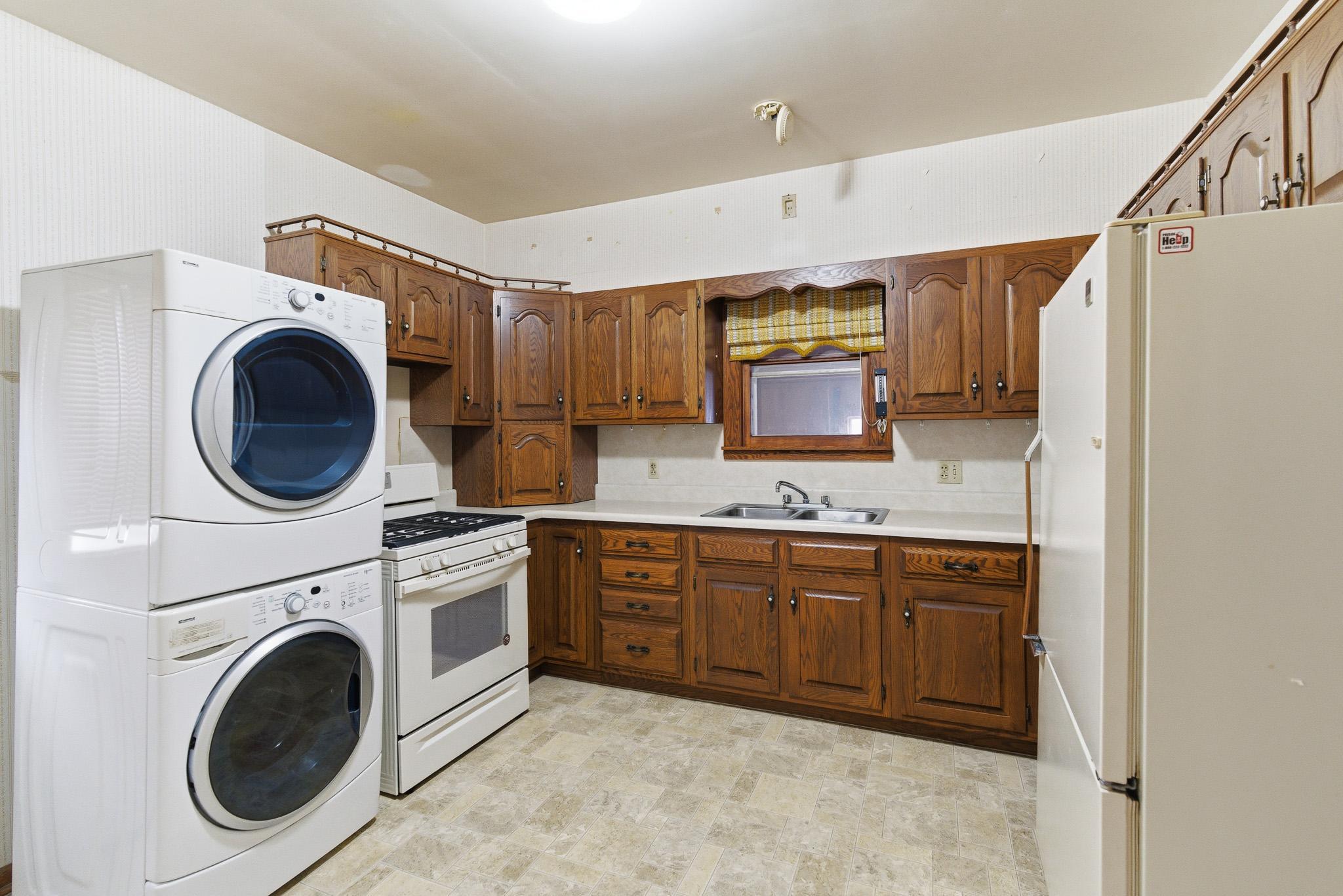 Well-kept home located in Kiester with a practical and efficient layout. Main level includes a comfortable living room, dining area, kitchen with ample cabinet and counter space, plus a main-floor bedroom and full bath. A screened front porch adds usable seasonal living space. Upstairs offers two additional bedrooms and a half bath. Property sits on approximately 0.26 acres and includes an attached garage, full basement with utility and storage areas, and good outdoor space. Interior features a bright kitchen, dedicated dining space, and convenient main-floor laundry. Solid layout, good storage, and functional spaces throughout.