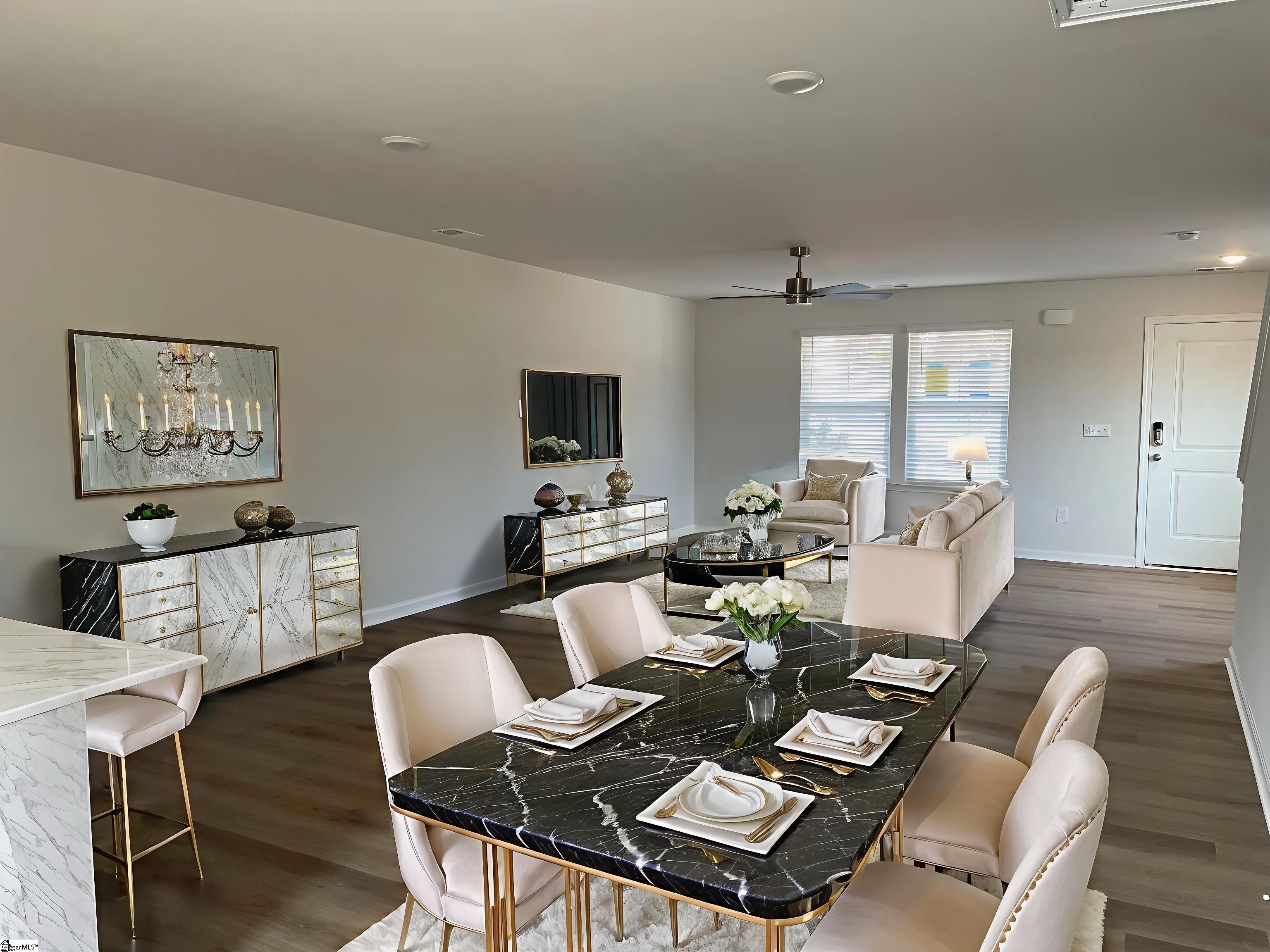 Welcome to Pinehaven - the perfect blend of comfort and convenience. Designed with an open concept floor plan, this home offers 3 spacious bedrooms and 2.5 baths and a fabulous front porch. The chef-inspired kitchen features quartz countertops, a center island and plenty of cabinet space. Easy to entertain in a space that flows seamlessly into the dining and living areas, highlighted by luxury plank flooring throughout the main level. Step outside to your rear patio, complete with side privacy fencing - perfect for summer grilling, morning coffee and relaxing evenings. Primary Suite offers dual vanities, glass shower and a walk in closet. Stone and vinyl exteriors for timeless curb appeal. Conveniently located off Main St and less than 2 miles to "The Square." Close to shopping, dining, schools and highways for easy commuting. Don't miss your opportunity to make this beautiful townhome yours. Call or text to schedule your tour today!