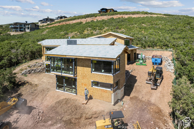 Sleek Modern Mountain Escape with Walls of Glass and Scenic Deer Valley Outlook from Golden Eagle. Host friends and family at a dinner table that looks out of floor to ceiling glass at the iconic resort views of Deer Valley from this brand new Golden Eagle home. Perched on a spacious 0.57 lot with almost all of the surrounding homes built near completion, your view corridors are clear and guaranteed from this stunning modern mountain home. Currently under construction, the residence is being crafted with an emphasis on sleek transitions, natural materials, and an abundance of glass that seamlessly blends indoor and outdoor living. Bask in sweeping Deer Valley views from a grand living room on the main level that features soaring ceilings and glass walls thoughtfully designed to capture the surrounding beauty. The home boasts four luxury bedrooms, each with en suite bathrooms offering comfort, privacy, and breathtaking vistas. The Main level primary combines a spacious bedroom with a built in fireplace, walk-in closet, and luxury bathroom with a free standing soaking tub. A state of the art kitchen includes top of the line luxury appliances and gorgeous slab counter tops. Oversized pantry and laundry rooms complete the easy of convenient living all on your main level. The lower level features two large bedrooms and a secondary living room with floor to ceiling glass out onto the patio. The top level offers a flexible private space with a fourth bedroom, office space, and additional large storage room. Multiple walkout patios extend the living space outdoors, perfect for entertaining or simply enjoying the serenity of the alpine landscape. Whether it's sunrise coffee on the upper terrace, or sunset gatherings around the fireplace on the expansive lower patio, this home invites you to immerse yourself in the serenity of mountain living from every angle.