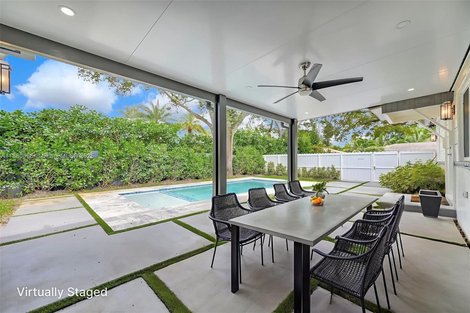 Nestled on one of Biscayne Parks most picturesque tree-lined streets, this newly remodeled home features new electrical, plumbing, septic, pool and a covered patio. This home offers 2,382 SF of refined living with soaring ceilings, abundant natural light, and a stunning open floor plan. The gourmet kitchen boasts endless custom cabinetry, quartz countertops, and premium stainless-steel appliances. Enjoy serene pool views. For Investors, Biscayne Park allows short-term rentals with proper licensing. Ideally located near Burke Recreation Center, MOCA, local shops, Whole Foods, and just minutes from Surfside Beach, Wynwood, and Brickell.