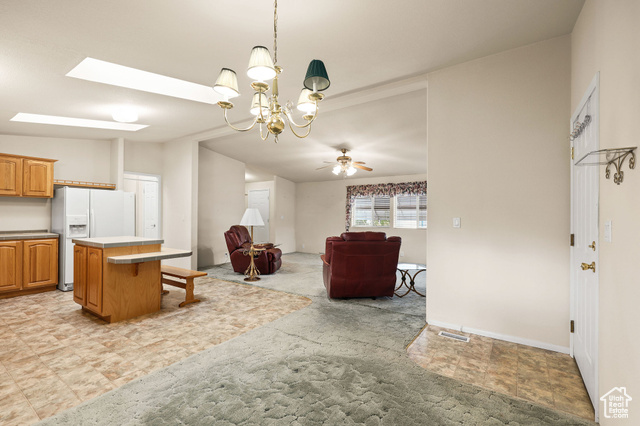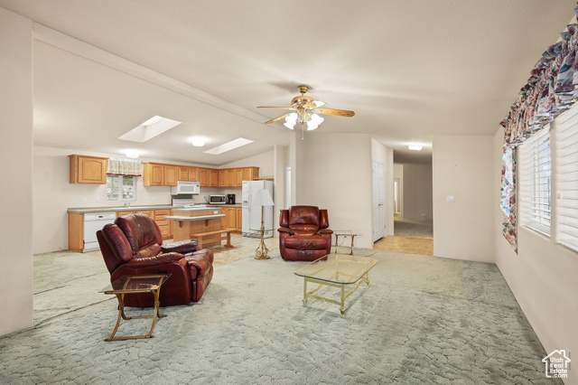 Welcome to this beautifully maintained 2001 manufactured home offering 1,800 sq. ft. of single-level living in the desirable Westwood Village community. Inside, you'll find a bright, open floor plan with skylights, and a large living area perfect for relaxing or entertaining. The kitchen features ample cabinet space, an island with breakfast seating, and all appliances included. A cozy fireplace adds warmth and charm to the main gathering space.