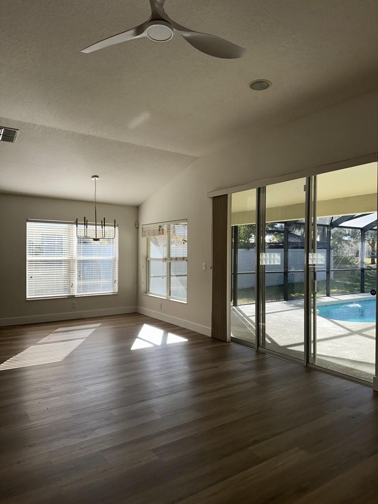 Beautiful single-story home built in 2008 featuring a desirable split-bedroom floor plan. This screened pool home includes pool service, making outdoor living effortless. The spacious layout offers both a living room and family room with vaulted ceilings, along with a dedicated dining area ideal for entertaining. The luxury kitchen is equipped with stainless steel appliances, granite countertops, and a tile backsplash, providing both style and functionality. An inside laundry room includes a washer and dryer for added convenience. The primary suite is a private retreat featuring a custom walk-in closet, dual vanities, a garden tub, and a separate shower stall. Pets may be considered with owner approval. All Advantage Realty Services residents are enrolled in the Resident Benefit Package (RBP) for $40.95/month which includes renters' insurance, HVAC air filter delivery (for applicable properties), credit building to help boost your credit score with timely rent payments, $1M Identity Protection, move-in concierge service making utility connection and home service setup a breeze during move-in, our best-in-class resident rewards program, and much more! More details upon application.