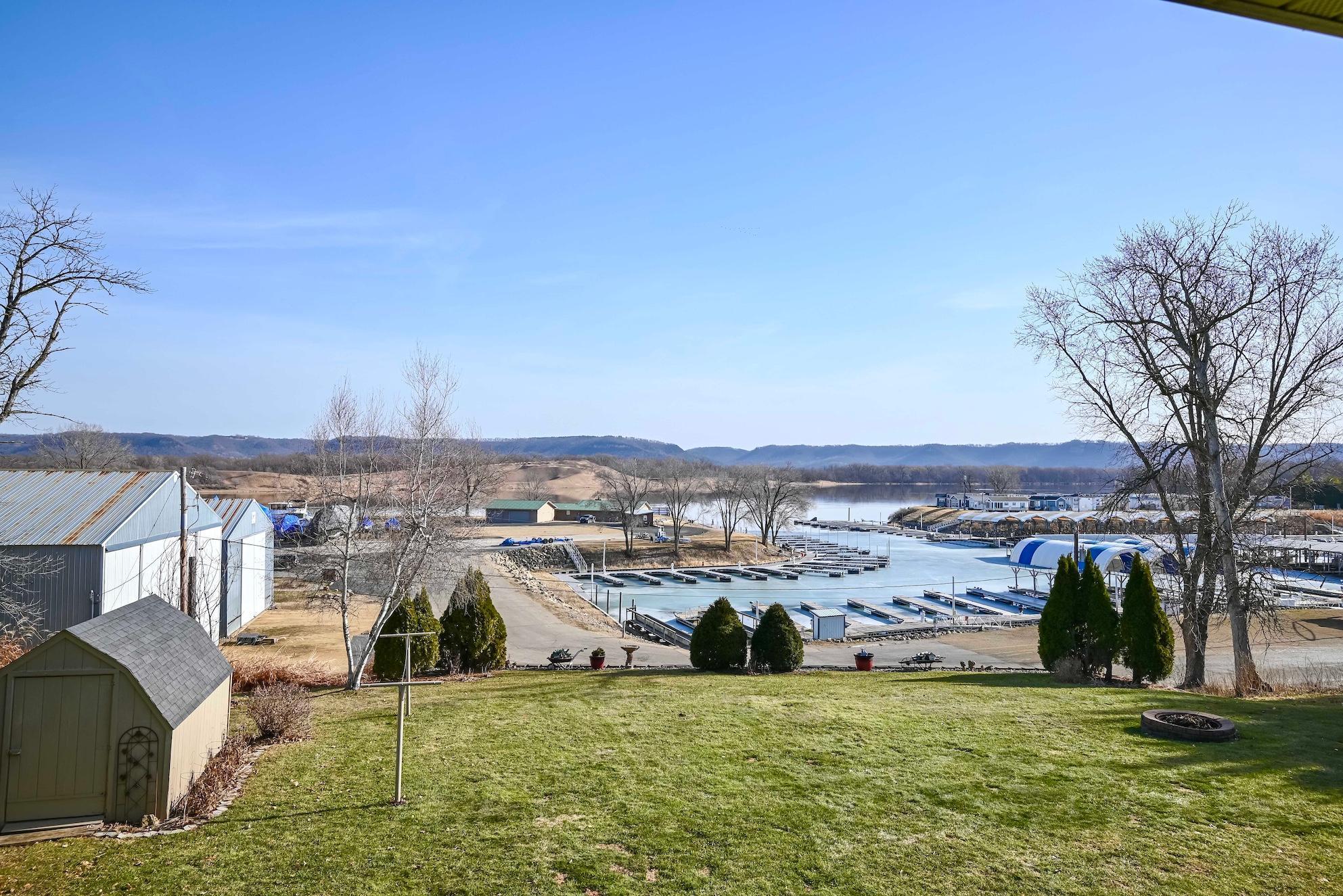 Enjoy stunning views of the Mississippi River from this exceptionally clean and move-in ready home featuring over 3,200 square feet of living space, 4 bedrooms, and 3 bathrooms. Relax on the spacious deck overlooking the river and the local marina, offering the perfect setting for morning coffee or evening sunsets.Inside, the home offers both formal and informal dining rooms, a charming sunken living room, and a large family room with a cozy gas fireplace ideal for entertaining or relaxing with family. The kitchen and living spaces flow comfortably throughout the home, creating a warm and inviting atmosphere.Three bedrooms are conveniently located on one level, including a primary suite with a walk-in closet, additional closet space, and a private bathroom. The home also features a spacious utility room with abundant storage to keep everything organized.Additional highlights include a finished garage, a large yard overlooking the river, and a nice storage shed for extra space. With numerous recent updates and meticulous care throughout. this property offers comfort, space, and breathtaking river views all in one exceptional home.
