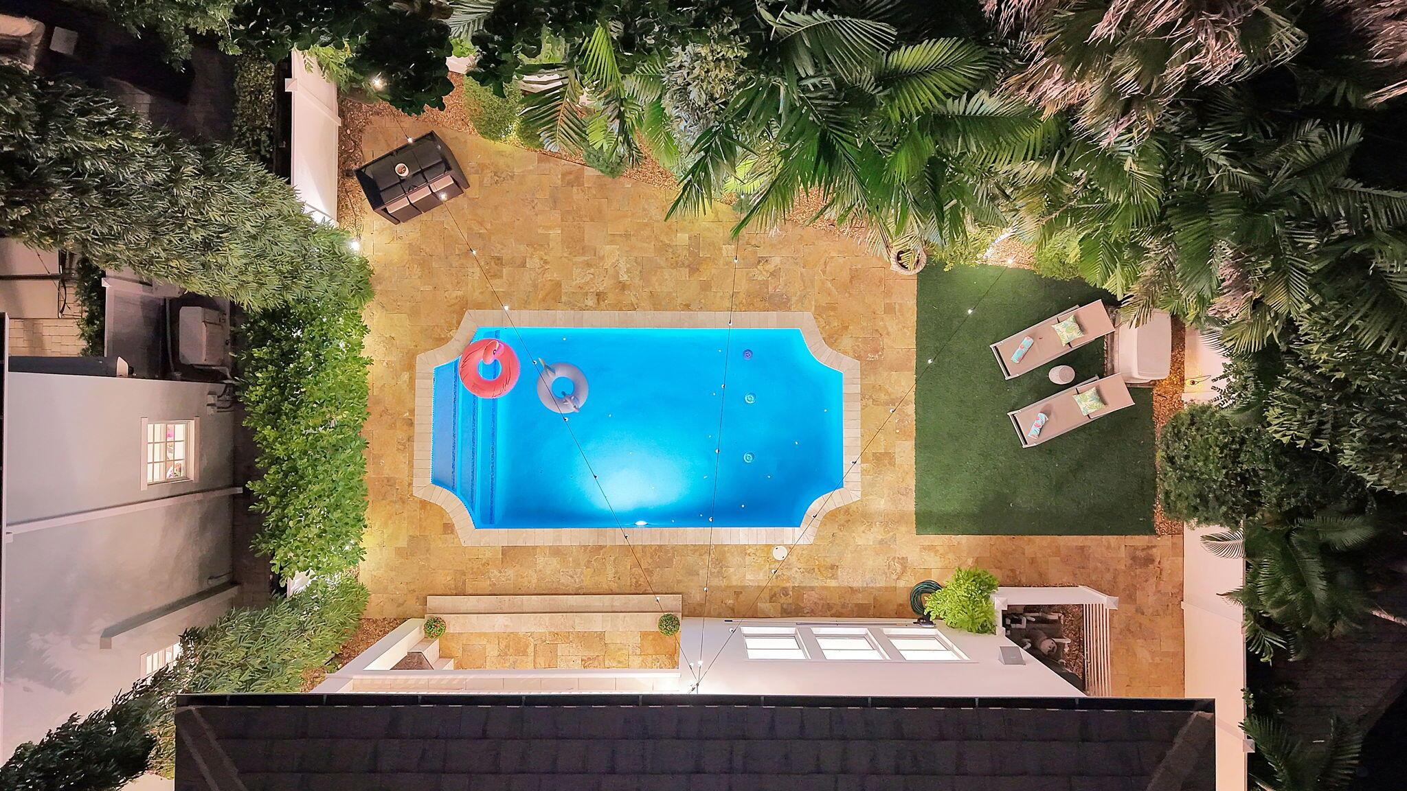 Elevated living in coveted Rio Vista awaits! Gorgeous 5 bedroom 4.5 bath offers elegant charm and luxurious living. Think sunlit living room/dining flowing into an open luxurious chef's kitchen and second living area. Kitchen features upgrades galore including quartz counters, gas stove, high-end appliances, Kitchen nook with views of the pool. 1st floor Bedroom/Flex Space, laundry and half bath. 2nd floor Ultra Private Primary suite with ensuite bath featuring soaking tub, separate shower, water closet, balcony overlooking pool. Additional 3 bedrooms each with ensuite baths. The fenced backyard with pool, bbq, covered patio. Turf front/backyard, generator, impact windows, 2 car garage. Make this Rio Vista charmer with designer touches your new home.