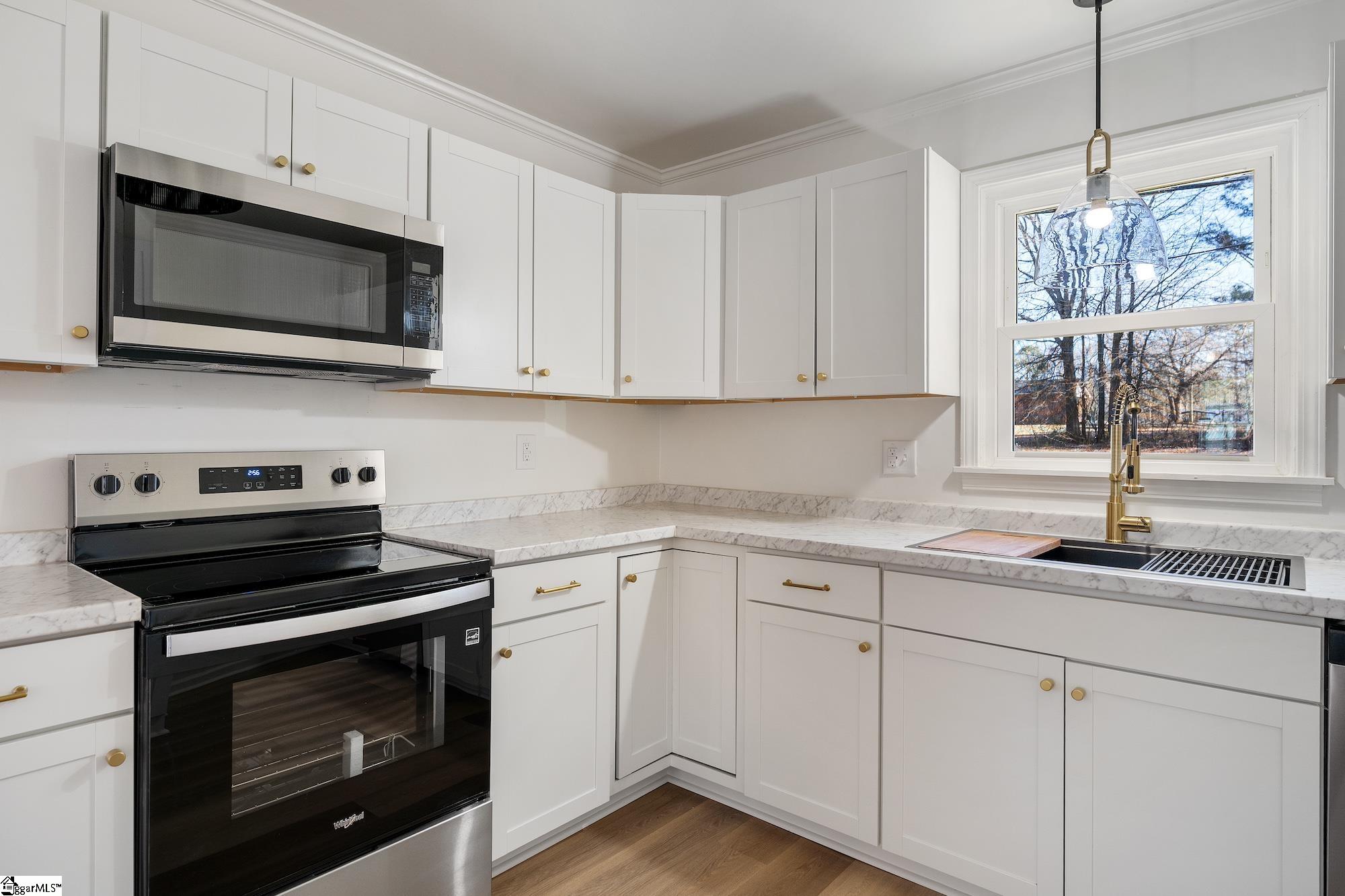 Welcome home to this beautifully updated brick ranch, tucked away on a quiet street in Belton. Completely move-in ready, this home has been thoughtfully renovated from top to bottom. Major updates include a new roof, windows, HVAC system, hot water heater, doors, flooring, and fresh paint throughout. The fully remodeled kitchen features brand-new cabinetry and stainless steel appliances, while the all-new bathroom offers a double vanity with dual sinks, modern plumbing fixtures, and updated finishes. Additional improvements include new lighting throughout, a new driveway, new shutters, and fresh landscaping. This turnkey property offers peace of mind and modern comfortjust unpack and enjoy.