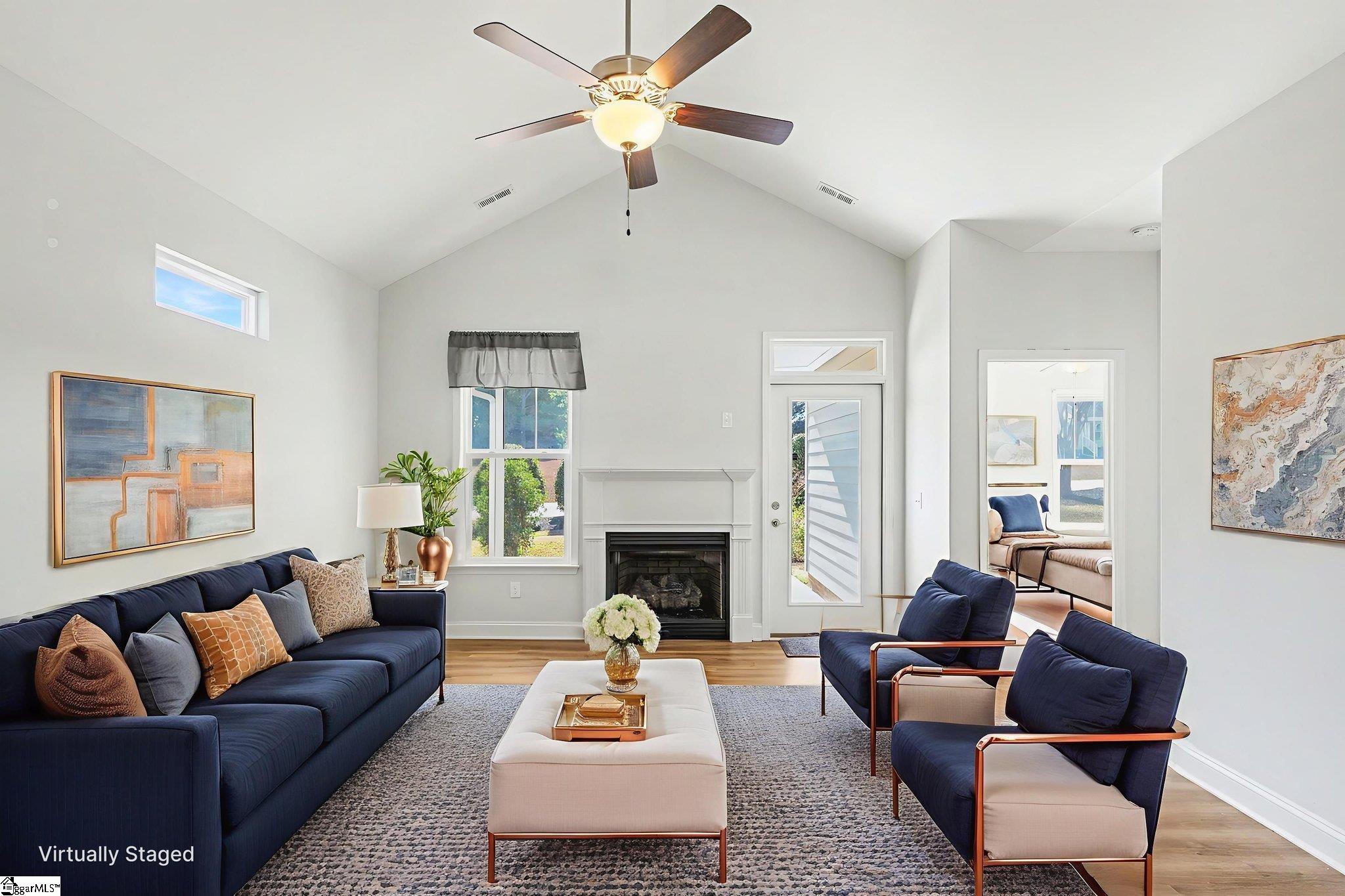 Welcome to this charming 3 bedroom, 2 bathroom one-level home located in the highly sought-after Seven Oaks at Blue Ridge Plantation neighborhood. Step inside to an inviting open floor plan filled with natural light, featuring vaulted ceilings in the living room and a cozy gas-log fireplace perfect for relaxing evenings at home. This home has plenty of closet space throughout, providing both comfort and functionality. Step outside and enjoy the large covered patio, ideal for morning coffee, weekend grilling, or simply unwinding in a peaceful setting. Situated in the heart of Taylors, this home delivers unbeatable convenience just minutes from Wade Hampton Boulevard for shopping and dining, and only a short drive to the scenic Lake Robinson for recreation and relaxation. A perfect blend of comfort, location, and lifestyle this home is ready to welcome its next owner.