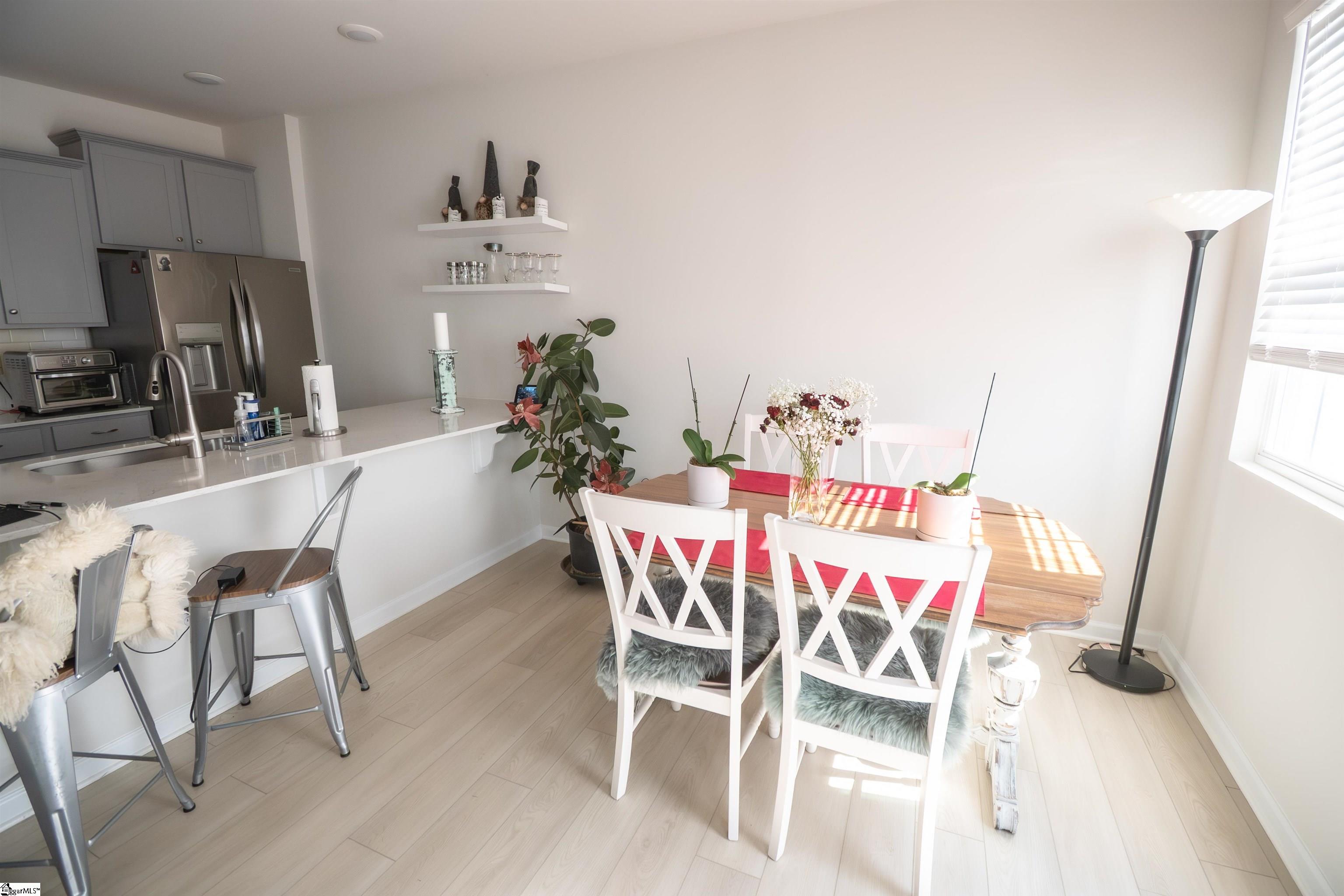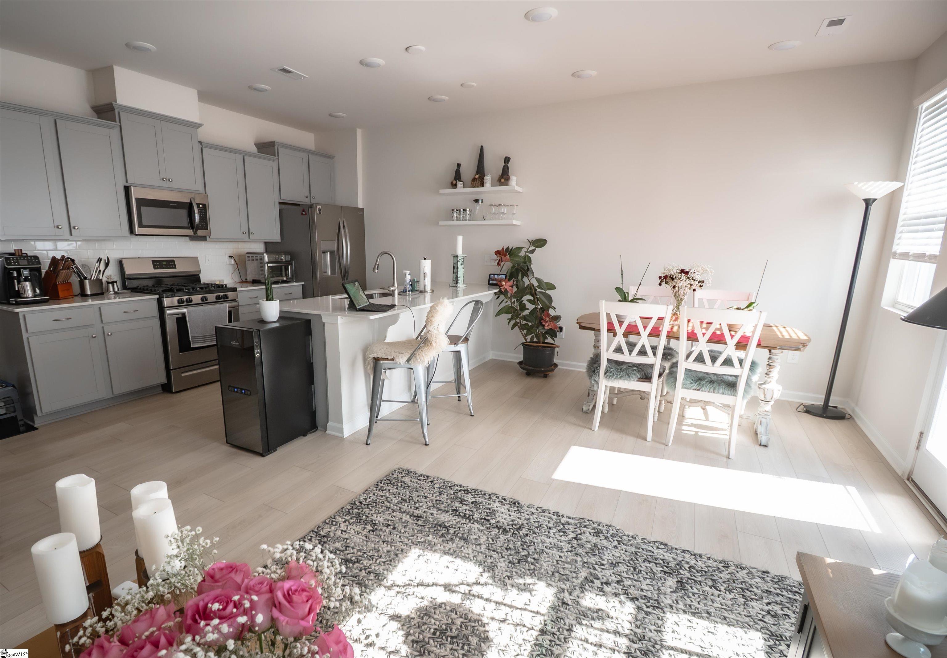 Available now, this nearly new 3-bedroom, 2.5-bath modern townhome offers space, style, and an unbeatable location in beautiful Travelers Rest. The home features open-concept living with bright, airy spaces. The living room flows seamlessly into the kitchen, which includes stainless steel appliances, gas cooking, and a dining area overlooking the backyard. The backyard is fully enclosed with a low-maintenance white fence and includes a gate that opens to a large green space. Upstairs, the owners suite provides a comfortable retreat with a spacious walk-in closet. Two additional bedrooms offer flexibility for guests, a home office, or whatever suits your needs. A one-car garage adds convenience, and the home is designed for low-maintenance living. The Homeowners Association (HOA) covers exterior maintenance, lawn care, and common areas, including a gated dog park. Located in a quiet, active community popular with cyclists and outdoor enthusiasts, the home is just a short walk to the Swamp Rabbit Trail and Trailblazer Park, and close to the Travelers Rest Farmers Market (seasonal). Main Street Travelers Restwith its restaurants, coffee shops, and local retailis just minutes away, and downtown Greenville is an easy 1520 minute drive. Approximate minutes for each as follows: 5 minute walk Trailblazer Park 7 minute walk to Farmers Market 7 minute walk to Outdoor Amphitheater 10 minute walk to Swamp Rabbit Trail 12 minute walk to Main Street for restaurant and shops This is a rare opportunity to own a nearly new home in one of Travelers Rests most desirable and active locations. Furniture is negotiable.
