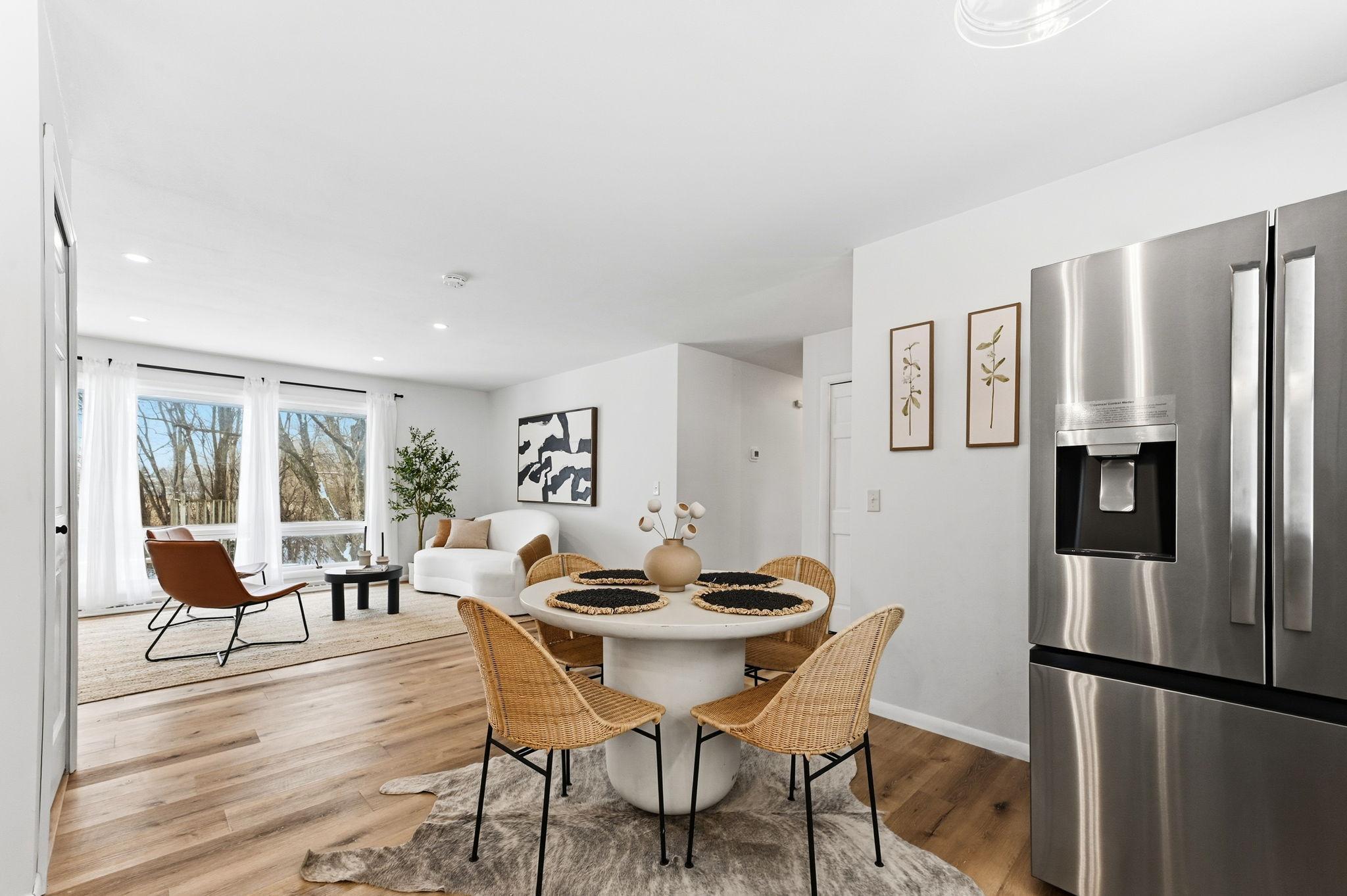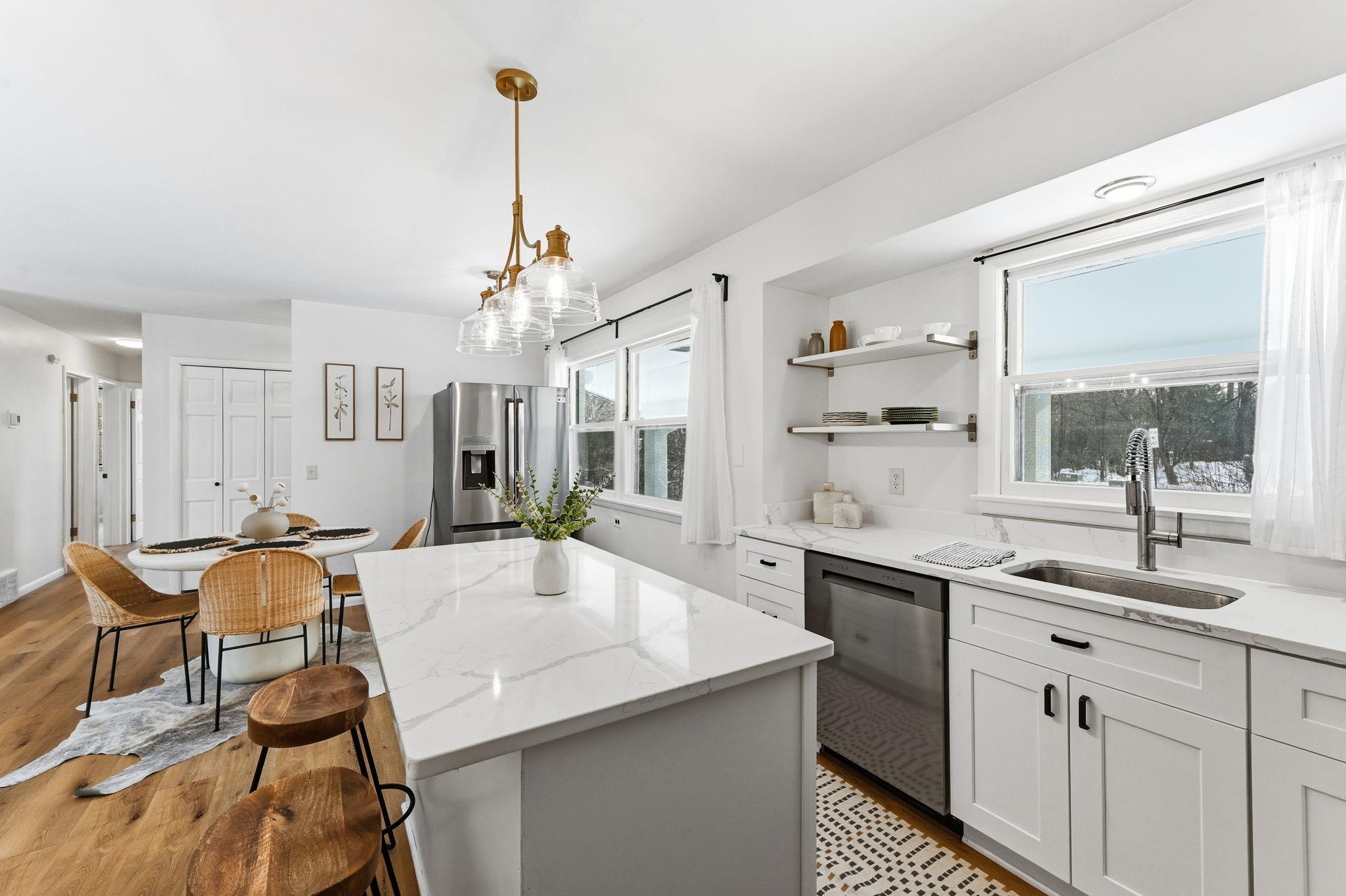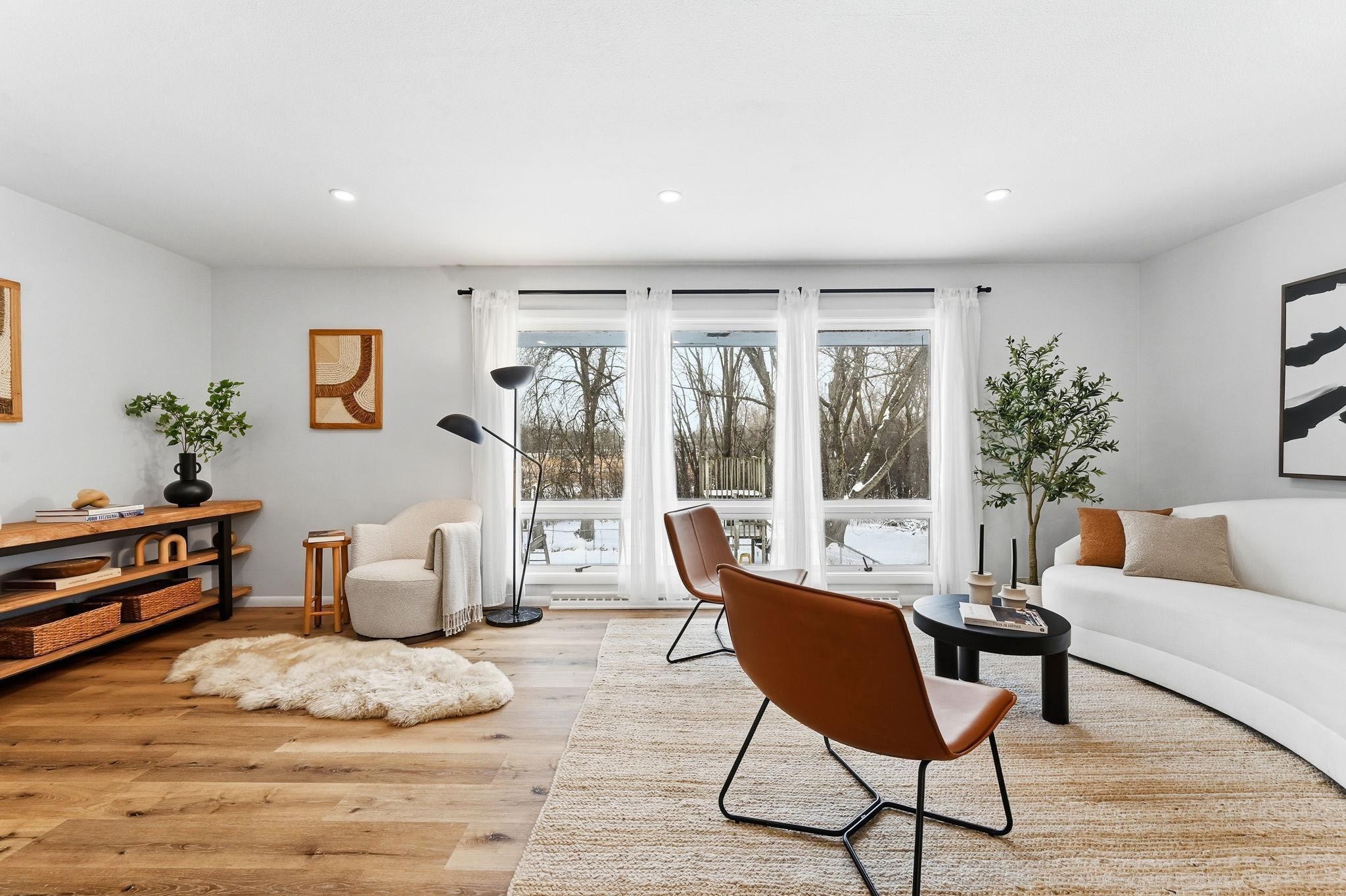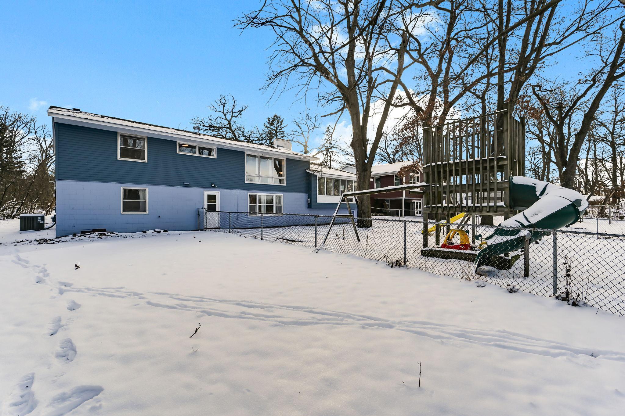 Beautifully remodeled, single-level living with abundant natural light throughout! Enjoy serene wildlife views right from the backyard. The fully renovated kitchen shows an open-concept layout with new cabinetry, quartz countertops, center island with breakfast bar seating, and brand-new stainless steel appliances. The main level offers three bedrooms, complemented by two additional bedrooms on the lower level. Two newly remodeled bathrooms, new washer and dryer, and a spacious lower-level family room perfect for entertaining or home office. The upper-level includes a charming three-season porch, ideal for a playroom, gym, or relaxation space. Additional updates include new siding, new electrical panel, new paint and new flooring throughout. The fenced backyard adds privacy and convenience. Within walk distance to Big Willow Community Preserve and Athletic Complex with access to trails, basketball courts, baseball fields, and soccer fields. Oak Ridge Country Club is just around the corner, and youre only minutes from Country Village Shopping Center. Move-in readya perfect blend of comfort, style, and nature.