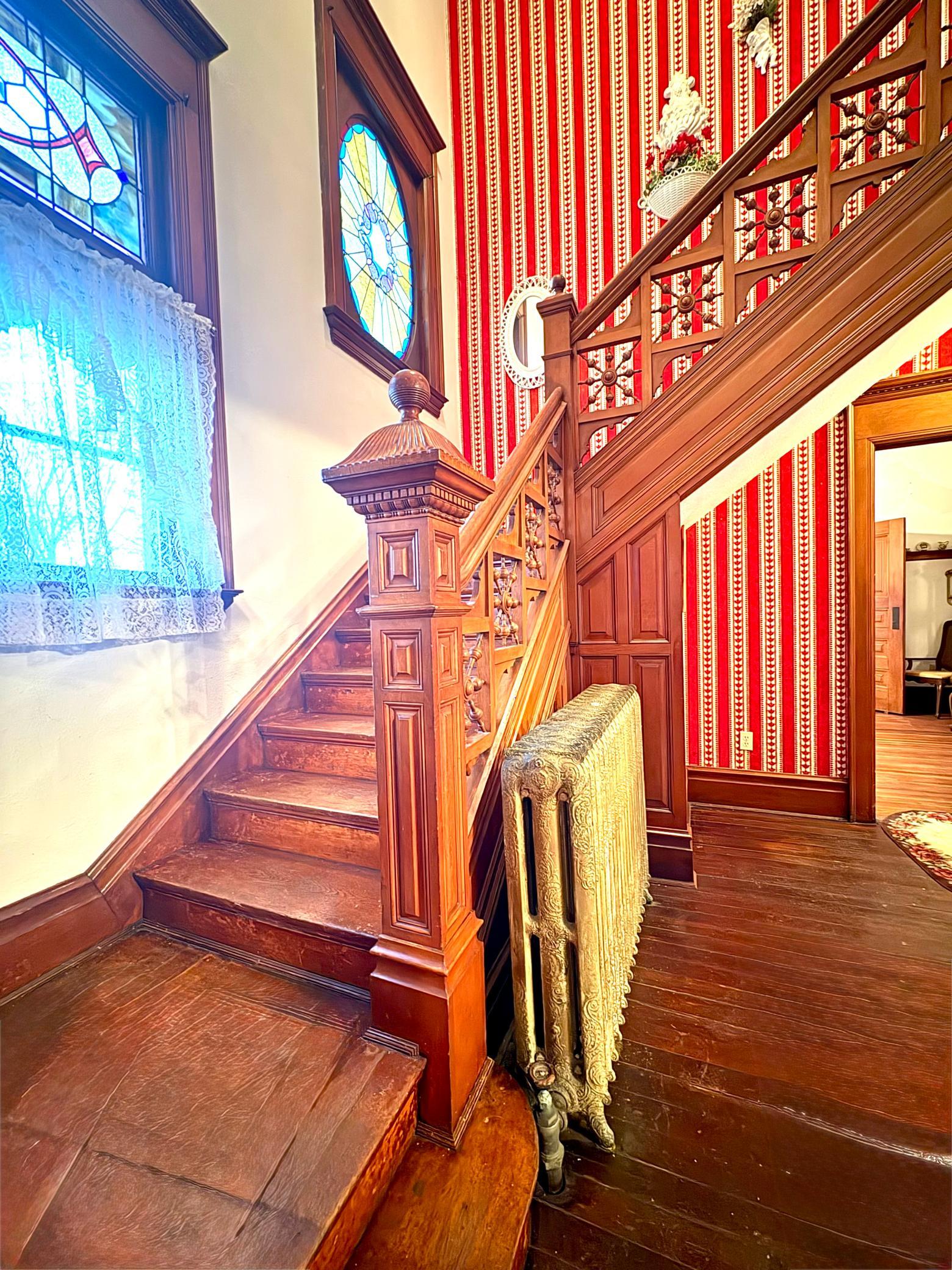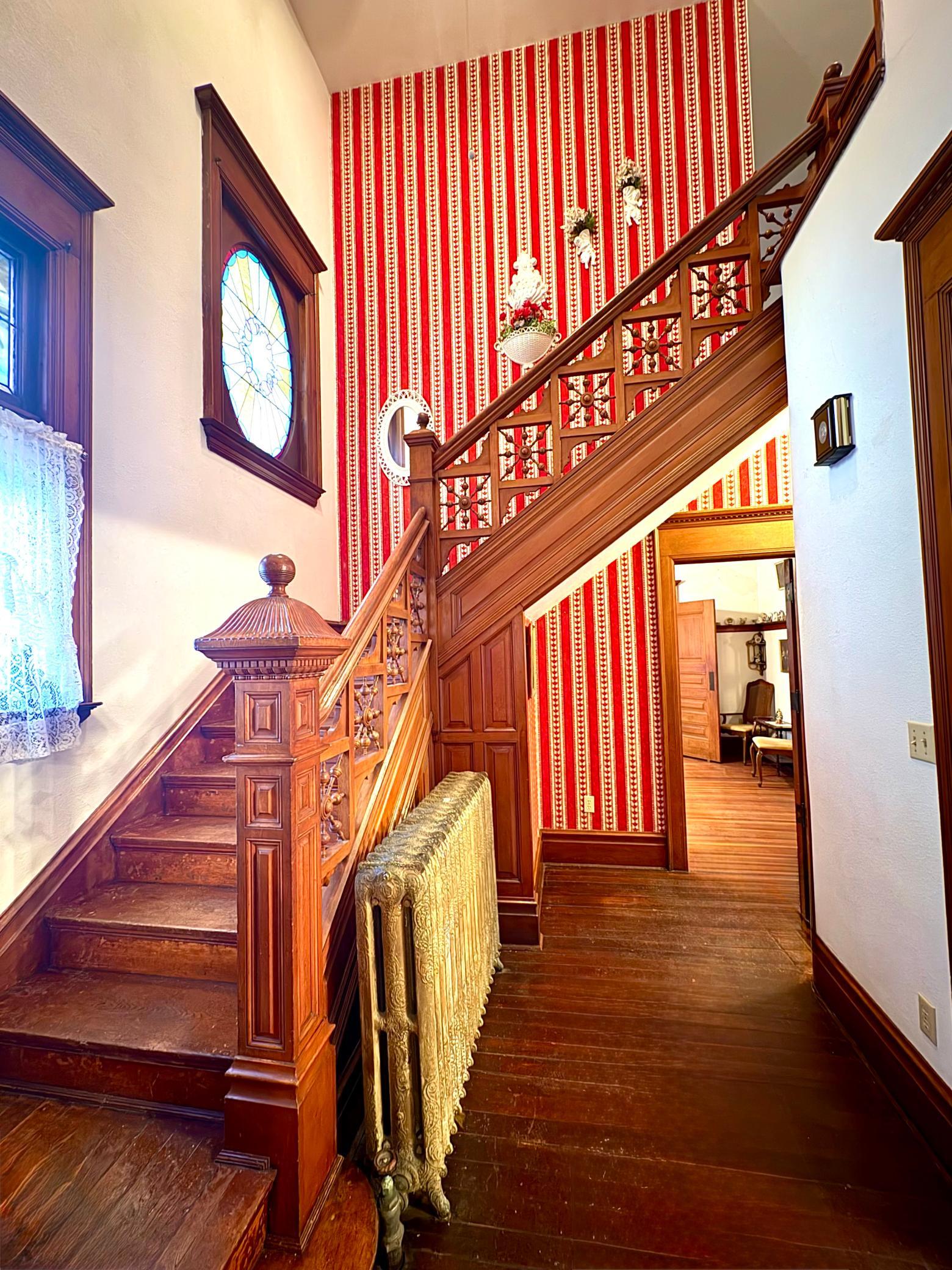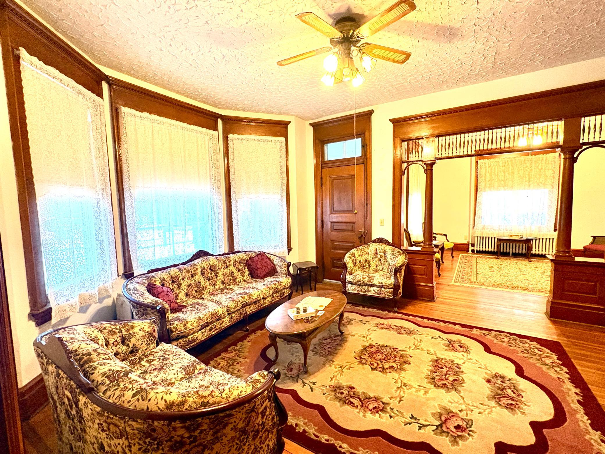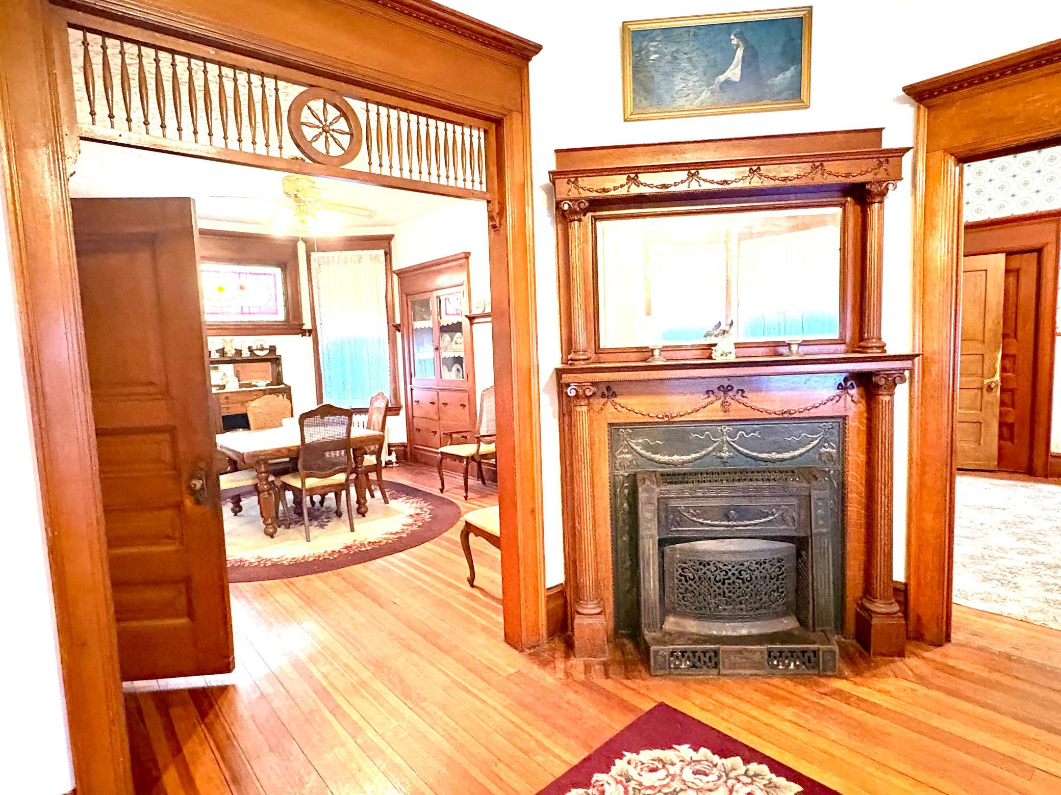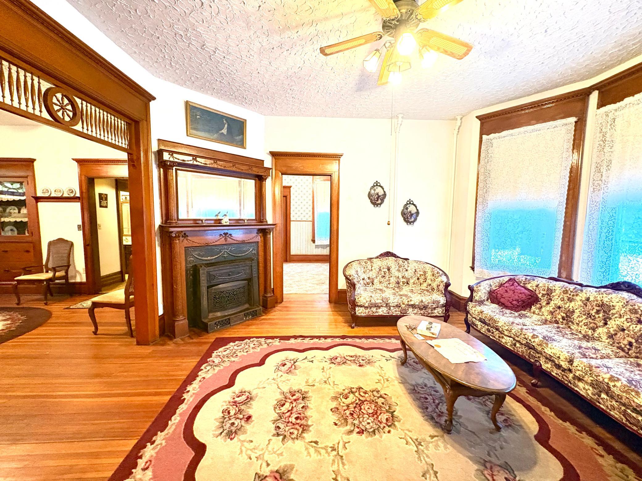Step into timeless elegance with this stunning two-story home built in the 1890s, where historic charm and architectural craftsmanship shine at every turn. Boasting 6 spacious bedrooms and 2 bathrooms, this remarkable turn-of-the-century residence was previously operated as a bed and breakfast and offers endless possibilities for its next chapter.From the moment you enter, youll be captivated by the breathtaking 20-foot open staircase and soaring 10-foot ceilings that carry throughout the entire home. A second staircase adds both convenience and character. The original woodwork is truly extraordinaryrich, intricate, and unlike anything youve seen before. Every detail has been lovingly preserved, showcasing the unmatched craftsmanship of the era.The home features a beautiful wrap-around porch perfect for relaxing afternoons, along with a separate entry porch that adds to its grand curb appeal. Exterior corbals and detailed trim work remain original to the 1890s and are simply stunning. With the right paint colors to highlight its historic features, the exterior would absolutely shine.Inside, youll find a formal dining room, an original wood-burning fireplace, and stained-glass windows adorned with distinctive round glass accents throughout the home. The spacious primary bedroom includes a charming attached nursery or sitting room, offering a private retreat.A full, open attic provides incredible potential to finish and customize to your needswhether additional living space, studio, or guest quarters. The attached garage connects directly through a convenient entryway for everyday ease.This is a rare opportunity to own a true historic gem with unmatched character, craftsmanship, and potential. A must-see home filled with history, warmth, and endless possibilities.