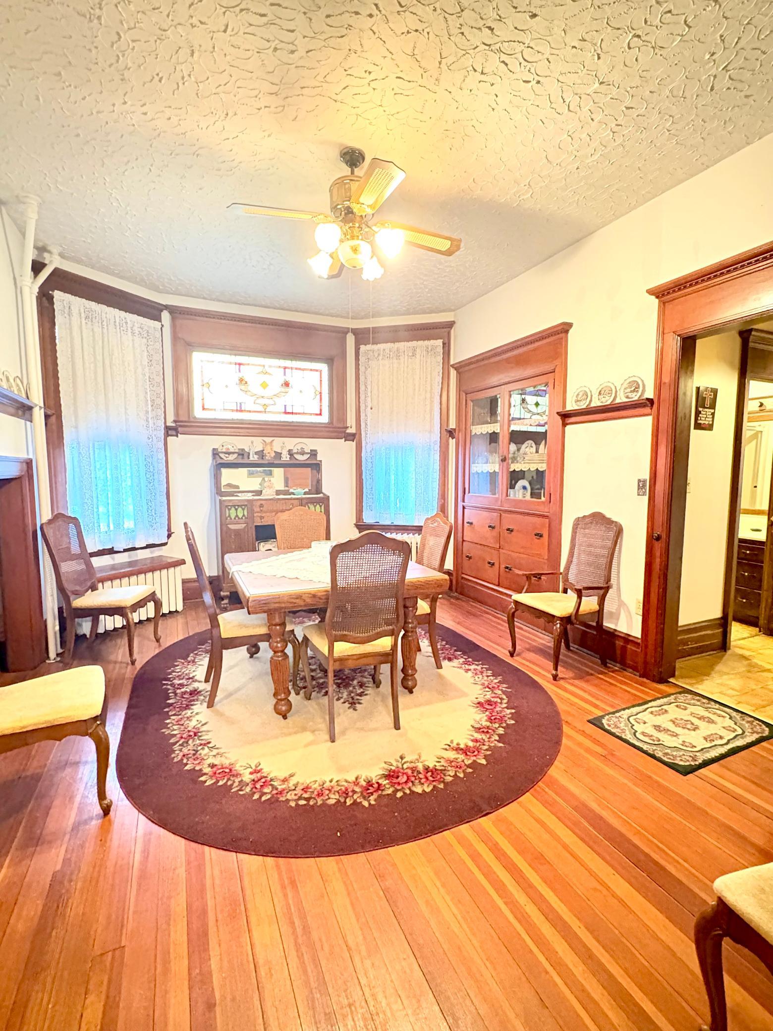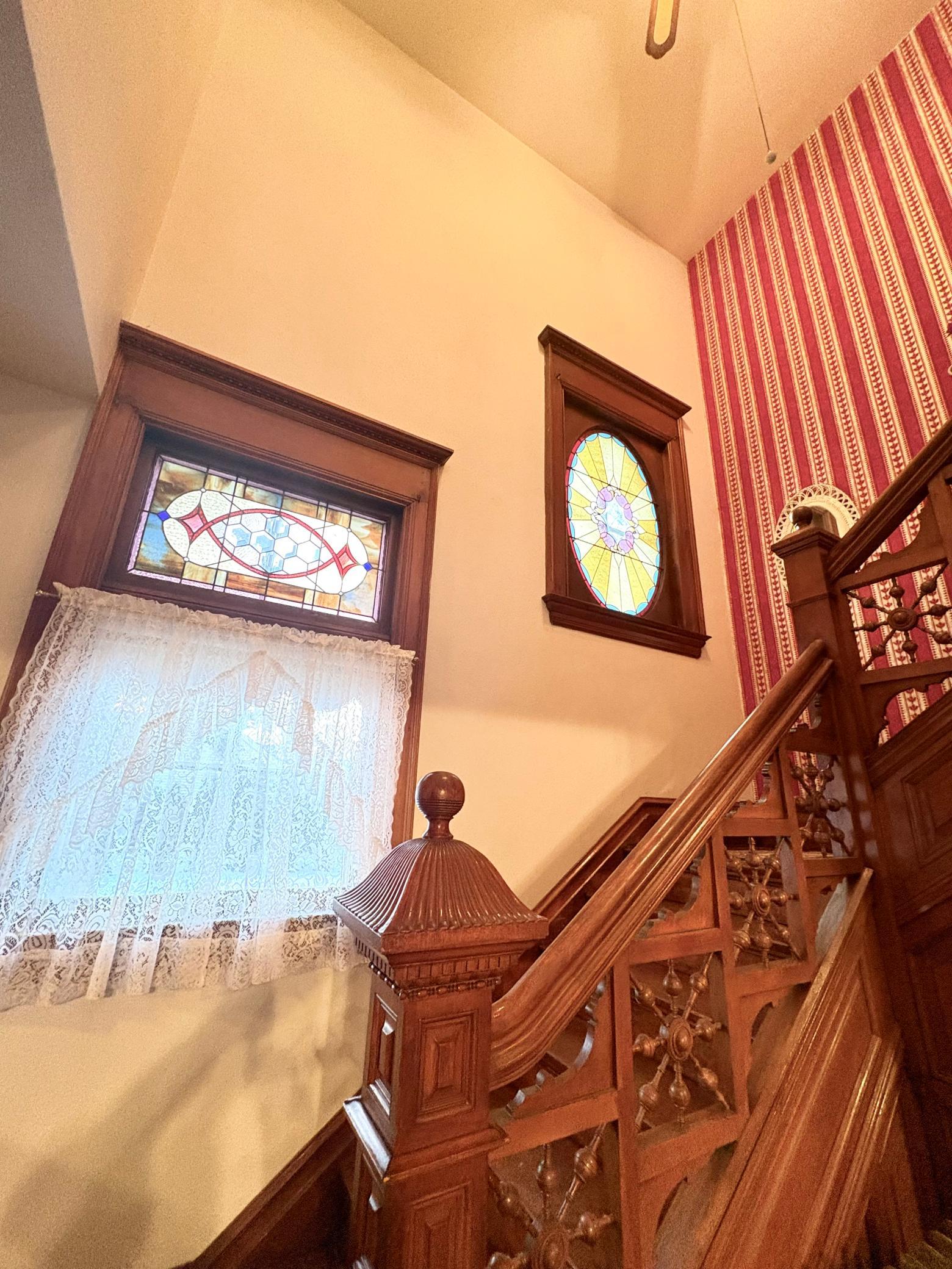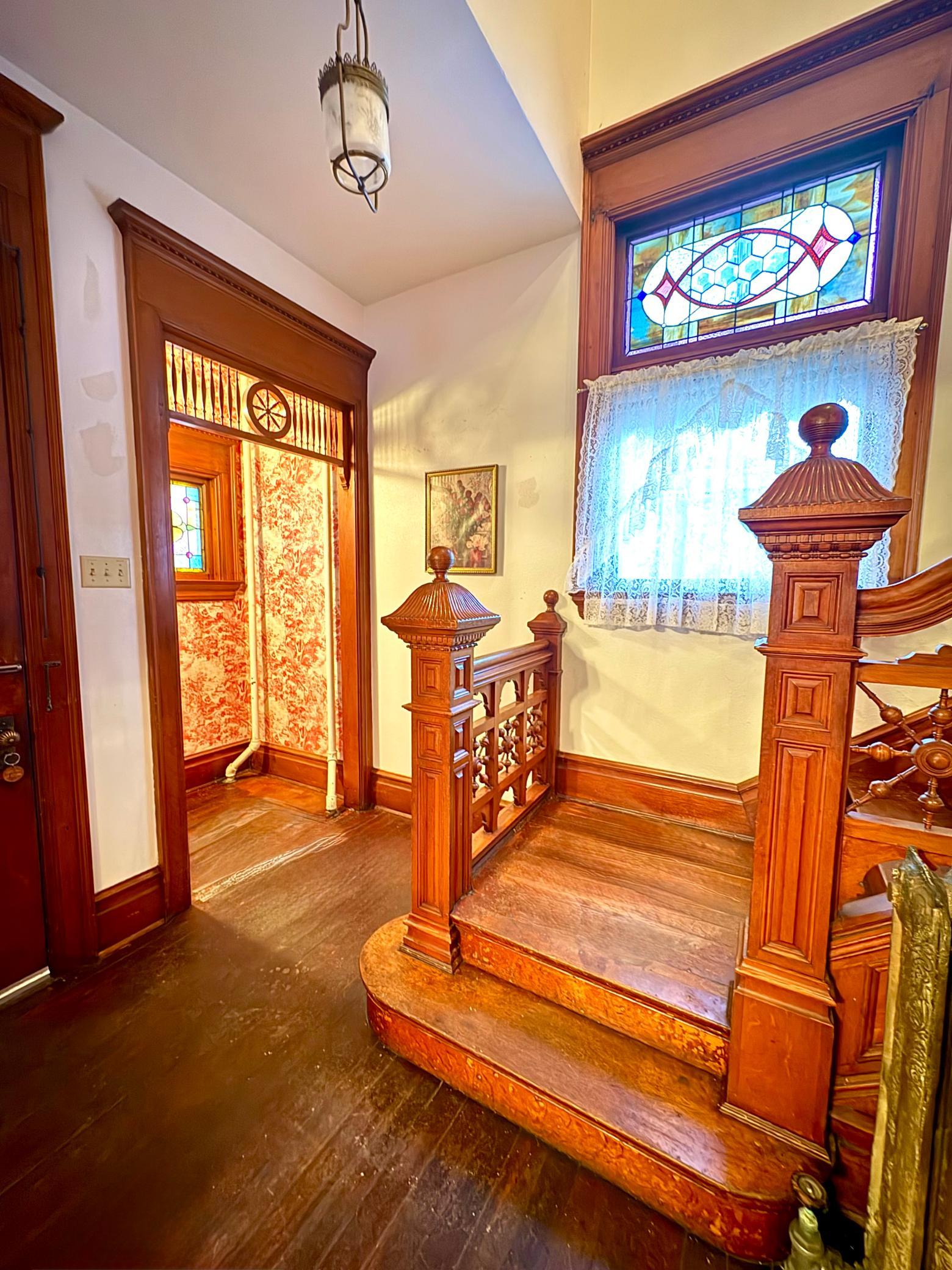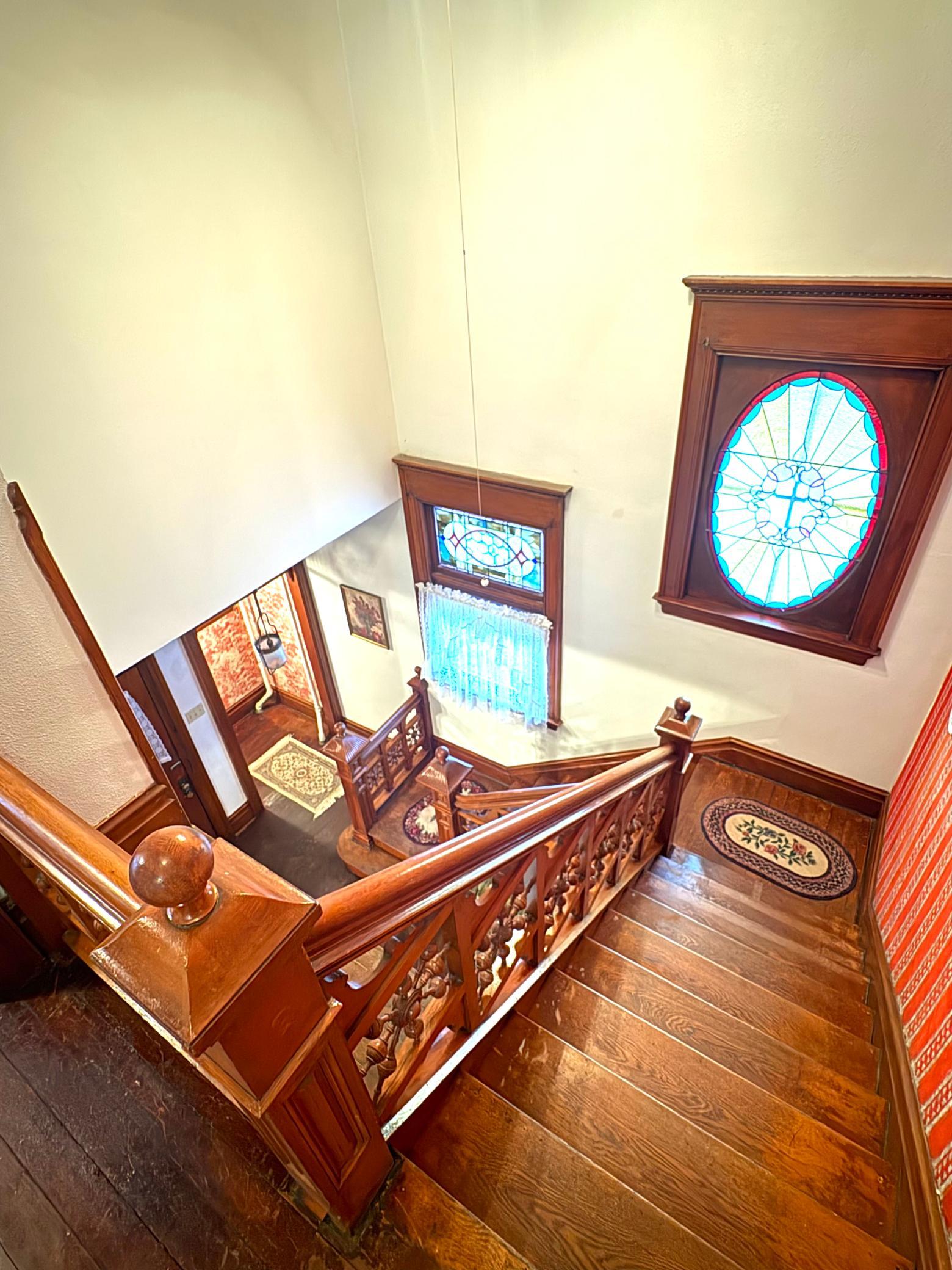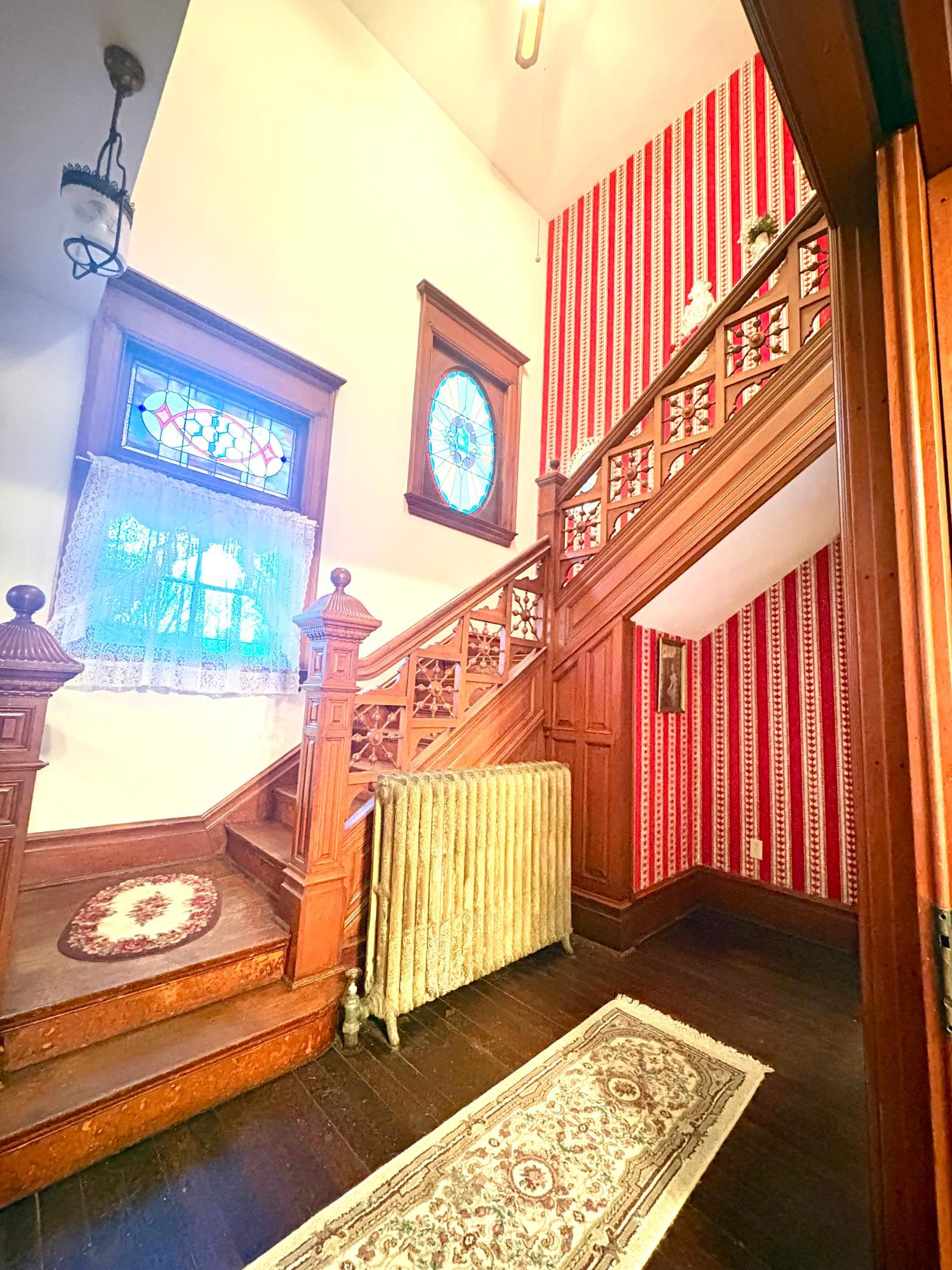 Step into timeless elegance with this stunning two-story home built in the 1890s, where historic charm and architectural craftsmanship shine at every turn. Boasting 6 spacious bedrooms and 2 bathrooms, this remarkable turn-of-the-century residence was previously operated as a bed and breakfast and offers endless possibilities for its next chapter.From the moment you enter, youll be captivated by the breathtaking 20-foot open staircase and soaring 10-foot ceilings that carry throughout the entire home. A second staircase adds both convenience and character. The original woodwork is truly extraordinaryrich, intricate, and unlike anything youve seen before. Every detail has been lovingly preserved, showcasing the unmatched craftsmanship of the era.The home features a beautiful wrap-around porch perfect for relaxing afternoons, along with a separate entry porch that adds to its grand curb appeal. Exterior corbals and detailed trim work remain original to the 1890s and are simply stunning. With the right paint colors to highlight its historic features, the exterior would absolutely shine.Inside, youll find a formal dining room, an original wood-burning fireplace, and stained-glass windows adorned with distinctive round glass accents throughout the home. The spacious primary bedroom includes a charming attached nursery or sitting room, offering a private retreat.A full, open attic provides incredible potential to finish and customize to your needswhether additional living space, studio, or guest quarters. The attached garage connects directly through a convenient entryway for everyday ease.This is a rare opportunity to own a true historic gem with unmatched character, craftsmanship, and potential. A must-see home filled with history, warmth, and endless possibilities.