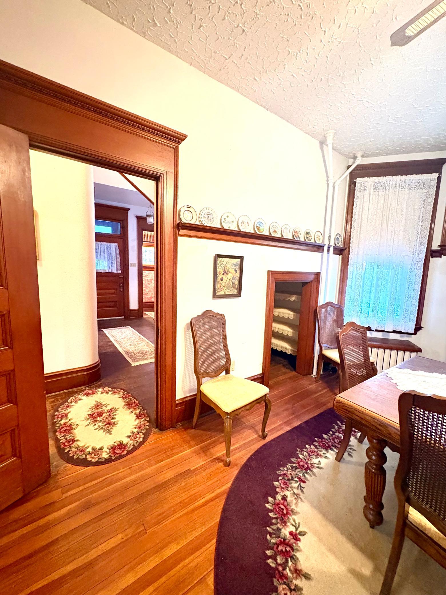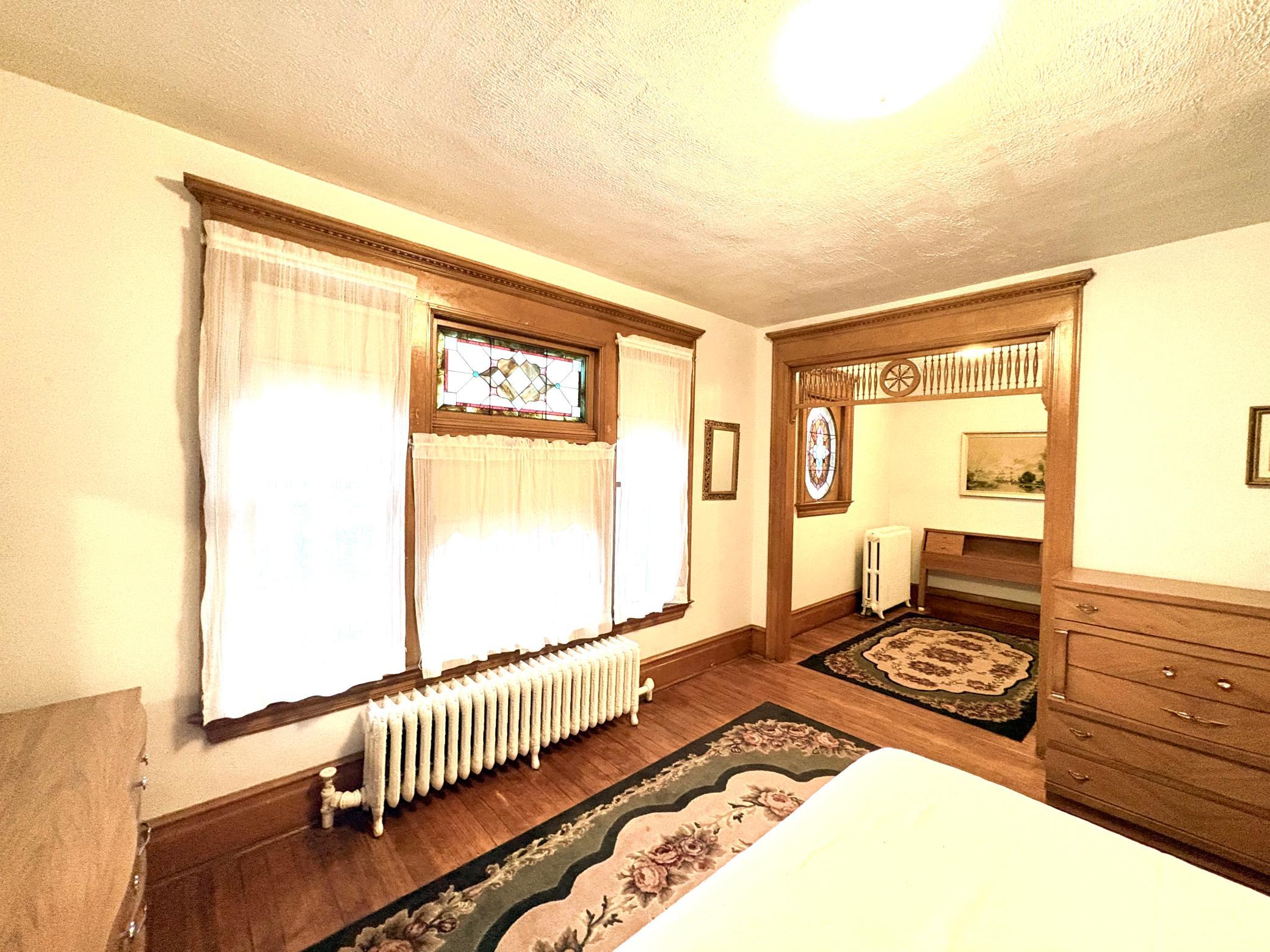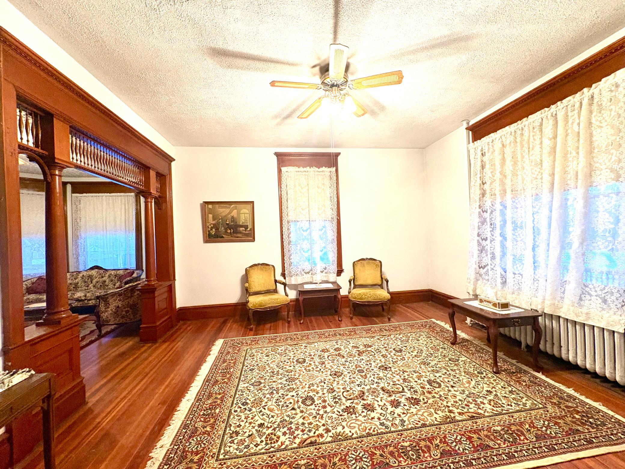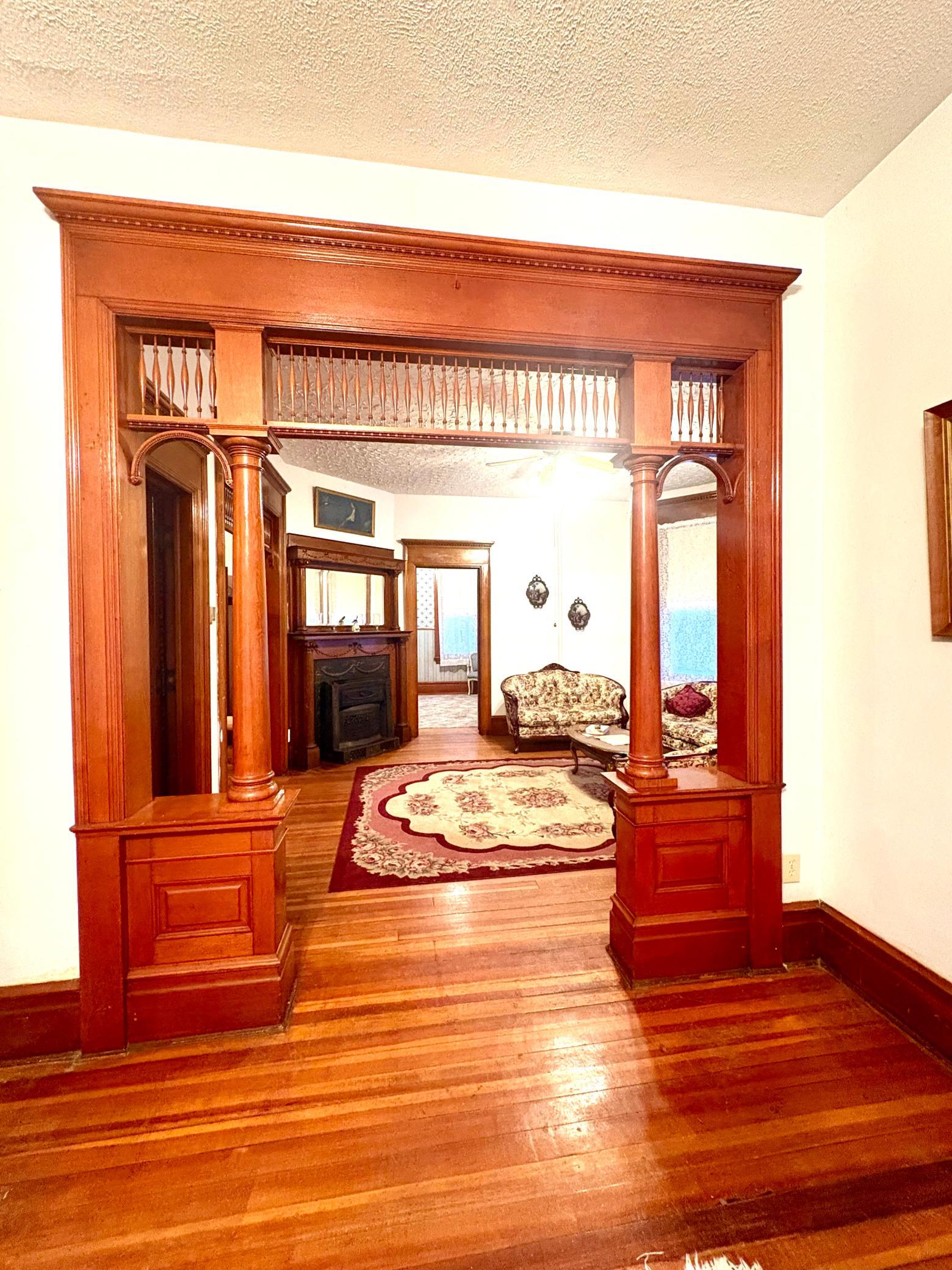 Step into timeless elegance with this stunning two-story home built in the 1890s, where historic charm and architectural craftsmanship shine at every turn. Boasting 6 spacious bedrooms and 2 bathrooms, this remarkable turn-of-the-century residence was previously operated as a bed and breakfast and offers endless possibilities for its next chapter.From the moment you enter, youll be captivated by the breathtaking 20-foot open staircase and soaring 10-foot ceilings that carry throughout the entire home. A second staircase adds both convenience and character. The original woodwork is truly extraordinaryrich, intricate, and unlike anything youve seen before. Every detail has been lovingly preserved, showcasing the unmatched craftsmanship of the era.The home features a beautiful wrap-around porch perfect for relaxing afternoons, along with a separate entry porch that adds to its grand curb appeal. Exterior corbals and detailed trim work remain original to the 1890s and are simply stunning. With the right paint colors to highlight its historic features, the exterior would absolutely shine.Inside, youll find a formal dining room, an original wood-burning fireplace, and stained-glass windows adorned with distinctive round glass accents throughout the home. The spacious primary bedroom includes a charming attached nursery or sitting room, offering a private retreat.A full, open attic provides incredible potential to finish and customize to your needswhether additional living space, studio, or guest quarters. The attached garage connects directly through a convenient entryway for everyday ease.This is a rare opportunity to own a true historic gem with unmatched character, craftsmanship, and potential. A must-see home filled with history, warmth, and endless possibilities.