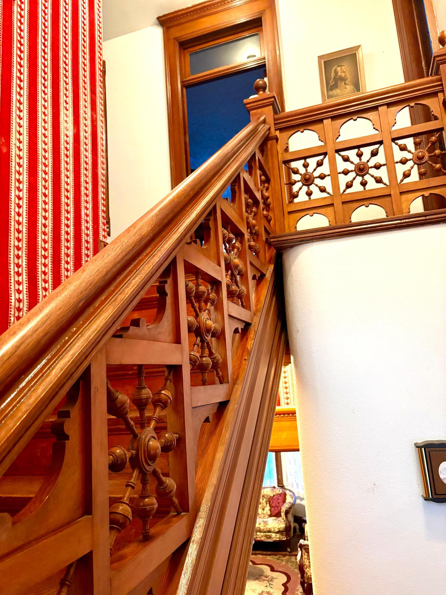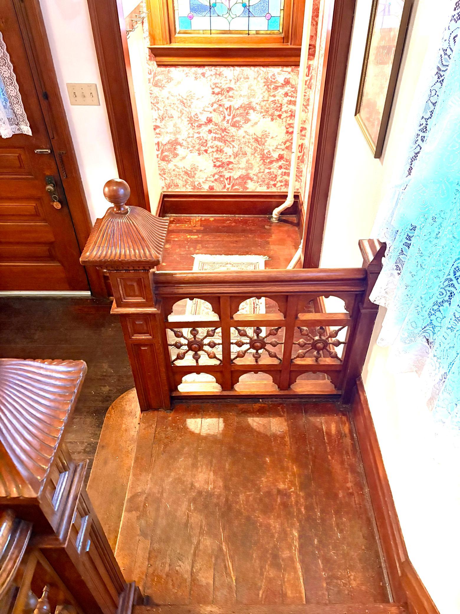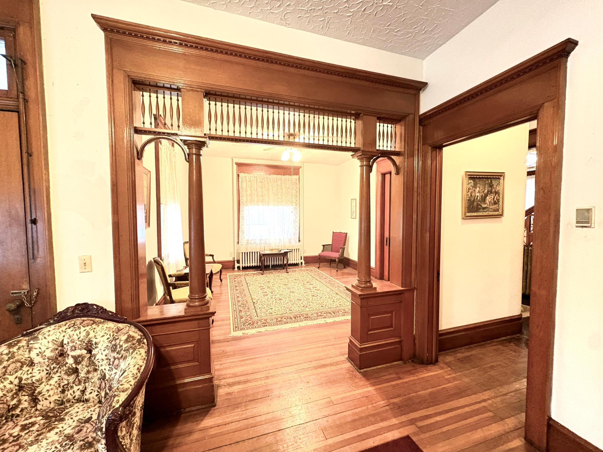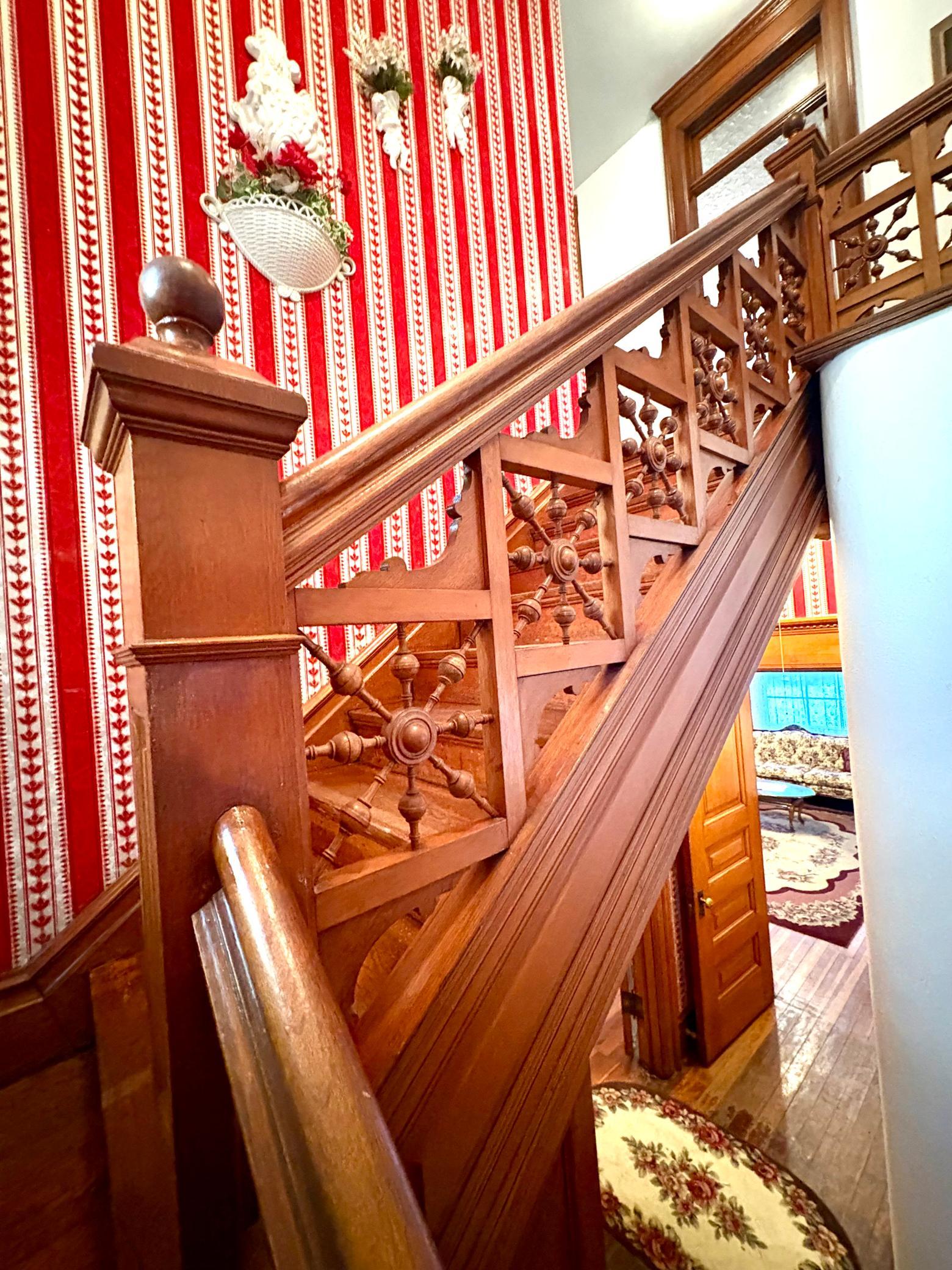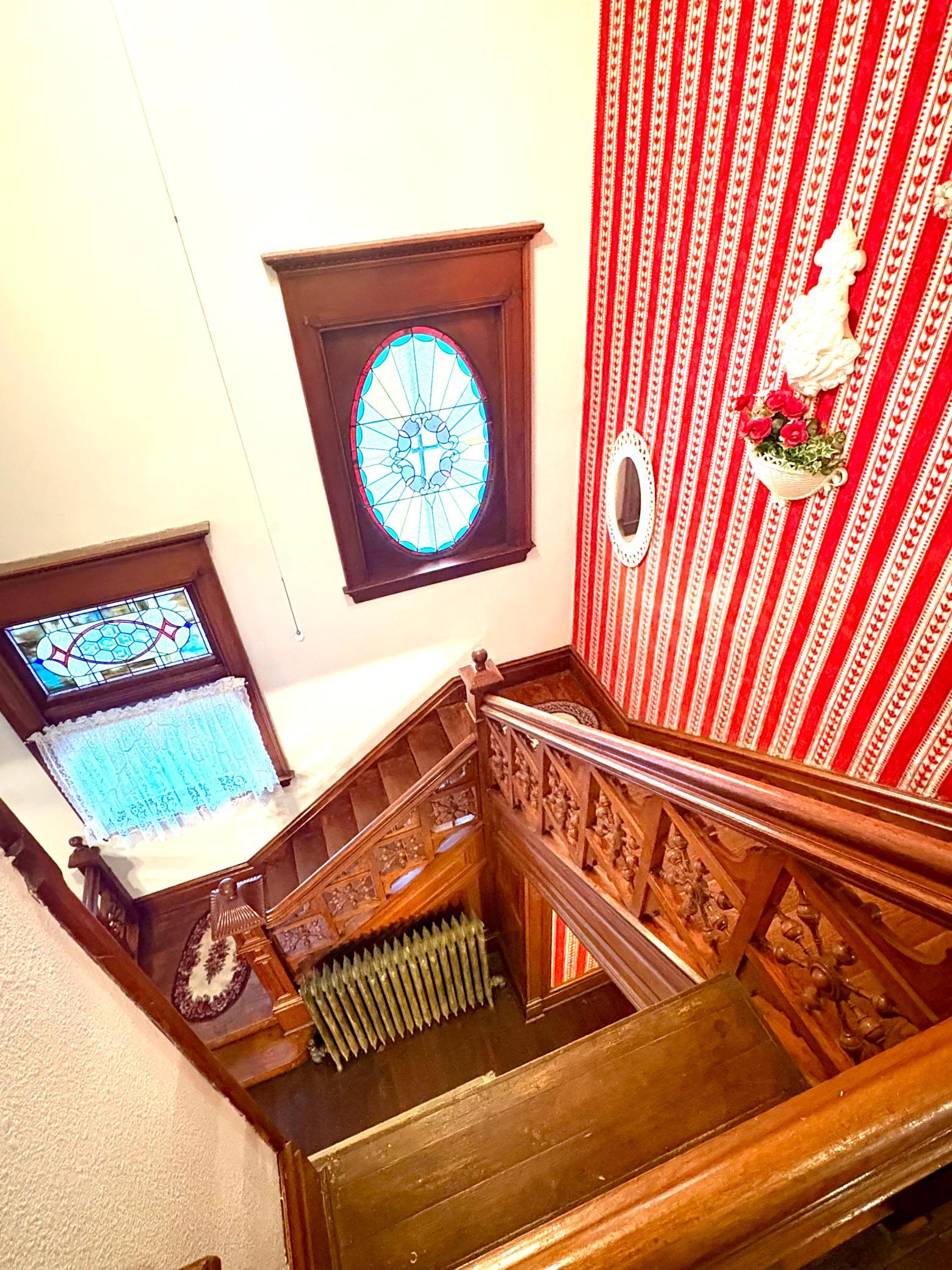 Step into timeless elegance with this stunning two-story home built in the 1890s, where historic charm and architectural craftsmanship shine at every turn. Boasting 6 spacious bedrooms and 2 bathrooms, this remarkable turn-of-the-century residence was previously operated as a bed and breakfast and offers endless possibilities for its next chapter.From the moment you enter, youll be captivated by the breathtaking 20-foot open staircase and soaring 10-foot ceilings that carry throughout the entire home. A second staircase adds both convenience and character. The original woodwork is truly extraordinaryrich, intricate, and unlike anything youve seen before. Every detail has been lovingly preserved, showcasing the unmatched craftsmanship of the era.The home features a beautiful wrap-around porch perfect for relaxing afternoons, along with a separate entry porch that adds to its grand curb appeal. Exterior corbals and detailed trim work remain original to the 1890s and are simply stunning. With the right paint colors to highlight its historic features, the exterior would absolutely shine.Inside, youll find a formal dining room, an original wood-burning fireplace, and stained-glass windows adorned with distinctive round glass accents throughout the home. The spacious primary bedroom includes a charming attached nursery or sitting room, offering a private retreat.A full, open attic provides incredible potential to finish and customize to your needswhether additional living space, studio, or guest quarters. The attached garage connects directly through a convenient entryway for everyday ease.This is a rare opportunity to own a true historic gem with unmatched character, craftsmanship, and potential. A must-see home filled with history, warmth, and endless possibilities.