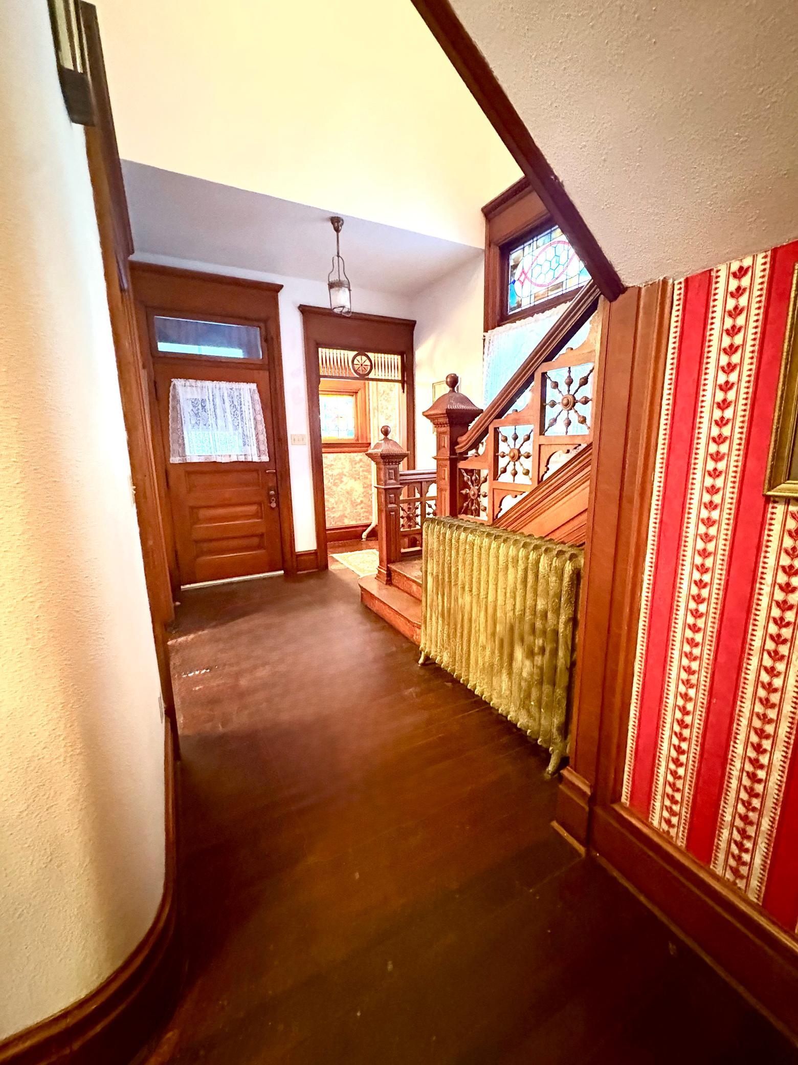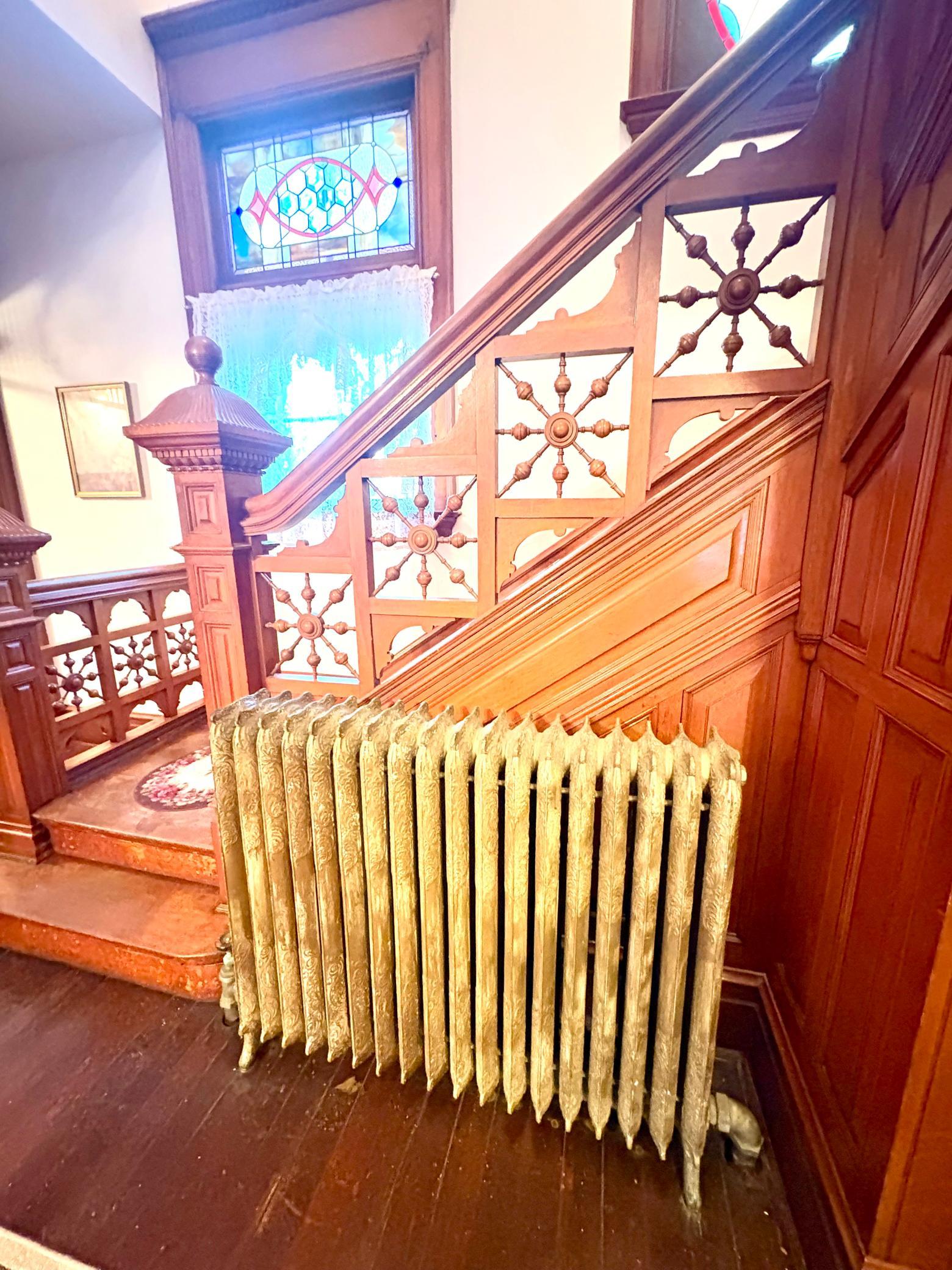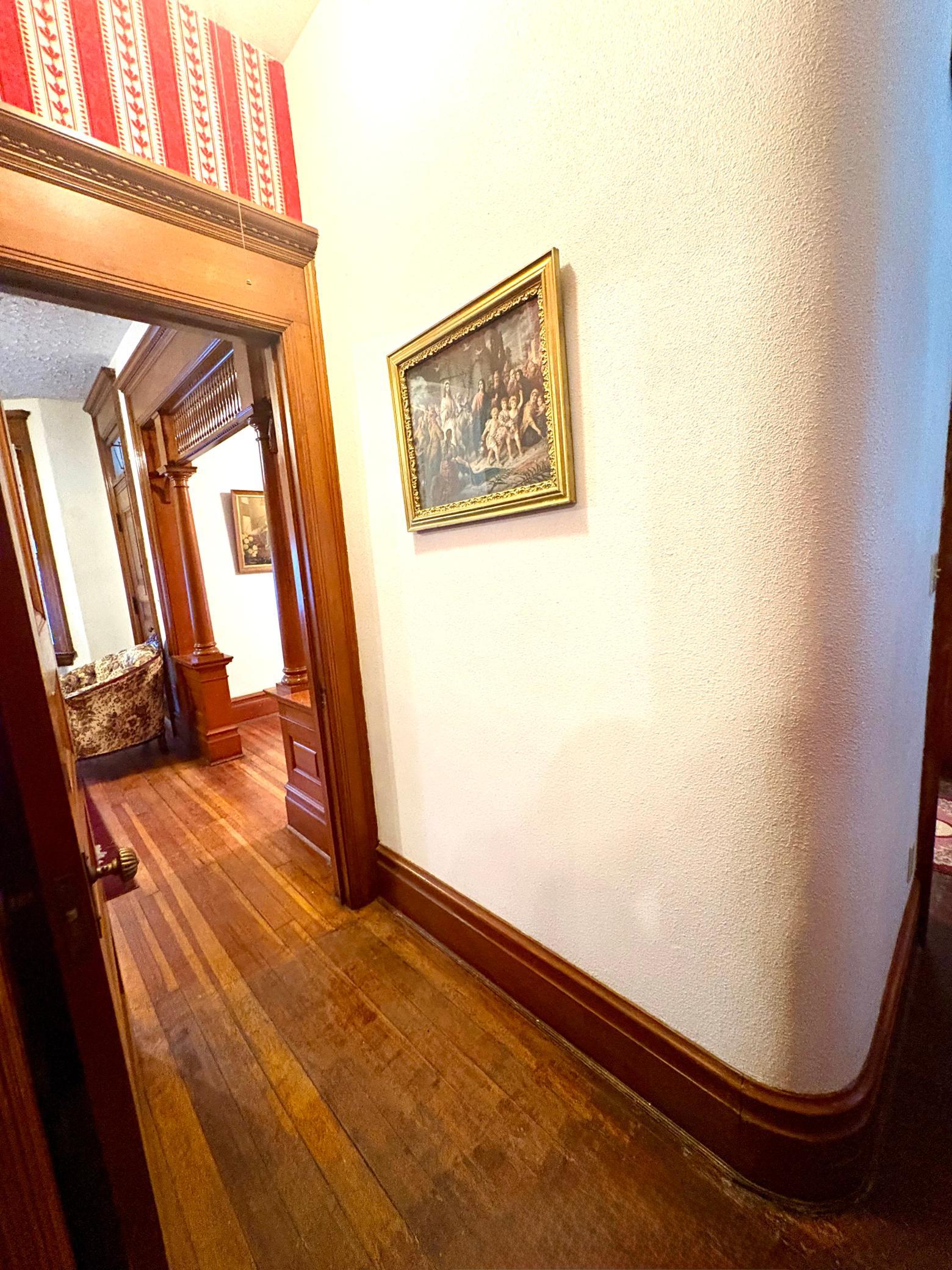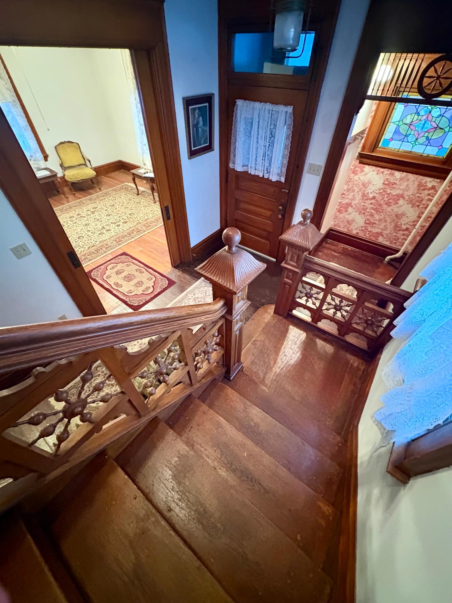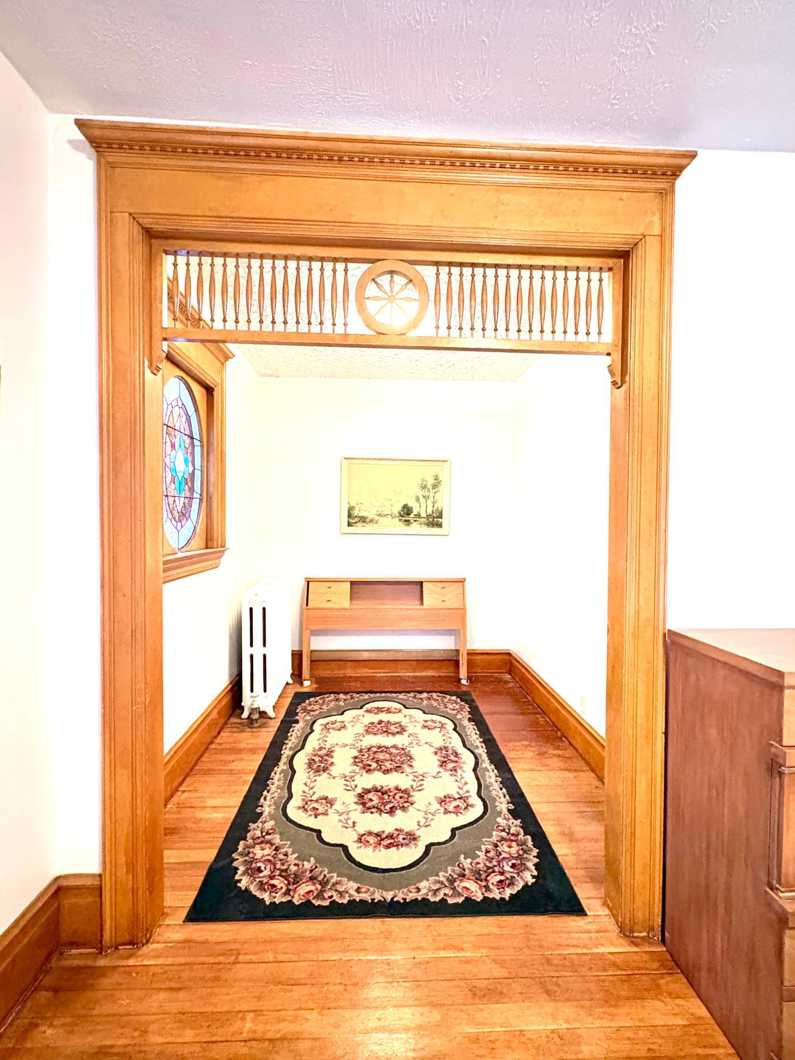 Step into timeless elegance with this stunning two-story home built in the 1890s, where historic charm and architectural craftsmanship shine at every turn. Boasting 6 spacious bedrooms and 2 bathrooms, this remarkable turn-of-the-century residence was previously operated as a bed and breakfast and offers endless possibilities for its next chapter.From the moment you enter, youll be captivated by the breathtaking 20-foot open staircase and soaring 10-foot ceilings that carry throughout the entire home. A second staircase adds both convenience and character. The original woodwork is truly extraordinaryrich, intricate, and unlike anything youve seen before. Every detail has been lovingly preserved, showcasing the unmatched craftsmanship of the era.The home features a beautiful wrap-around porch perfect for relaxing afternoons, along with a separate entry porch that adds to its grand curb appeal. Exterior corbals and detailed trim work remain original to the 1890s and are simply stunning. With the right paint colors to highlight its historic features, the exterior would absolutely shine.Inside, youll find a formal dining room, an original wood-burning fireplace, and stained-glass windows adorned with distinctive round glass accents throughout the home. The spacious primary bedroom includes a charming attached nursery or sitting room, offering a private retreat.A full, open attic provides incredible potential to finish and customize to your needswhether additional living space, studio, or guest quarters. The attached garage connects directly through a convenient entryway for everyday ease.This is a rare opportunity to own a true historic gem with unmatched character, craftsmanship, and potential. A must-see home filled with history, warmth, and endless possibilities.