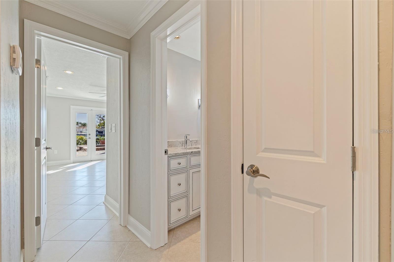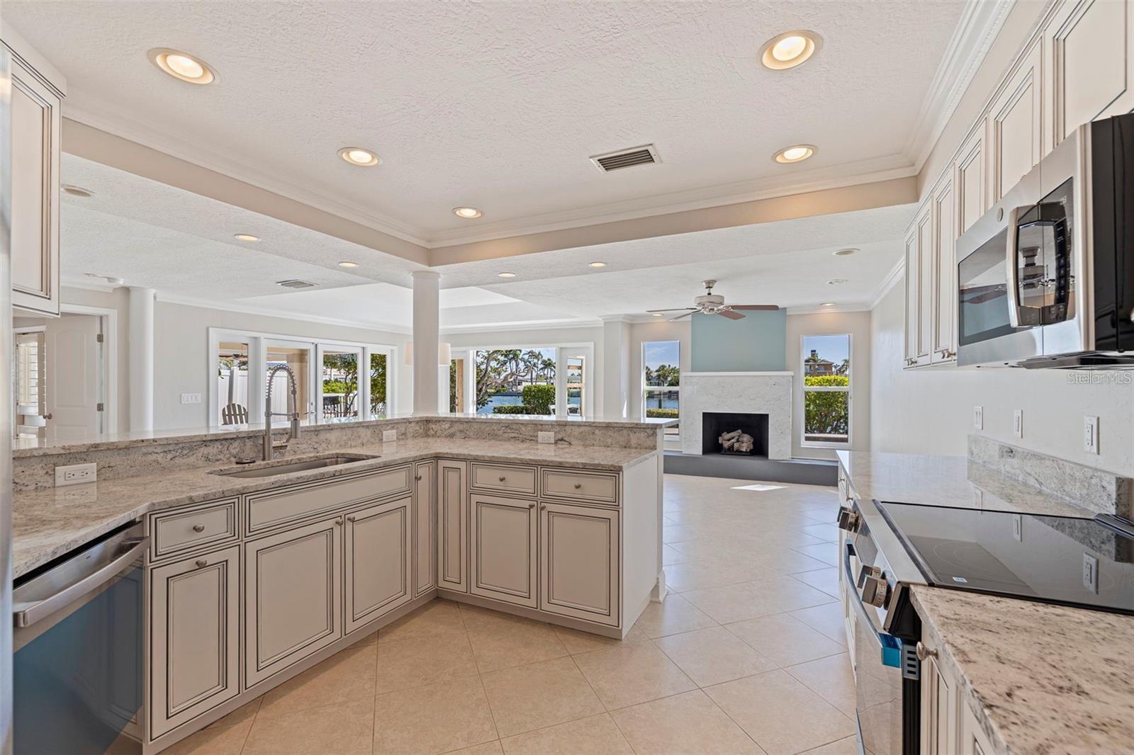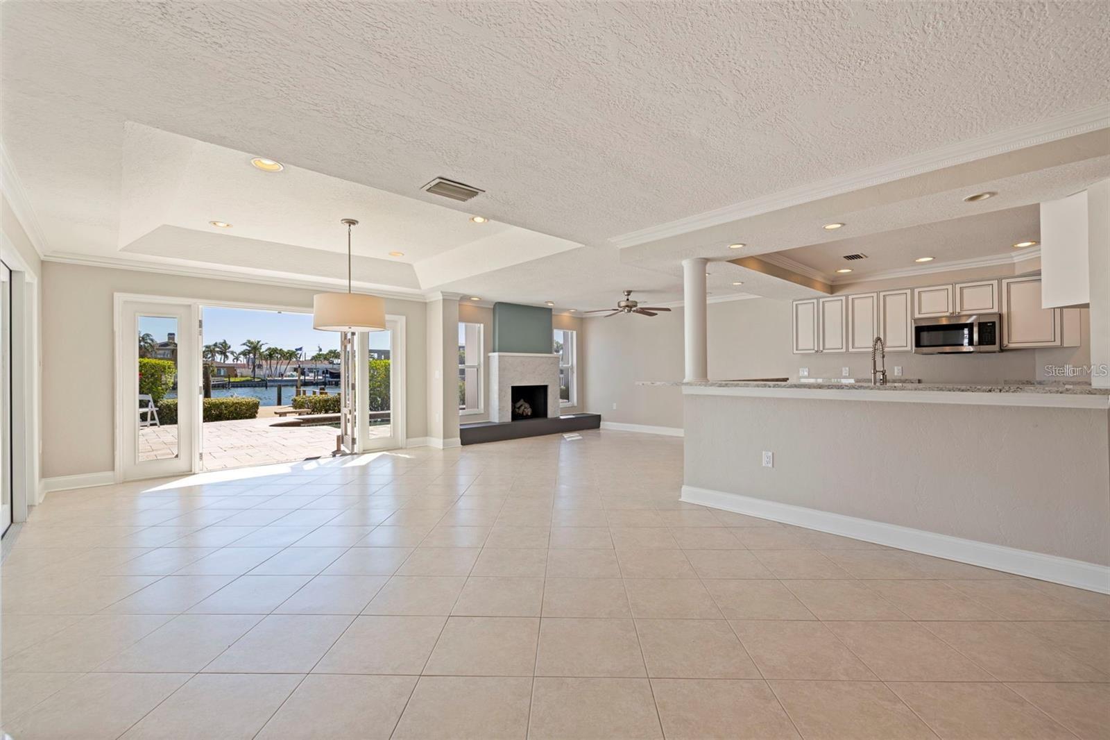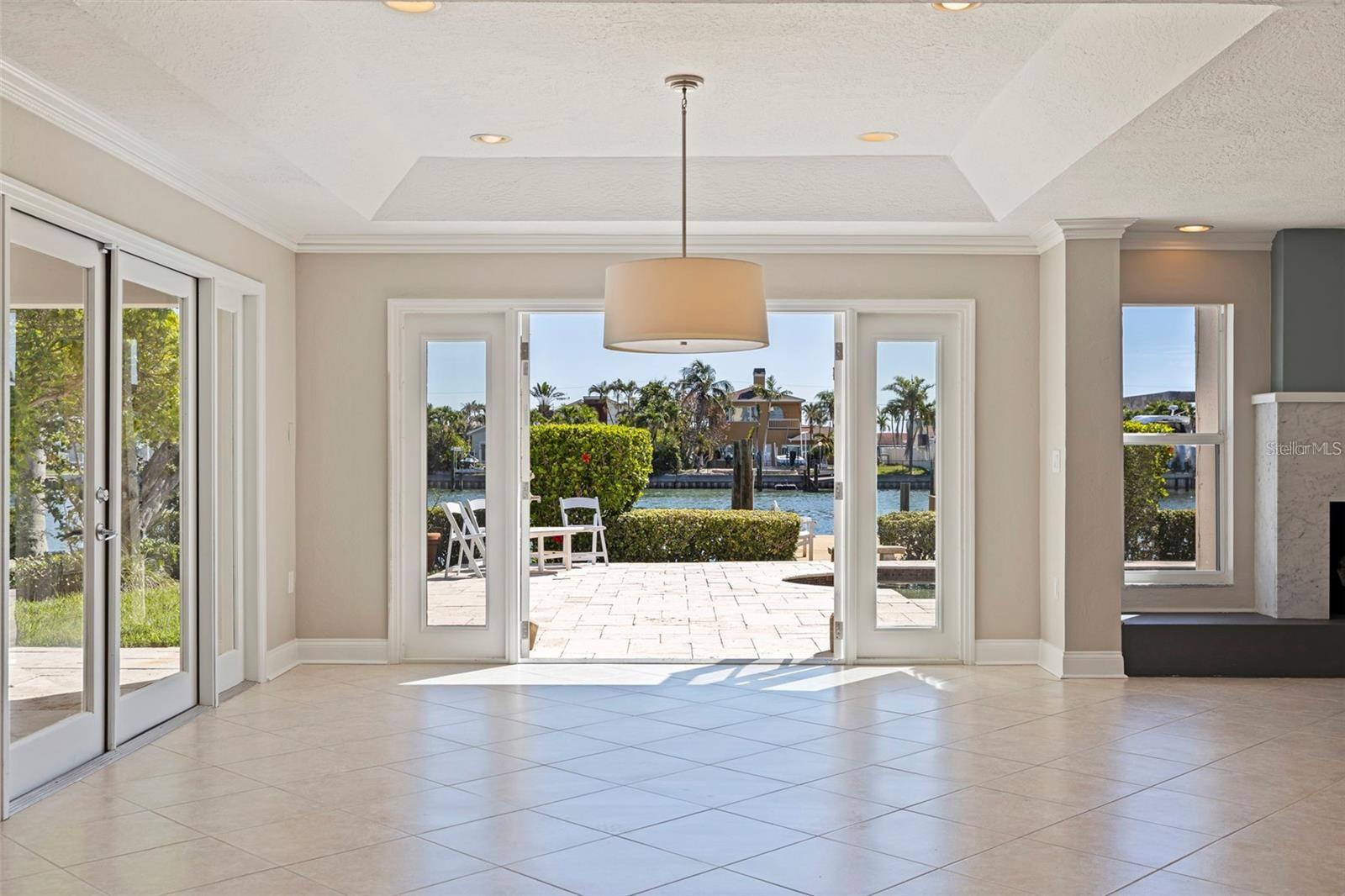 Welcome to this exceptional Isle of Palms waterfront residence, located in the charming community of Treasure Island. This stunningly renovated, 3-Bedroom, 2-Bathroom, 2-Car Garage, executive pool home with dock, is situated on an extra wide sailboat water canal with easy, immediate access to Boca Ciega Bay and the Gulf Of Mexico. As you enter through the gated private courtyard and the paired glass entry doors, an immediate feeling of comfortable elegance is apparent. The entry foyer is graced with waterfront views that bring a peaceful and light-filled ambiance to the open family living spaces. The large, open kitchen is at the center of the home, featuring expansive granite countertops and solid wood cabinets, and brand new stainless steel appliances. Generous storage is provided, and the entertaining area features comfortable bar seating for at least 3 -4 persons. The spacious formal dining area boasts a tray ceiling and room for a large dining table, easily seating 8 guests. Glass french doors open from the dining area to the spacious covered lanai and pool deck and has expansive views to the waterfront and beyond. The formal living room features an elegant gas fireplace. This residence is designed with a split floor plan with the two secondary bedrooms on one side of the home. This wing features a beautifully updated hall bathroom with a gorgeously tiled waterfall steam shower with frameless glass enclosure, and granite-topped floating vanity, servicing the secondary bedrooms as well as serving as a powder room for guest use. The two secondary bedrooms are generously sized with ample closet space and the secondary bedroom on the rear of the home features paired glass doors leading out to the sparkling pool and spa. There are lovely plantation shutters throughout the home offering privacy and a smart look and feel. The very private and peaceful primary suite offers a tranquil retreat for the homeowner(s) including a spacious spa-like primary bathroom with vaulted ceiling, a deep Kohler soaking tub in which to relax away the stress of the day, a spacious walk-in shower with a frameless glass enclosure, and a modern vanity with granite top. The luxury of this residence extends to the lush and private outdoor living spaces of the covered lanai and the beautiful paver deck, surrounding the beautiful pebble-tec pool and spa which overlooks the tranquil waters of Boca Ciega Bay. The home is perfect for boaters as it offers a large private dock with wood decking and water and electrical service. The seawall has been replaced with PVC sheet pile and a very substantial concrete cap. The homes roof was replaced in March of 2023 and the exterior was newly painted in August 2023. Let your cares fade as you relax poolside listening to the sounds of the breeze through the palms and watch the dolphins play in the canal. The pristine beaches and sparkling waters and sunsets of Treasure Island's world renown beaches and nightly sunsets are less than a 1/2 mile away.