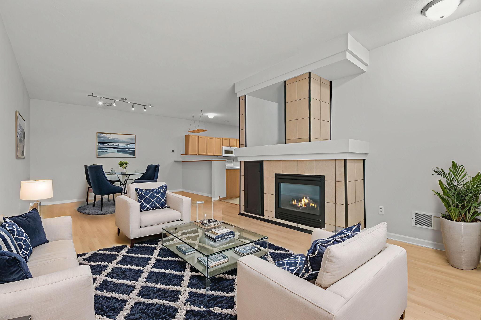 STOP THE CAR This One Is Worth the Look! Welcome to this beautifully refreshed two-bedroom townhome in Deacons Walk, nestled within the highly sought-after TPC neighborhood. Surrounded by scenic walking trails, lush green space, and a nearby park, this location offers the perfect blend of peaceful living and everyday convenience. With approximately 1,400 finished square feet, this move-in-ready home shines from the moment you walk through the door. Fresh, modern paint throughout paired with brand-new flooring and plush carpeting create a crisp, clean aesthetic that feels both stylish and welcoming. The main level boasts an open-concept layout designed for todays lifestyle. The spacious living room is filled with natural light from oversized windows and anchored by a cozy fireplace the perfect setting for relaxing evenings or gathering with friends. The adjoining dining area offers ample room for entertaining and includes a breakfast bar for casual meals or additional seating. The kitchen is thoughtfully designed with a center island, abundant cabinetry, and new microwave and dishwasher making meal prep effortless and enjoyable. A convenient half bath rounds out the main level. Upstairs, youll find two generously sized bedrooms plus a versatile loft space ideal for a home office, reading retreat, workout nook, or play area. The primary suite features a walk-through bath with dual vanities, linen storage, and a spacious walk-in closet. A large upper-level laundry room with washer and dryer included adds everyday convenience. And then theres the garage not just an attached two-car space, but an entertainers dream! Transformed into the ultimate retreat, it features finished decorative trim, ceiling fan, mounted TV (included), and overhead storage rack. Whether hosting game night, enjoying summer evenings, or creating your own hobby space, this bonus feature sets this home apart.HOA Fees: $310/month (local) $350/year (master) Covering snow removal, lawn care, exterior maintenance, hazard insurance, and sanitation services offering low-maintenance living year-round. Stylish updates. Prime location. True move-in readiness. This is the one youve been waiting for schedule your showing today!