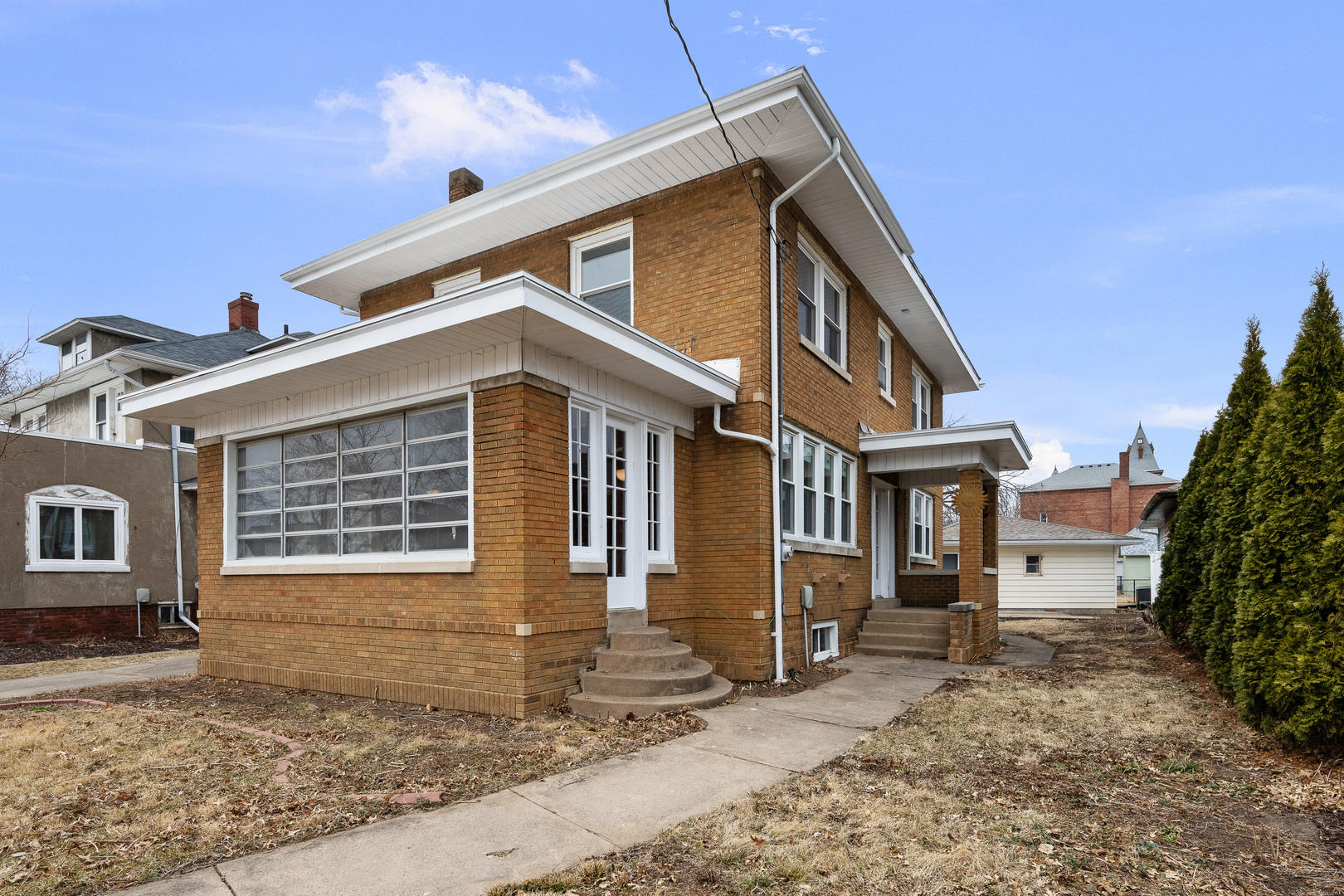 Charming 2 story brick home centrally located in Geneseo. This home greets you with beautiful hardwood floors sprawling over the living and dining room area. Two sets of double French doors with one leading you into the enclosed porch. Main level is completed by an updated kitchen, half bath, and laundry hook-ups. Upper level has 3 bedrooms with new carpet and a renovated bathroom. Full basement provides for an ample amount of storage and there is also a spacious 2 car garage. Schedule your showings today!