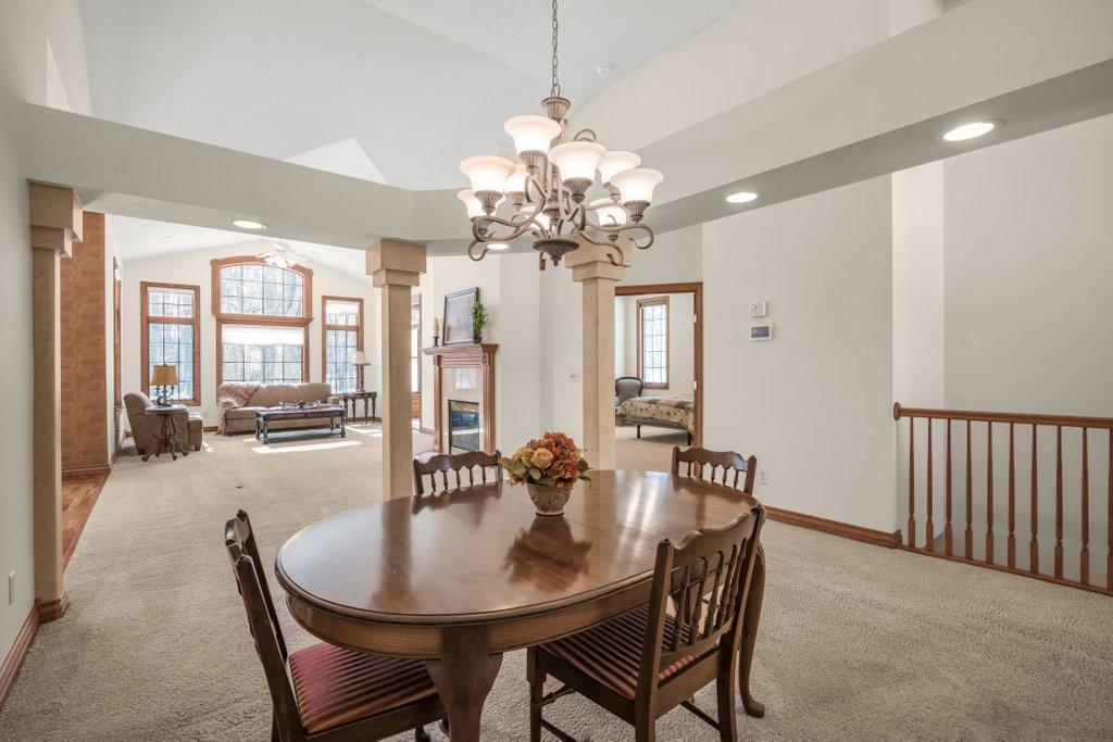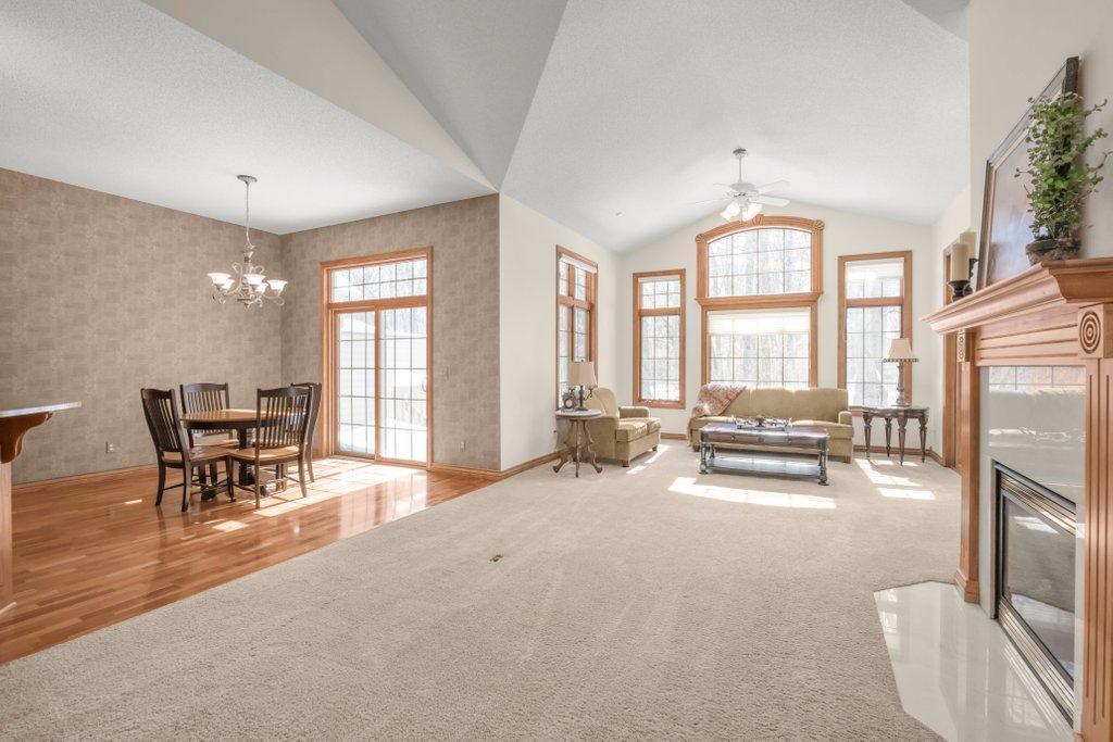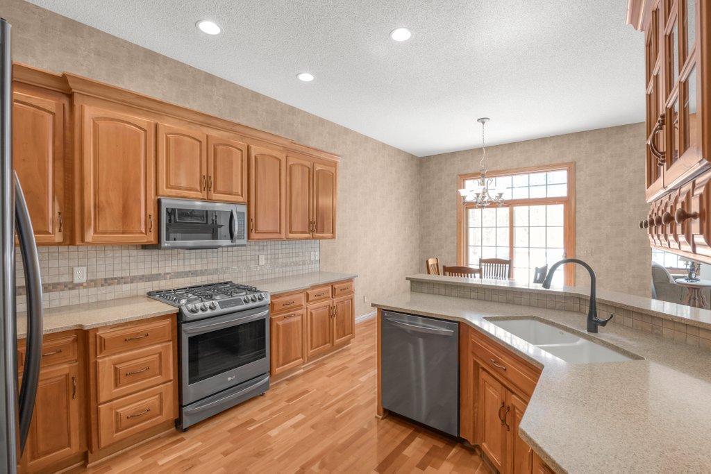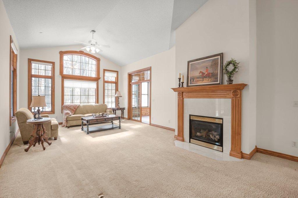 Turn Key Move Right In! Welcome to the highly sought-after neighborhood, The Meadows at Elm Creek, where privacy, nature, and effortless living come together. This rare townhome offers the feel of a single-family home with only two units per building and an exceptional setting that backs directly to Elm Creek Park Preserve, with nearly 5 acres of protected nature and wildlife, your own private retreat right in the backyard.Step inside to a bright, open floor plan filled with natural light, soaring ceilings, and beautiful architectural details. Huge windows flood the main level with natural sunlight. This home has been freshly painted throughout. The living room has plenty of space and one of two gas fireplaces. The kitchen showcases stunning cherrywood cabinetry and flooring, a breakfast bar, and seamless flow into both informal and formal dining spaces, perfect for everyday living and entertaining.One true highlight of this home is the back yard facing, incredible 3-season porch, and the adjacent private deck, offering picturesque wildlife views year-round.Enjoy the convenience of main-level living, including a spacious primary suite with a private ensuite bath and walk-in closet w/built-in cabinetry, and brand new carpet. The additional main-level bedroom #2 could be an office option as well. Along with a well-appointed laundry room featuring a countertop space & abundant cabinetry for an additional butlers pantry feel.The expansive lower level is ideal for entertaining, complete with a large family room, cozy fireplace, wet bar with cabinetry, two additional bedrooms, full bath, and an impressive storage room.With 4 bedrooms, 3 full bathrooms, a 2-car garage, and a location just minutes from trails, parks, shopping, and dining, this home offers a rare opportunity to enjoy low-maintenance living in one of Champlins most desirable communities.