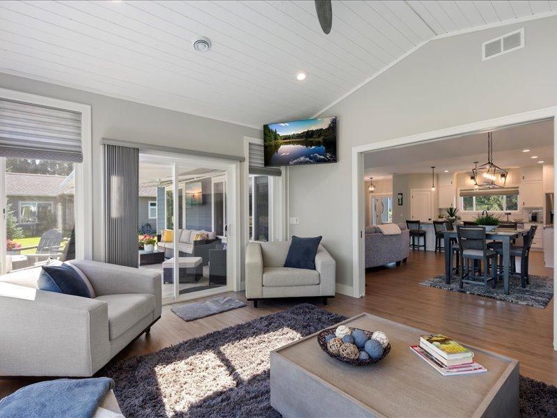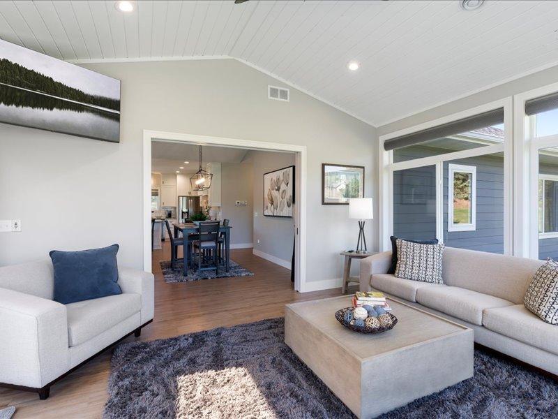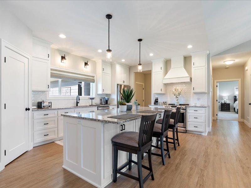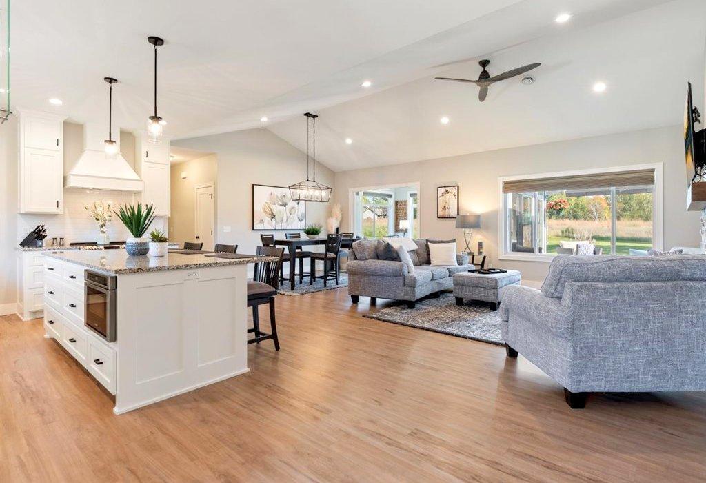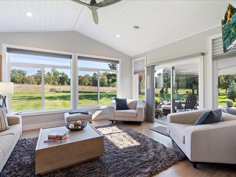 Discover elegance in the Lakes Area with this immaculately maintained 2021 home. Features include a gourmet kitchen, vaulted great room with gas fireplace, a four-season porch, three spacious bedrooms, and two bathrooms. The primary suite offers an oversized walk-in closet, and the luxurious en-suite bath with a soaking tub, tiled shower, and double granite vanity is all powered by an on-demand hot water heater. Enjoy the best of all four seasons, with heated floors throughout the home, in addition to forced air. No matter the weather, soak in panoramic views from the four-season porch. Enjoy outdoor entertaining on the stamped concrete patio with natural gas firepit and automatic awning. Take the golfcart to 100+ holes of golf! Enjoy public boat launches to Gull Lake and Sylvan Lake, paved public trails perfect for walking and biking, and the Lakes Area best dining, all within minutes! Outside, the esteemed Craguns Legacy Village Association takes care of all yard maintenance, including snow removal, and shoveling up to your front door. Stay connected with fiber optic internet. See what the best of Lakes Area living looks like!