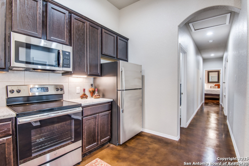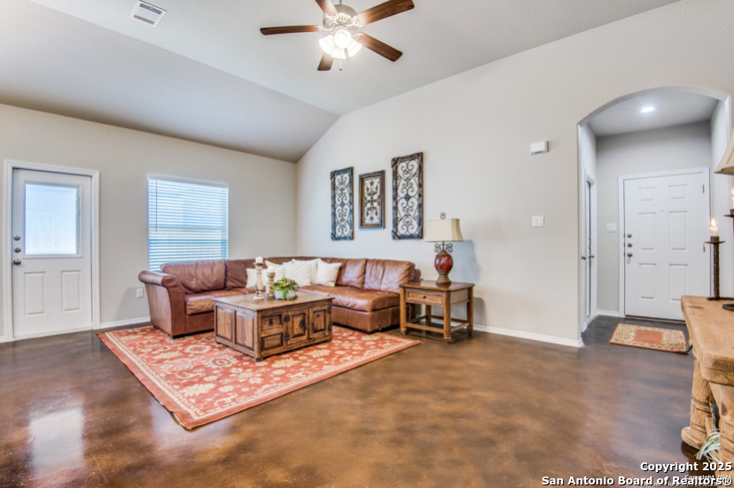 Rental Rates: $1245 for a 12 month lease or $1195 for a 15 month or longer lease. Beautiful duplex in Seguin with convenient location as it is located 30-minutes from San Antonio and 20-minutes from New Braunfels. This Luxury duplex has a spacious and contemporary design. Enjoy the lofted living space with 11 ft. high ceilings in the living room and kitchen. Concrete stained flooring throughout the home. This home does not have any carpet! Open kitchen with recessed lighting, granite countertops, 42 inch cabinets, and backsplash lighting. Stainless Steel appliances included as well as refrigerator. Window blinds included. Ceiling fans in all three bedrooms, living room, and back covered patio. Fully fenced back yard & a two car garage ready for your use. NO PETS. Move in ready today!