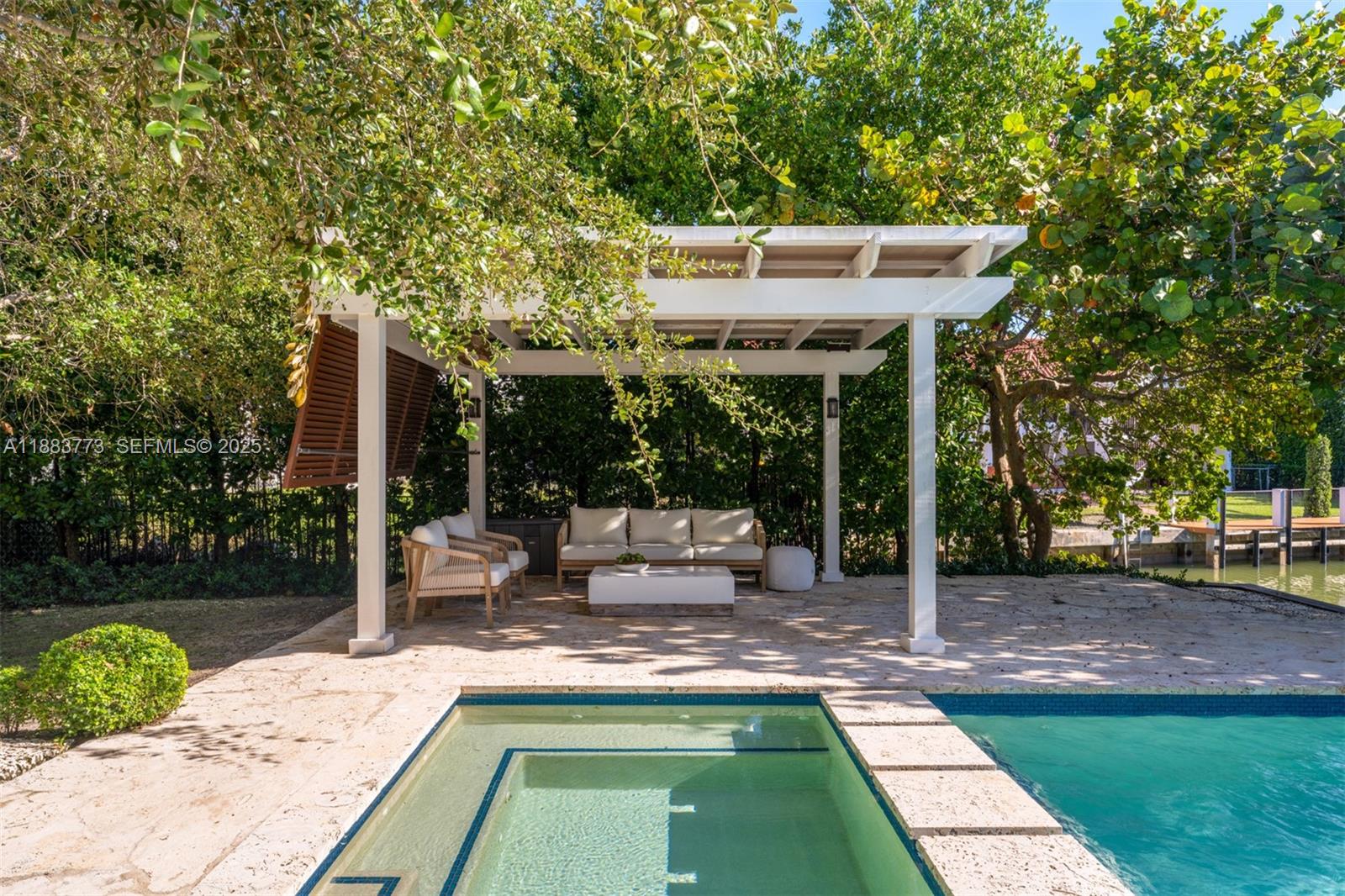 A beautifully appointed waterfront home in the gated community of Gables by the Sea, this 4-bed, 4.5-bath plus den residence spans 4,467 sq ft on a 12,366 sq ft lot with direct ocean access, 50 ft seawall, and private dock. Interiors showcase a chefs kitchen, custom wet bar, wine cellar, and spacious living areas designed for entertaining. The expansive primary suite offers walk-in his and hers closets and a private terrace. Enjoy alfresco living on the covered patio with saltwater pool. With 3 upstairs bedrooms featuring ensuite baths, 1 downstairs, and a den, this home blends coastal elegance with modern luxury in one of South Floridas most desirable neighborhoods.
