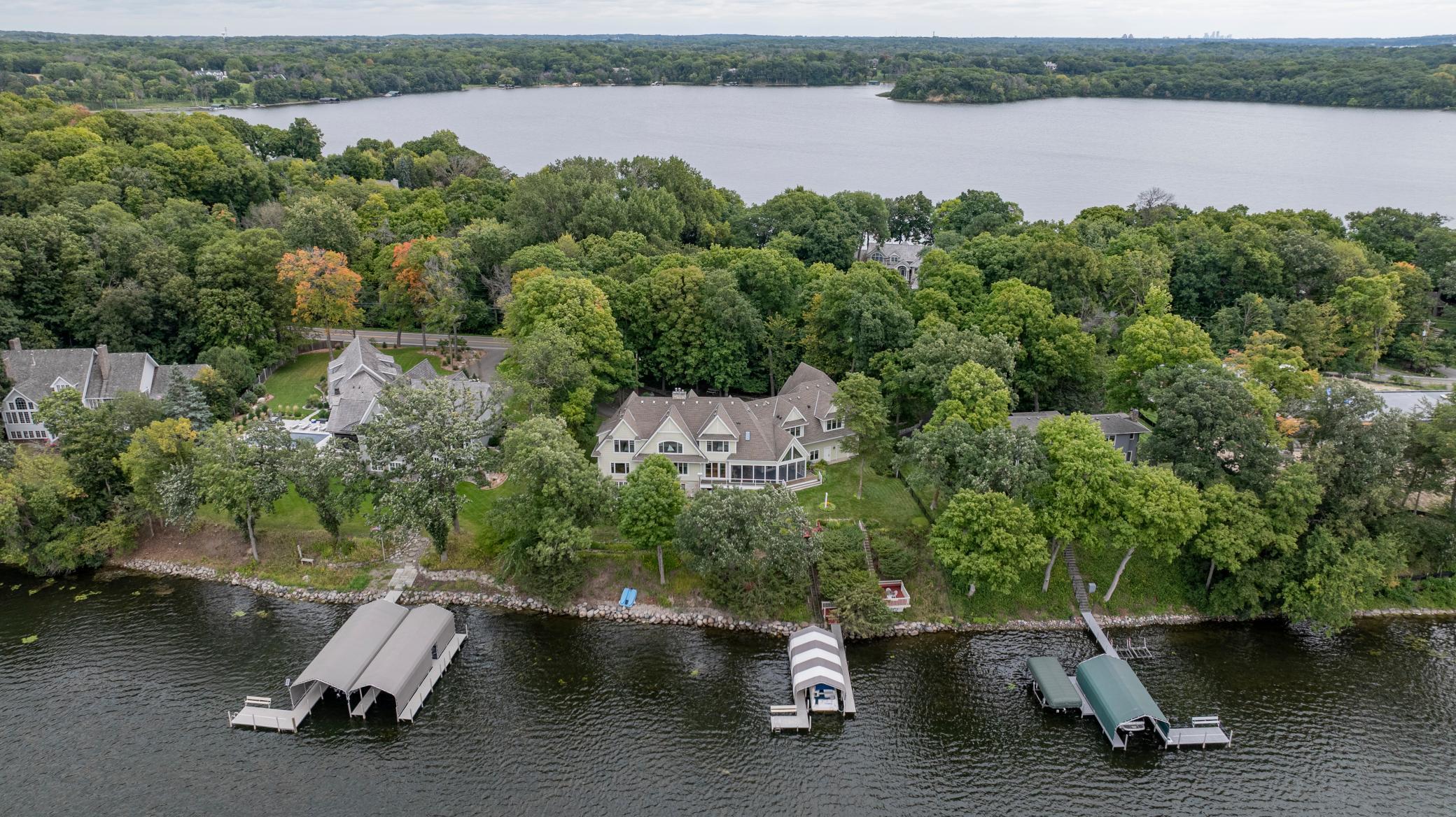 Exquisite Lake Minnetonka Luxury Residence Orono, North Arm BayPerfectly positioned on the shores of Lake Minnetonka, this exceptional home was completely rebuilt in 2005 by Michael Hayes Homes and thoughtfully designed by Alexander Design Group. Blending timeless elegance with modern comfort, it offers an unparalleled lakefront lifestyle.This property offers more than one owners suite option. Inside, soaring ceilings and floor-to-ceiling windows flood the home with natural light and capture sweeping panoramic views. The main level features a owners suite, chefs kitchen with high-end appliances gas stove and custom cabinetry, a formal dining room, a welcoming family room with fireplace, and a private office.Upstairs, primary suite boasts a spa-like bath with soaking tub, walk-in shower, and dual vanities. Five additional bedrooms, including two with en suite baths, provide generous accommodations for family and guests.Outdoor living is second to none, with a 430 sq ft three-season porch, expansive paver patio, and grandfathered deck extending over the lake, perfect for entertaining or enjoying serene western sunsets. The beautifully landscaped grounds include a private dock and ample green space.Additional features include a four-car garage, RO water system, meticulous craftsmanship, and a layout designed for both comfort and sophistication.