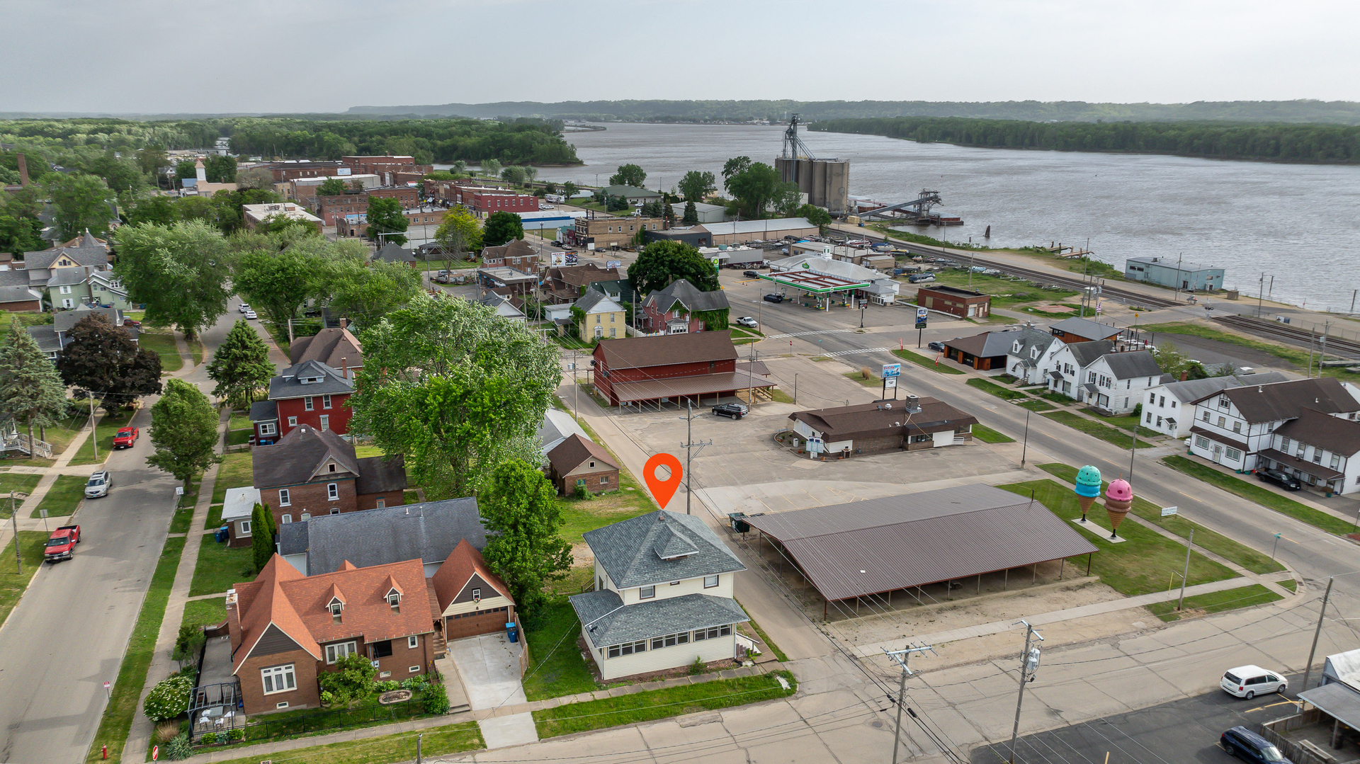 Welcome home. Charming Riverview Retreat in Quaint Town. Just a block away from the serene river in a picturesque town! This beautifully updated residence boasts original woodwork and a perfect blend of classic charm and modern convenience. Step inside to discover refinished original hardwood floors that flow seamlessly throughout the first and second floors, including the elegant staircase and detailed window trims. The spacious layout features two inviting bedrooms upstairs, both offering stunning views of the river, making it the perfect spot to unwind and enjoy the scenery. In 2022, this home underwent significant upgrades, ensuring peace of mind for years to come. Key improvements include a new roof, water heater, water cleaner and softener system, updated electrical box and wiring, as well as brand new appliances including a washer, dryer, stove, and refrigerator. The air conditioning unit is in excellent working condition, with internal parts recently updated for optimal performance. Outside, you'll find a spacious 2.5-car garage conveniently located across the street, providing ample storage and parking. Enjoy easy access to a boat dock just steps away, perfect for water enthusiasts and those who love to spend time on the river. This home is not only a wonderful place to live it can also be an excellent investment opportunity. Located just 35 minutes from Galena, IL, you'll have the perfect blend of small-town charm and access to nearby attractions. Don't miss your chance to own this delightful property that combines comfort, style, and an unbeatable location. Schedule your showing today!