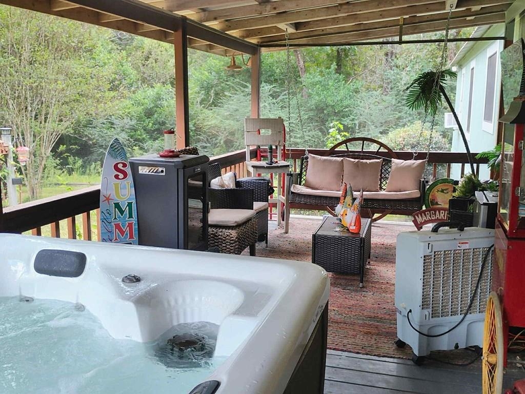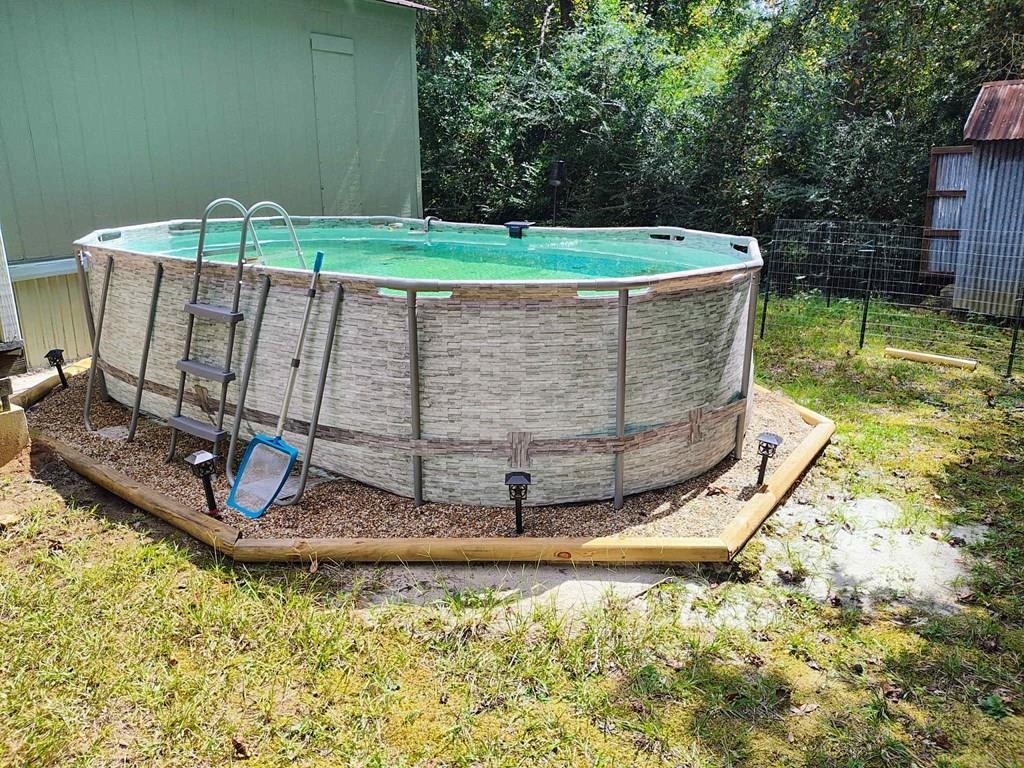 3 Bedroom 2 Bath home completely updated. Vinyl, Wood Floors, and Sheetrock walls. New paint throughout the home. Metal roof with copper paint. Large screened-in front porch with a large sitting area and a hot tub. Back deck leads to the above-ground pool and entertainment fire pit area. New 10x12 storage building and attached carport. Located at the end of a dead end street with woods beside and behind the home. Close to town and the fairgrounds. Schedule your viewing today!