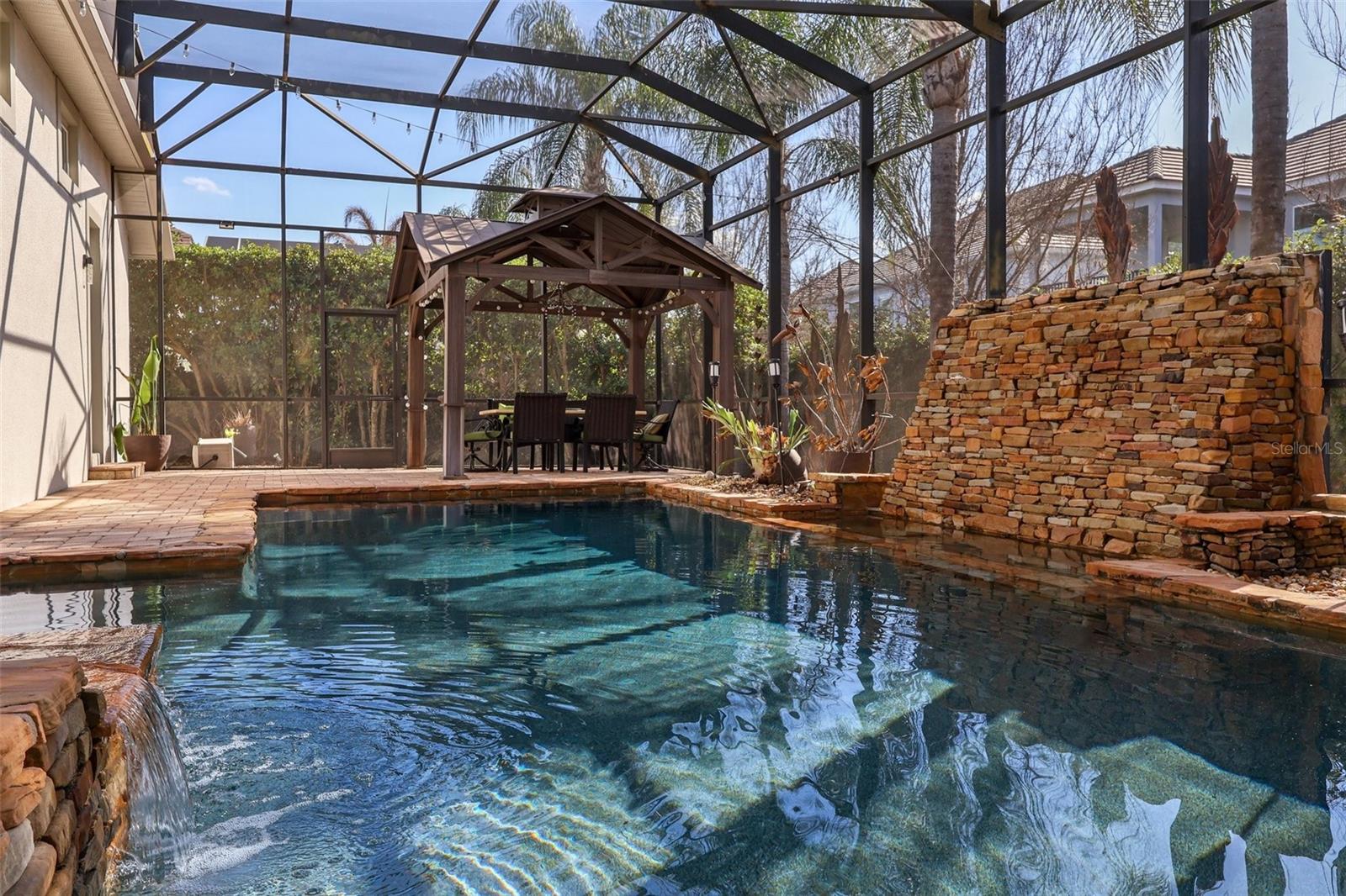 Keene's Pointe - 24-hour gated/attended golf community in Windermere, Florida. Experience refined living in this beautifully updated 4-bedroom, 3-bathroom residence. Designed for both comfort and elegance, this home features thoughtful upgrades throughout and exceptional indoor-outdoor living. Enter through the custom iron doors to discover porcelain flooring throughout the home and gorgeous quartz countertops that elevate the kitchen and bathrooms. Natural light pours in through new windows installed in 2023. There is a formal living and dining room, kitchen with stainless appliances overlooking the great room with access to the lanai. The primary suite is located privately on one side of the home with spacious bedroom, walk-in closet with built-in shelving, bathroom with dual vanities, large walk-in shower and freestanding tub. Out back, enjoy your own private resort-style retreat. The large swimming pool and spa are complemented by a rock waterfall, creating a tranquil ambiance. The paver pool deck and gazebo provide the perfect space for entertaining, relaxing, or enjoying Floridas sunshine year-round.Additional highlights include a new roof in 2019, new double pane windows in 2023, spacious three-car garage with extra storage, large paver driveway offering ample parking and upgraded finishes throughout the house.In close proximity to shopping, dining, tourist attractions, major expressways and top-rated public and private schools, Keene's Pointe is home to The Golden Bear Club, a members only club featuring golf, tennis, fitness, dining and swimming, combines luxury, privacy, and lifestyleperfect for those seeking upscale living with access to premier amenities.Schedule your private showing today and discover everything this exceptional home has to offer.