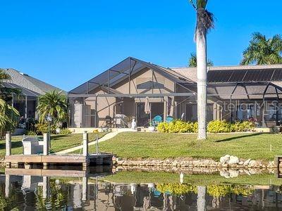 PRICE DECREASE! Come take a look at this beautiful & architecturally pleasing LAKE FRONT HOME w breathtaking, wide lake views complimented by inspiring sun-rises & an inviting salt-water, solar-heated pool in the desirable Lake Suzy Estates, FL. A quiet backyard w PRIVATE DOCK provides lake access for boating, fishing or just watching the birds and wildlife. This custom-built home was created with comfort, relaxation & entertaining in mind. A covered lanai boasts a spacious lounging & outdoor dining area. The 12 x 24 pool & large sun-deck under a vaulted, picture-screened enclosure adds to the spaciousness. Inside, you are immediately wowed by the SPECTACULAR WIDE LAKE VIEWS encompassing the entire back of the home. Appreciate soaring ceilings throughout, starting in the formal living & dining rooms complete with transom windows & niches. A Perfect-for Entertaining, open-concept kitchen w modern appliances, breakfast bar & generous counter space is complimented by etched glass cabinetry & a sea-glass tile back splash, large double-sink & island. The kitchen flows into the informal dining area & large family room, where your people can easily spread out. With the large glass wall of sliders opened to the lanai, you bring the outdoors in to experience pleasant breezes coming off the lake for that true Floridian feel. Light and bright is an understatement for this inviting lake front home. A spacious, primary bdrm suite w vaulted ceiling, arched windows, Bahama fans & French doors open to the lanai & pool. A granite, 2-sink vanity provides enough storage as does a walk-in closet +1. On the opposite side of the home are two guest bedrooms (we substitute a home office), w linen closet & guest bath between. The laundry room is enroute to the over-sized 2 car garage. A 3rd half-bath is off the family room & opens to pool. Enjoy an outdoor shower after a relaxing swim in the salt, solar-heated pool which can be 80-90 degrees year-round (heat without raising your electric bill). A lawn irrigation system draws from lake. HURRICANE PROTECTION throughout. This home is located in a quiet & desirable part of LSE, 25 above sea level, close to the I-75 corridor, shopping, golf courses, great restaurants, Punta Gorda (Fishermans Village, Airport), Charlotte Harbor, Englewood, Venice, Boca Grande, Sarasota & Ft Myers all w beautiful white sand beaches. WHATS NEW/NEWER: Faucets, light fixtures & door hardware (2026-2025); Asphalt 30-yr Roof 2/2023; Pool enclosure with picture-window screen 2/2023; Pool pump 2022; Appliances (stove, fridge, dishwasher) 11/2022; Septic fiberglass tank 4/2021; Hot Water Heater 2019; AC 2018. Of note: To protect Lake Suzy, boating is w electric boats, kayak, fishing. Deed restricted community; HOA fee is voluntary; mandatory Lake HOA Maintenance fee $100/yr.