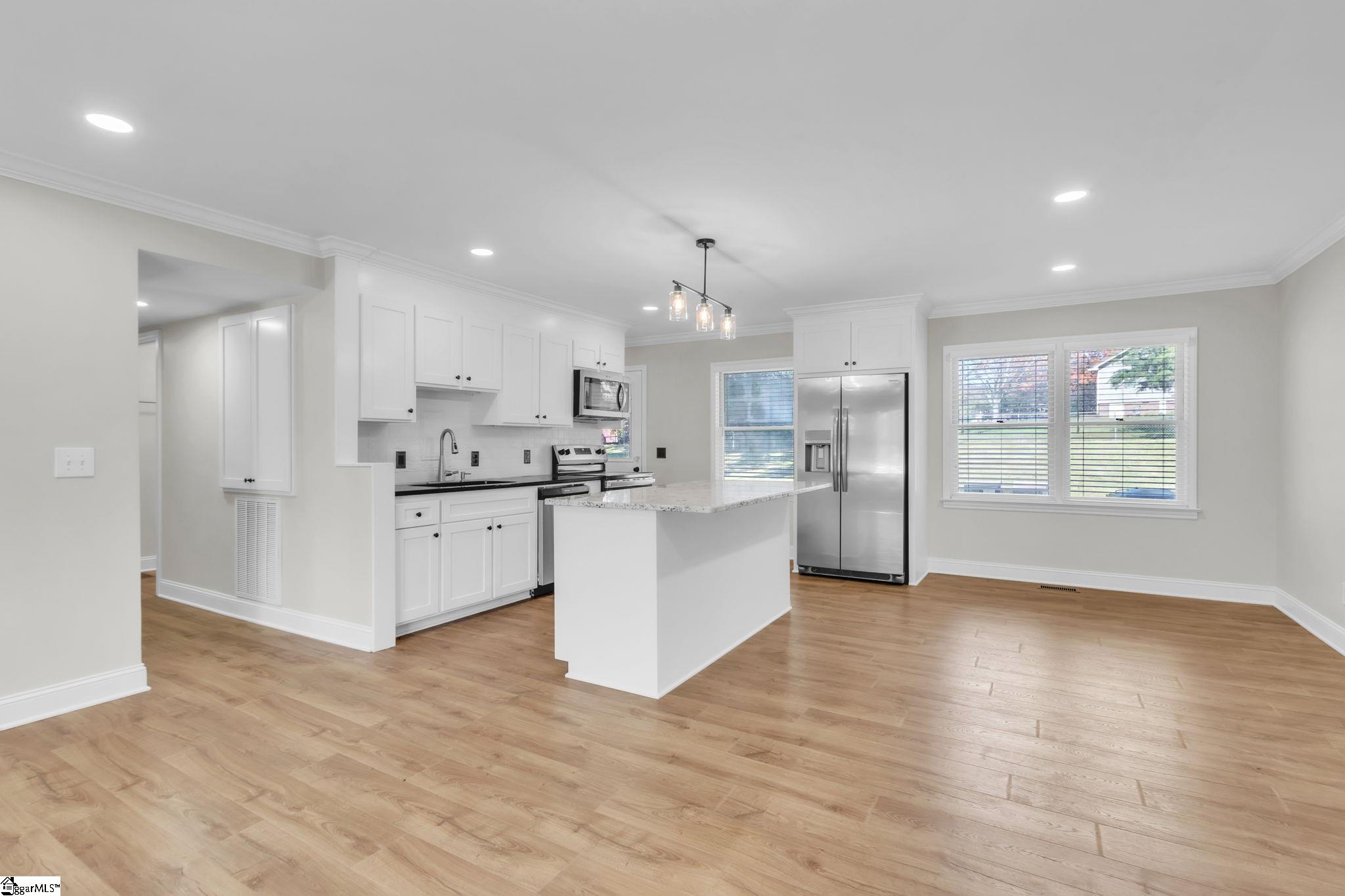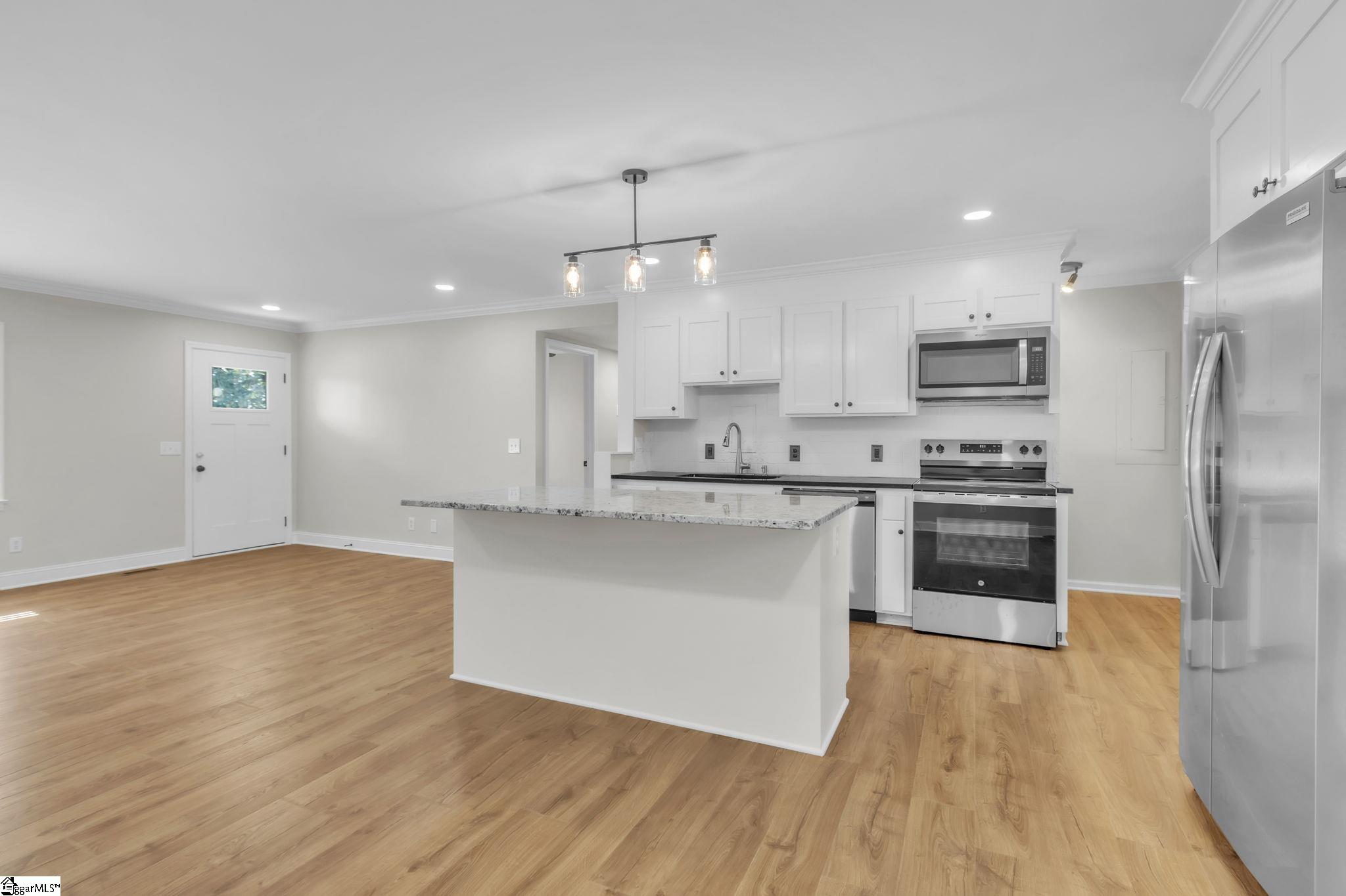 Welcome home to this beautifully renovated 3-bedroom, 2-bath brick ranch in the heart of Easley! This charming home has been completely brought back to life, featuring stunning updates throughout and a gorgeous fireplace that serves as the perfect centerpiece for cozy evenings. Enjoy the spacious, fenced backyard with two storage buildingsideal for hobbies or extra storageand a beautifully maintained lawn, with lawn care included for your convenience. Located just steps from Prisma Baptist Easley Hospital and close to shopping, dining, and downtown amenities, this home offers both comfort and convenience. 12-month lease required. Applicants must provide a completed application, valid ID, and proof of income. Don't miss this beautifully updated gemschedule your tour today!