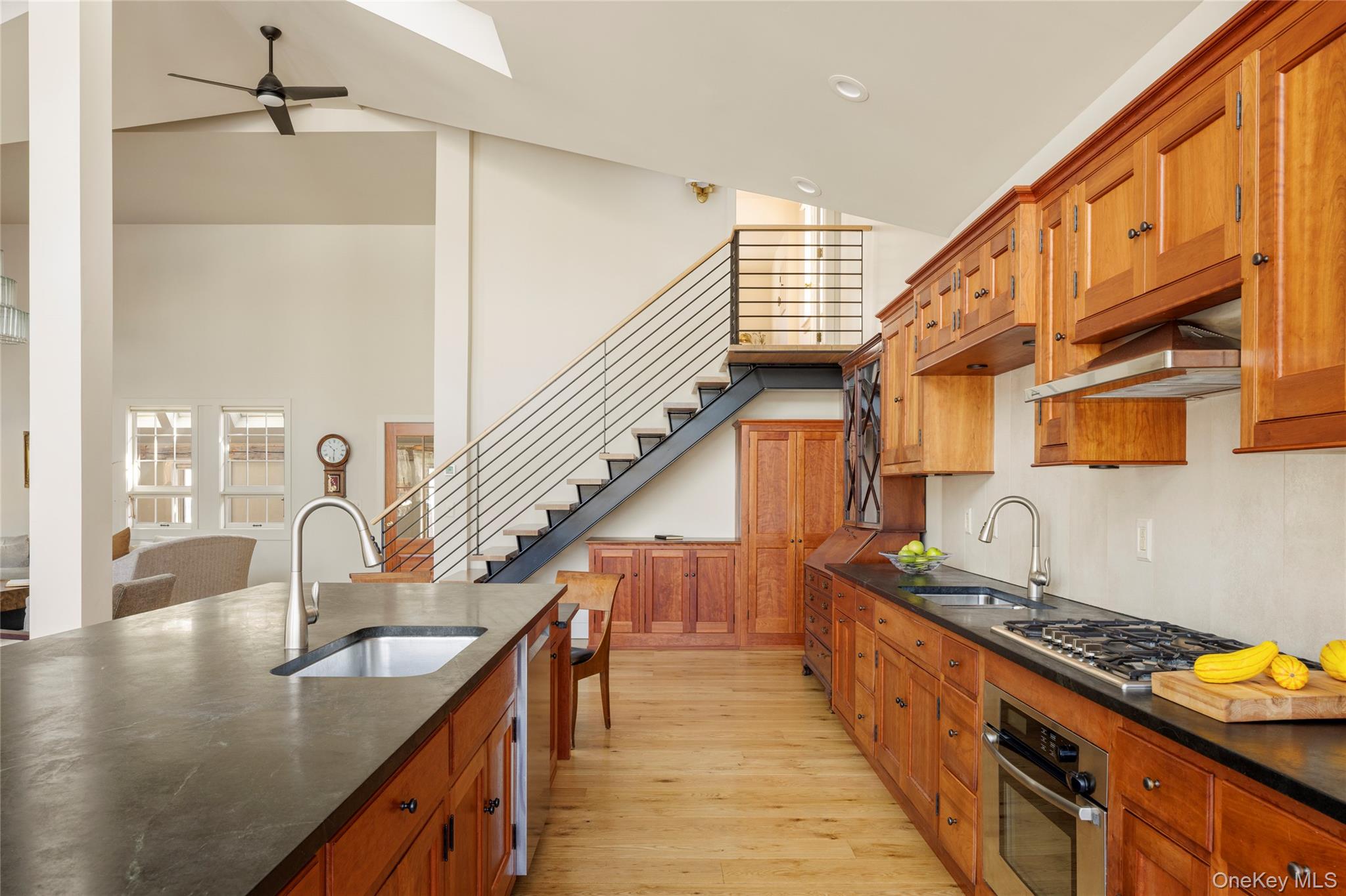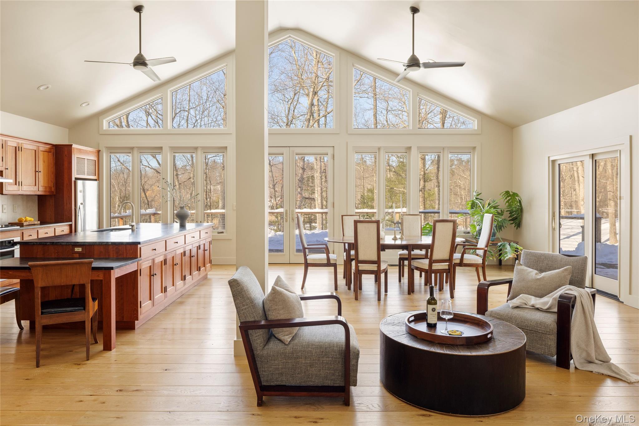 Spectacularly renovated and offered for the first time since its complete transformation, this exceptional pondfront residence overlooking Maiden Lake is located within the highly sought-after Fern Hill community and offers refined design, privacy, and effortless indoor-outdoor living. The home is clad in warm natural cedar siding, lending timeless character while blending seamlessly with the surrounding landscape. Maiden Lake is a shared pond maintained by the Fern Hill HOA with private swimming access. Set on a quiet country road just outside the Hawthorne Valley hamlet, the property is minutes to Great Barrington, Massachusetts, close to respected private schools, and offers convenient access to the Taconic Parkway and Albany International Airport, allowing for easy travel from New York, Boston, and Connecticut. The thoughtfully designed home features multiple private bedroom suites, lofted ceilings, and expansive light-filled living spaces. Interior finishes highlight exceptional natural materials and craftsmanship, including white oak flooring in the main living areas, cherry cabinetry, soapstone kitchen countertops, French oak stairs, and a custom single-stringer stair with a black steel beam, black steel railing, and white oak banister. Bedroom suites feature maple flooring, while the upstairs loft, office, or studio includes wide-board pine floors. Custom wainscoting and a dedicated linen closet serve the bedroom suite hallway. The open main living area centers around a well-appointed chef's kitchen with an oversized dining island and additional dining space. Premium stainless steel appliances include a Bosch wall oven, Thermador gas cooktop, Fisher & Paykel refrigerator, KitchenAid dishwasher, and Zephyr range hood. Bathrooms feature white subway tile, marble sink countertops, rain and hand-shower fixtures, and wood-grained porcelain tile flooring. The home is filled with light and comfort through Marvin triple-pane windows and doors with built-in shades, automated skylights, and thermal skylight shades. Ceiling fans, insulated thermic shades, and remote-operated skylights enhance energy efficiency and airflow. Multiple dedicated home office areas support flexible modern living. Year-round comfort is provided by an energy-efficient heat pump system with heating and cooling, radiant heated floors in the main living areas and primary bathroom, and a separate gas furnace serving the rear portion of the home. A whole house backup generator provides added peace of mind. Additional upgrades include high-efficiency insulation, fully updated plumbing and electrical systems, a 400-amp electric service, and ethernet outlets. A gas fireplace adds warmth to the main living space. The laundry room includes cherry cabinetry and Bosch stackable washer and dryer units. The entry mudroom features a brick floor, bluestone bench seating, antique wood beams, a Buderus European-style radiator, abundant windows and skylights, and generous storage. The landscaped grounds include perennial gardens, bluestone walkways, copper gutters and drainspouts, selective fencing suitable for small livestock or chickens, and fenced raised-bed gardens. A charming barn includes a three-to-four-person luxury sauna with an Amerec SaunaLogic controller and Laava series heater. Outdoor living is exceptional, with an expansive wraparound Brazilian walnut deck, a spacious gazebo with sweeping pond views, an additional deck overlooking the water, and a dock. Cultural destinations like Hudson galleries, Art Omi, Tanglewood, and Jacob's Pillow are nearby, along with skiing at Catamount, Jiminy Peak, and Butternut. Best of all, Hawthorne Valley Waldorf School and the renowned Hawthorne Valley Farm Storefeaturing the highest quality local, organic, and biodynamic foodare just moments away by foot or bicycle.