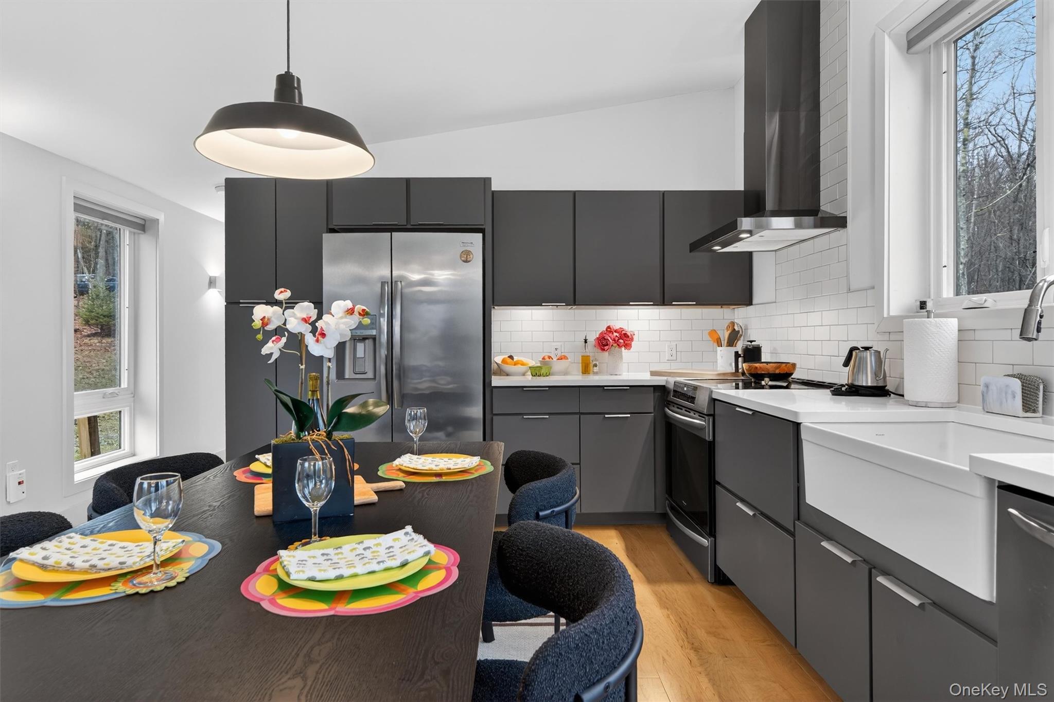 Modern midcentury aesthetic getaway on 6.34 quiet acres designed with clean, minimalist features. Built by Catskill Energy Homes with up-to-date building methods combined with the latest energy saving technologies to create a sustainable home for todays modern living. With 2BR/1bath, the spacious open concept feeling with large energy efficient windows provides lots of natural light and brings in the outdoors along with the cantilevered 16x16 deck to extend the living area with outdoor enjoyment. The home features quality finishes like Hardi board siding,hyper insulated exterior walls, interior insulated sound proof walls, energy efficient appliances, high speed internet, Moen faucets, oversized farm sink, woodburning stove, split units for A/C & heating, maple hardwood floors, raised flower beds. New one car garage with electric car charge set-up, roof solar panels, owner owned and transfer with the sale. Not 10min to Narrowsburg&Callicoon for dining&shopping, minutes to Delaware River and Skinners Falls, Cochecton Pumphouse & Firehouse, 15 min to Bethel Woods Performing Ctr. 2hr to NYC!