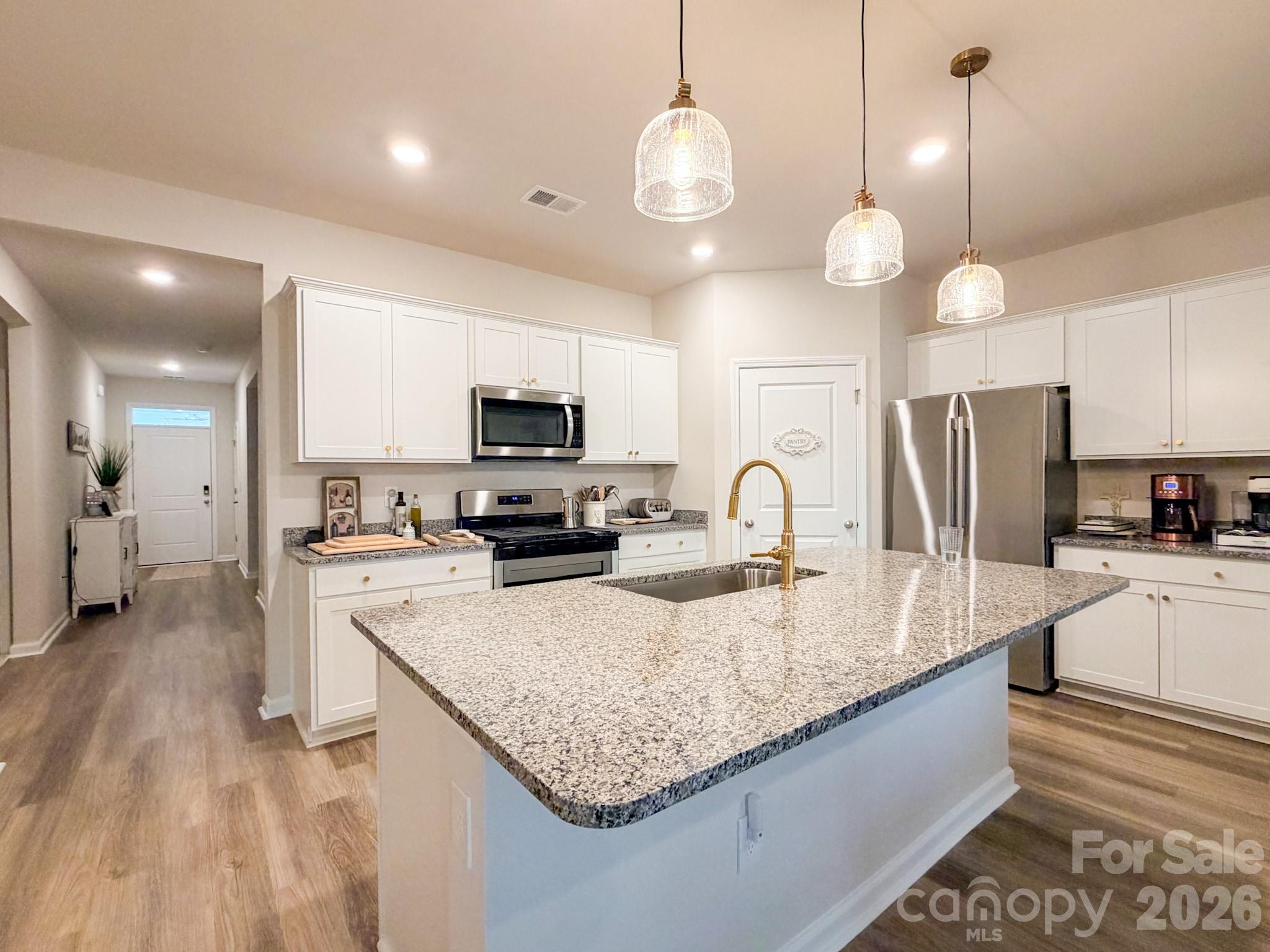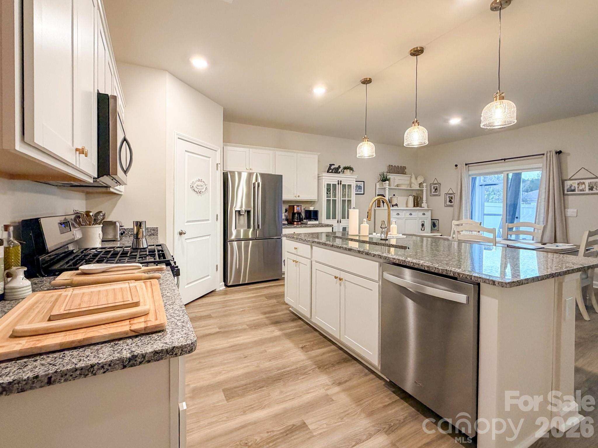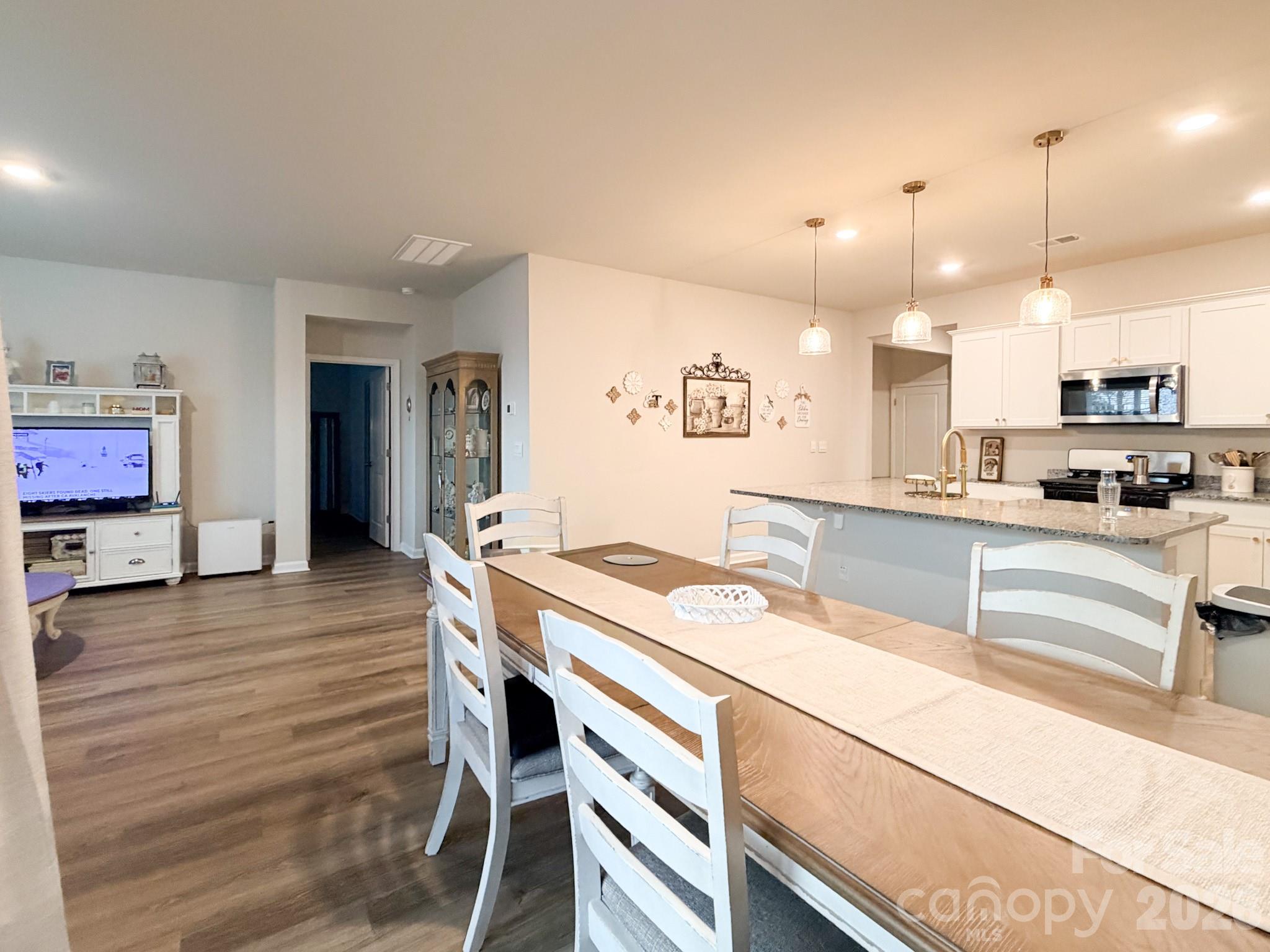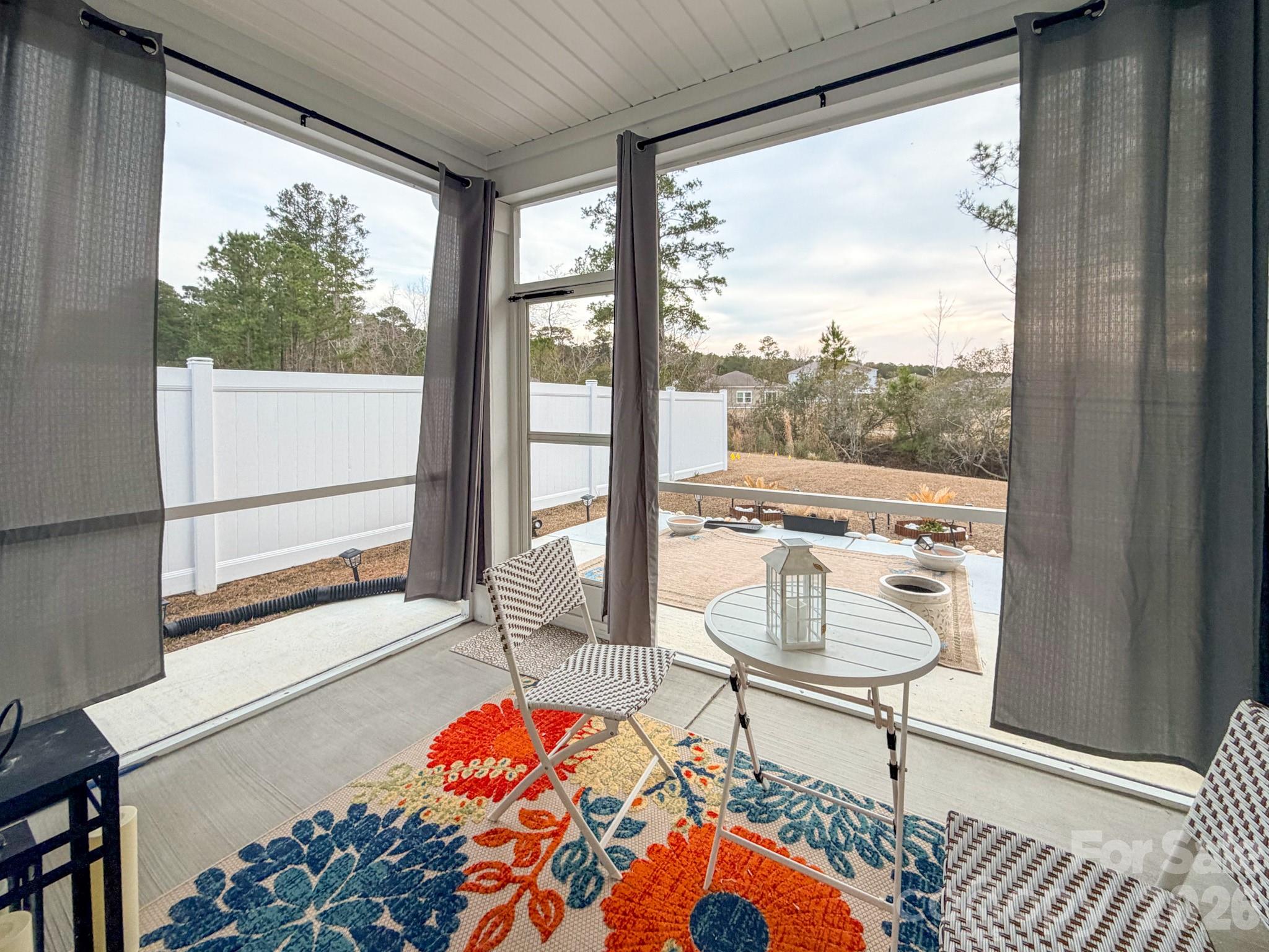 Welcome to 119 Marauder Drive in The Vistas at Sun Colony, a beautifully upgraded 2024-built home offering 4 bedrooms, 2 bathrooms, and 1,842 heated square feet of thoughtfully designed living space. Located in a quiet golf course community along Highway 9 in Longs, this home provides peaceful residential living just 30 minutes from North Myrtle Beach, Myrtle Beach, and the entire Grand Strand via Highway 31.This open-concept home features 9-foot ceilings and luxury vinyl flooring throughout, enhanced with padded underlayment for a softer, more comfortable feel. The kitchen is equipped with a natural gas range and oven, upgraded pendant lighting, upgraded faucet and cabinet hardware, and a spacious pantry. A separate laundry room adds everyday convenience.Energy-efficient and smart-home features include a programmable smart thermostat, Alexa-controlled lighting, a tankless natural gas hot water heater, and added attic insulation. Exterior improvements include an extended patio, screened-in porch, full-yard irrigation system, gutters with French drains, decorative river rock drainage beds, and a transferable termite bond.The property backs directly to the golf course, offering serene views and a partially fenced yard ideal for relaxing or entertaining. The community atmosphere includes a mix of retirees, families, professionals, and golf enthusiasts seeking comfortable living outside the higher-priced coastal zones.All major appliances will remain with the home, including the refrigerator, stove, microwave, washer, and dryer. The home is being offered unfurnished at the listed price; however, the seller is open to including the existing furnishings as a separate purchase option for buyers who may prefer a move-in-ready setup. Available furnishings include living room, bedroom, dining, and patio furniture, along with select household items. A prepaid premium television service with extensive domestic and international channels is also available and can remain if desired; the buyer would only need to connect internet service.Served by the North Myrtle Beach School System and conveniently located on Highway 9 with quick access to Highway 31, this home offers quiet retreat living with easy access to beaches, dining, entertainment, and golf.A rare opportunity to own a nearly new golf-course home in one of Longs most desirable subdivisions.