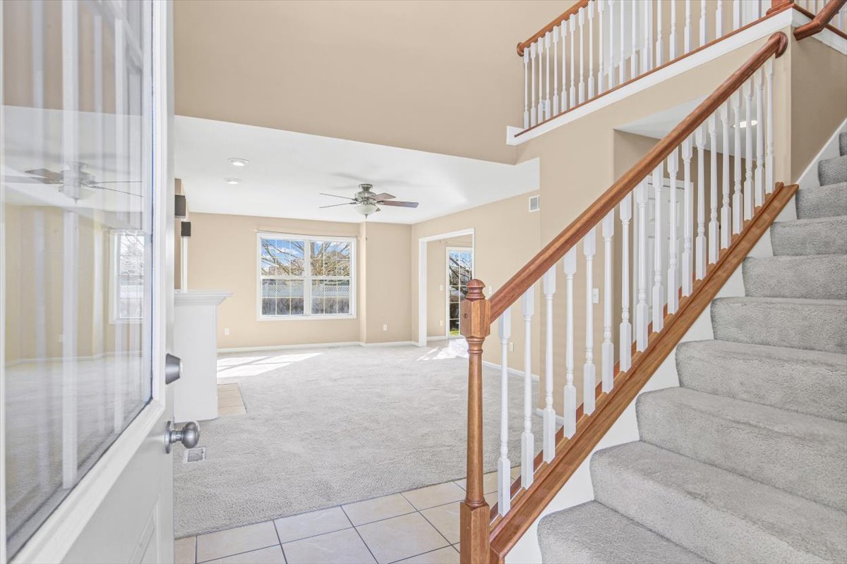 Welcome to this beautifully maintained and move-in ready home in a highly desirable Normal location. The main level features tile flooring throughout the kitchen, dining area, and hallway, creating a clean and durable space for everyday living. The spacious living room offers a cozy gas fireplace, perfect for relaxing or entertaining guests. Upstairs you'll find generously sized bedrooms, and the second-floor hallway overlooks the impressive two-story foyer, adding openness and natural light to the home. The full basement includes a rough-in for a future full bathroom, offering excellent potential for additional finished living space, recreation room, or guest suite. East-facing patio, ideal for enjoying cool shaded evenings and outdoor gatherings. Conveniently located near an elementary school, parks, and local amenities, this home combines comfort, space, and location in one wonderful package.Several major updates including a newer Lenox HVAC system, water heater, appliances, and fresh paint, making this home move-in ready and well maintained.